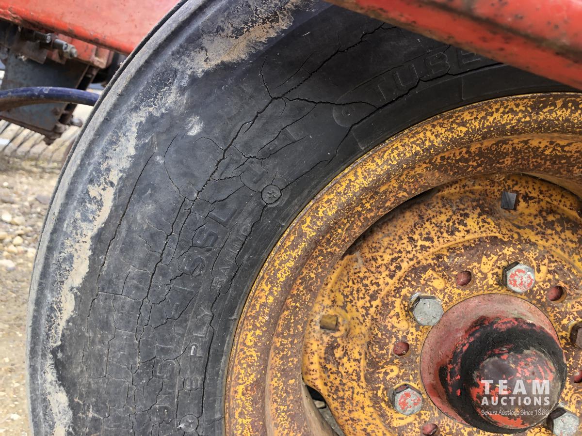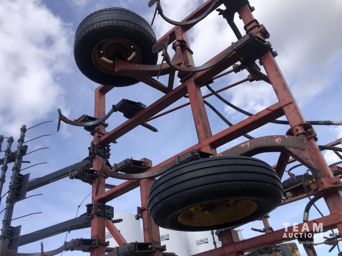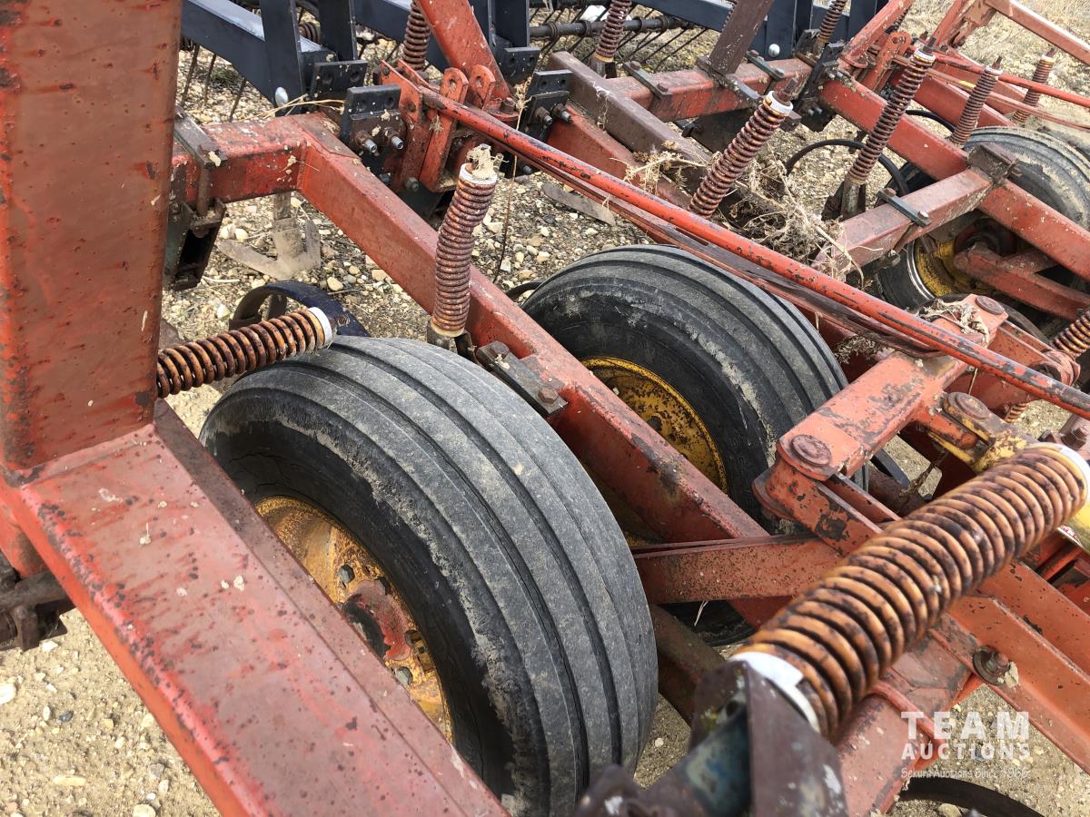 11 inch shovels, 8 inch spacing, Farm King 3 bar mounted harrows, 9.5L-15 tires