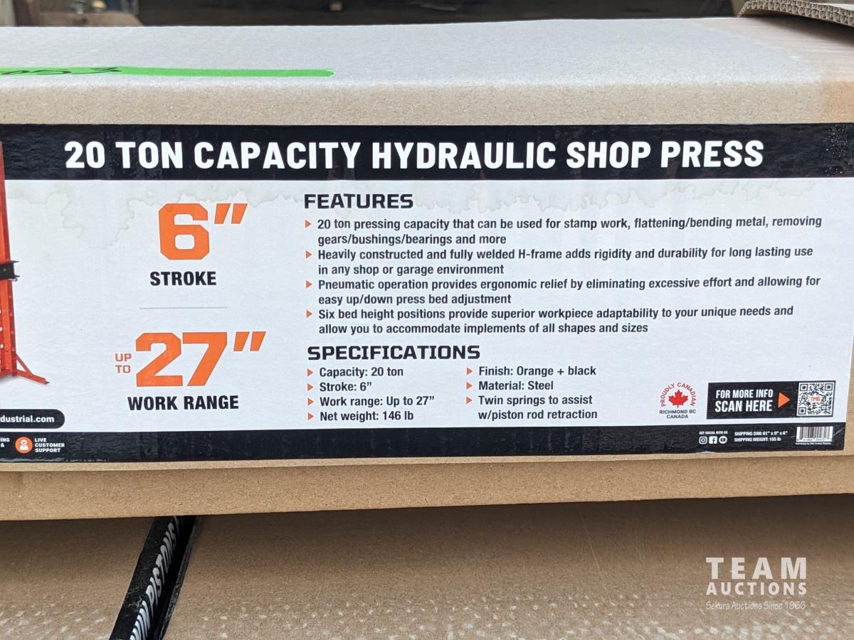 26 TMG Industrial ASP-20 20 Ton Hydraulic Shop Press (Unused)