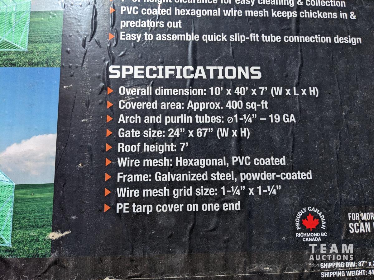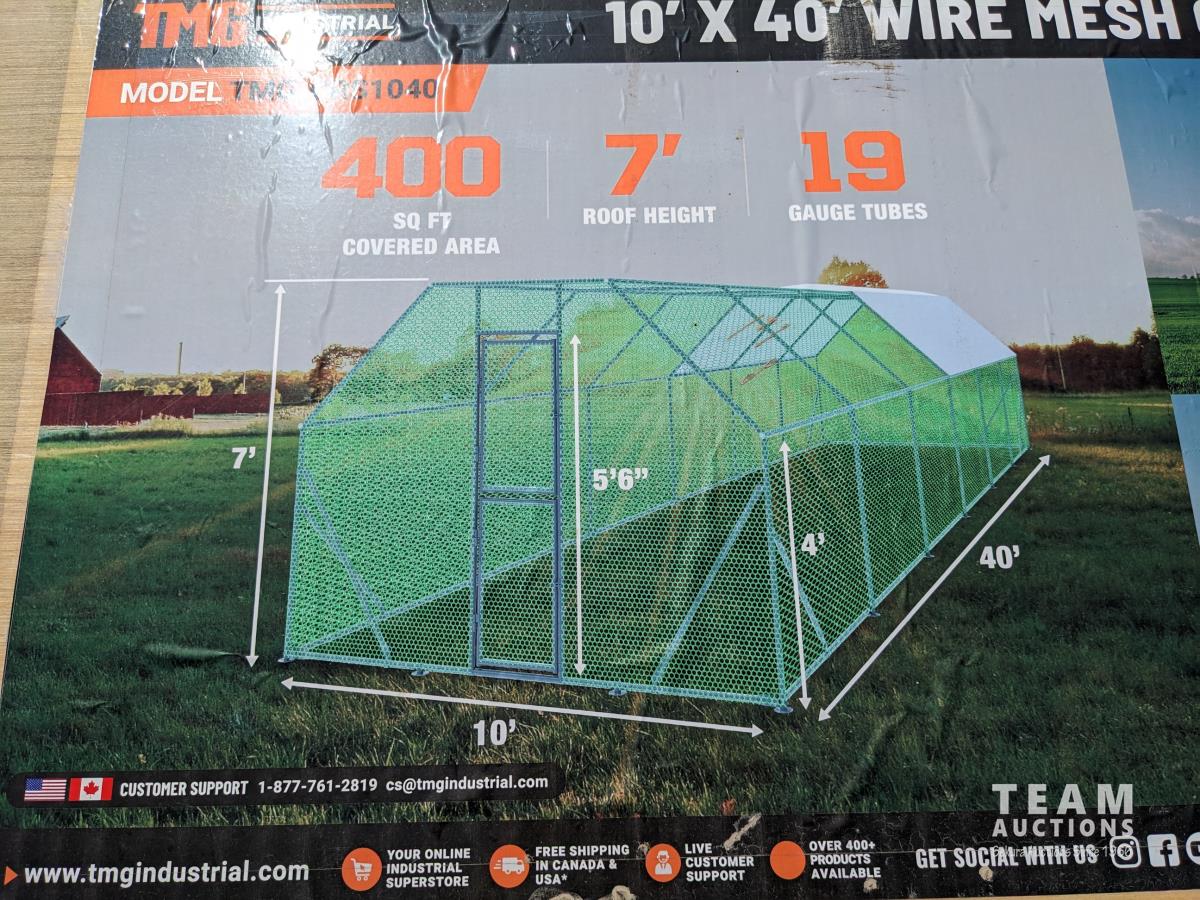 45 TMG Industrial TMG-CRS1040 10 Ft X 40 Ft Wire Mesh Chicken Run Shelter Coop (Unused)