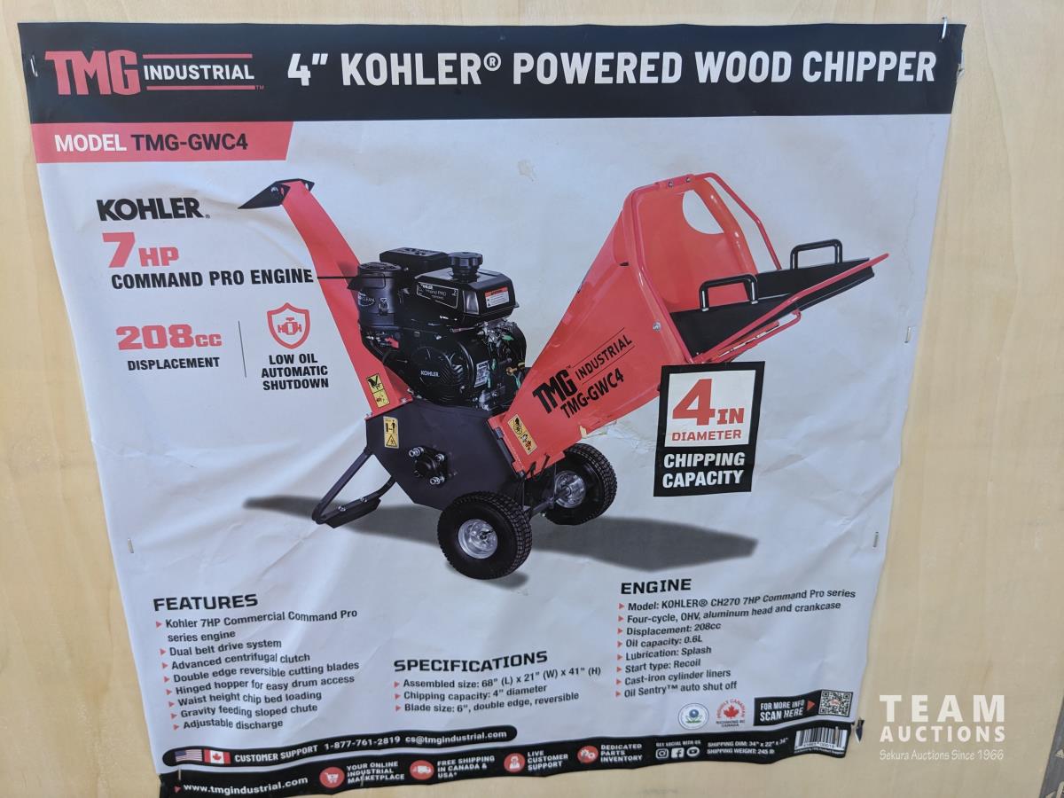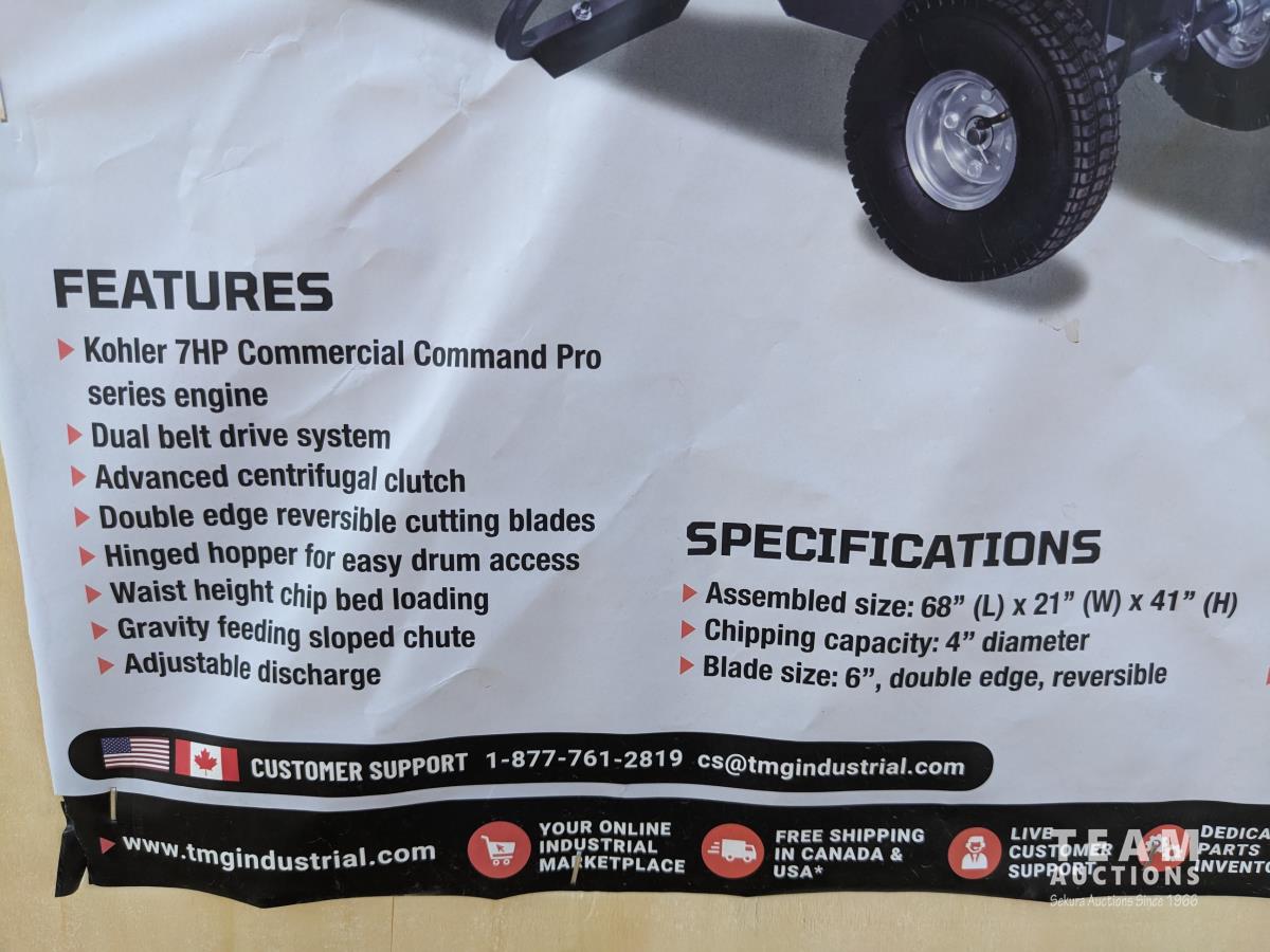 62 TMG Industrial TMG-GWC4 4 Inch Wood Chipper Powered By 7 HP Kohler Command Pro Series Engine (Unused)