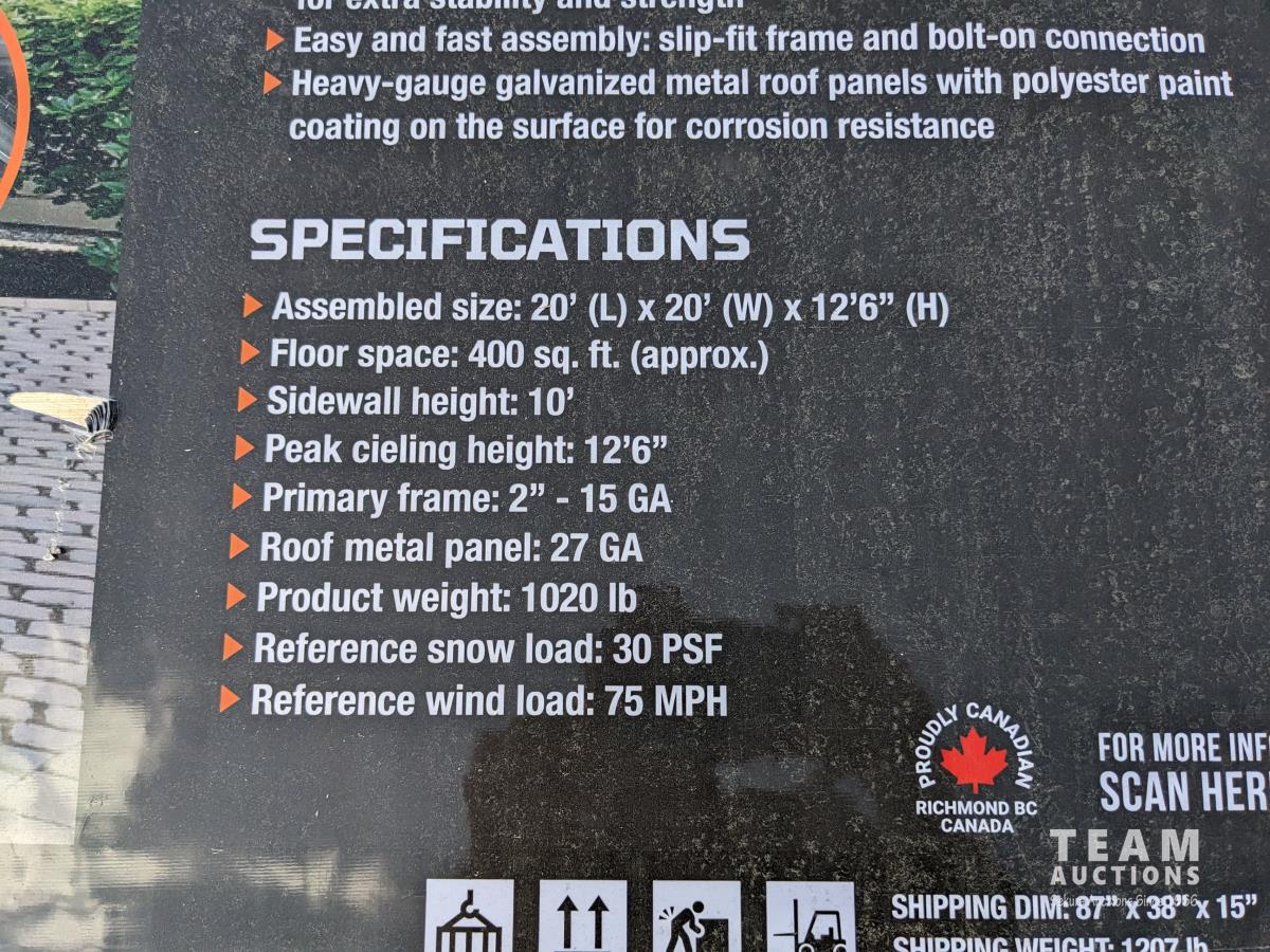51 TMG Industrial TMG-MSC2020 20 Ft X 20 Ft Metal Shed Carport (Unused)