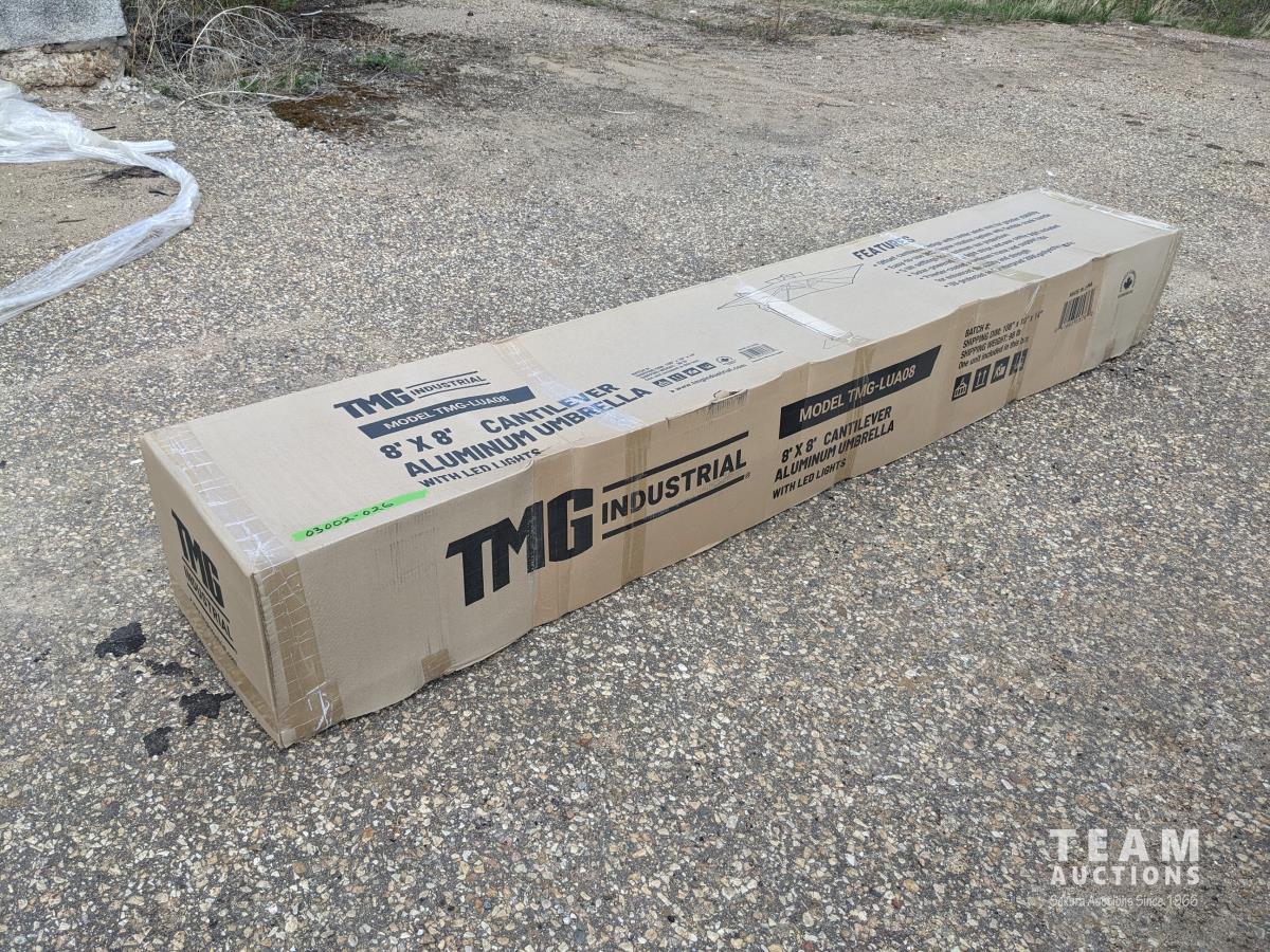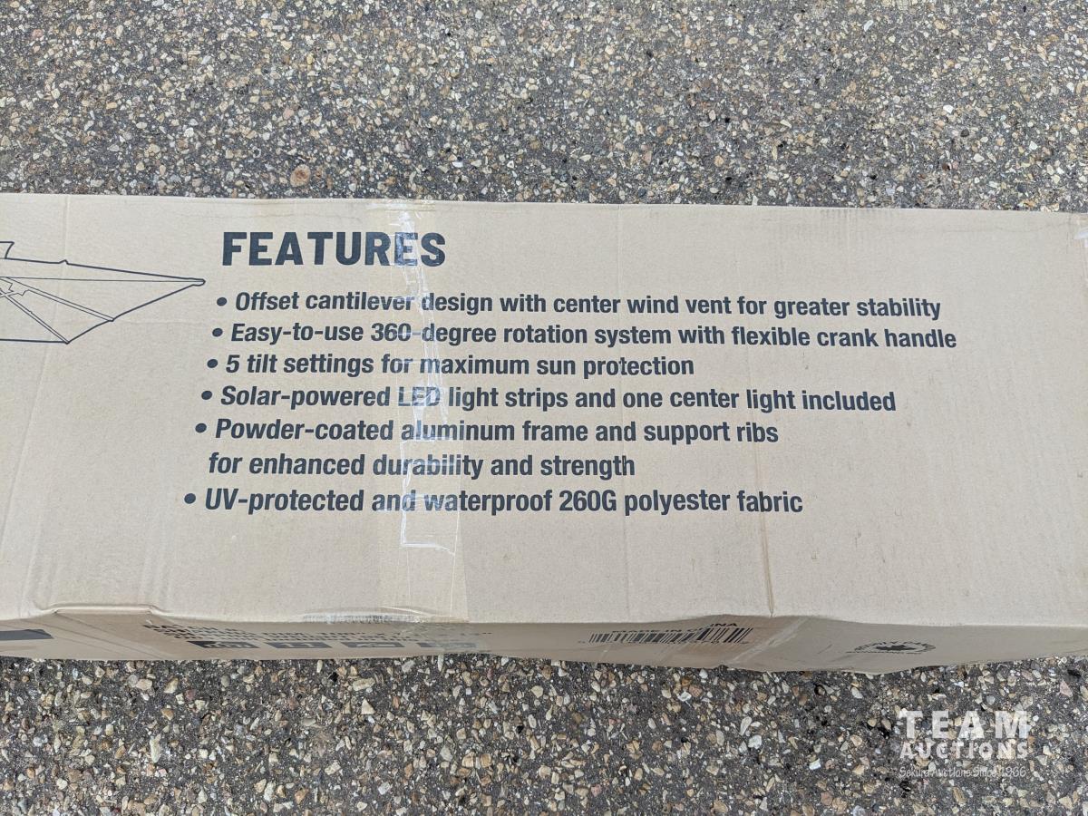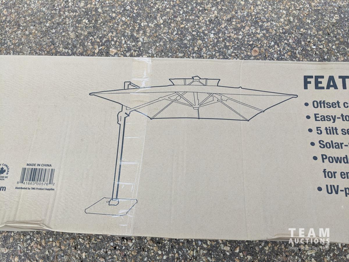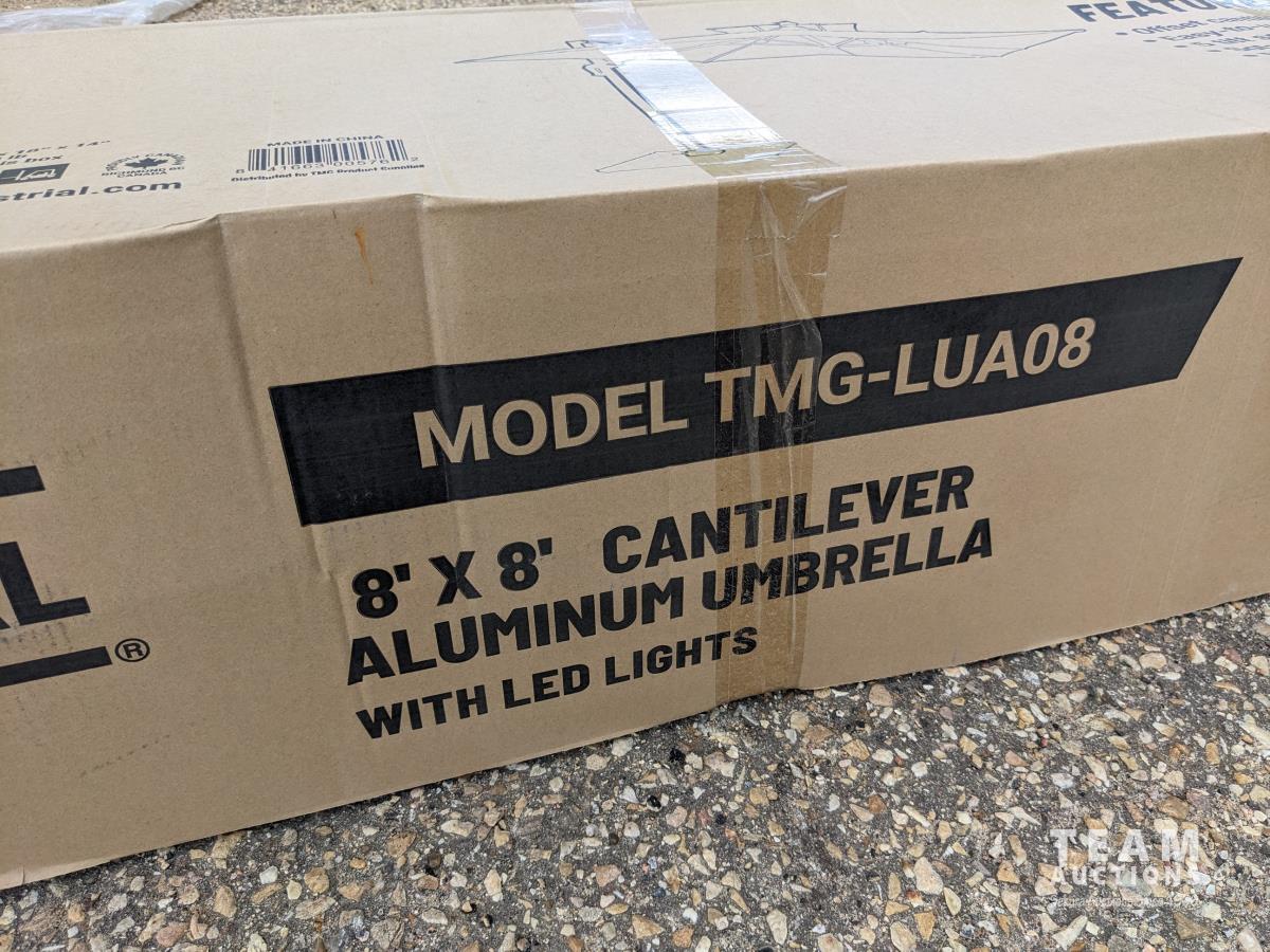 28 TMG LIVING TMG-LUA08 8 Ft X 8 Ft Cantilever Offset Aluminum Umbrella with LED Lights (Unused)