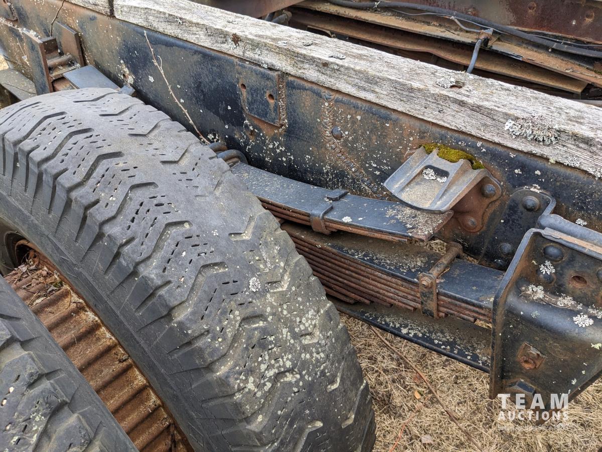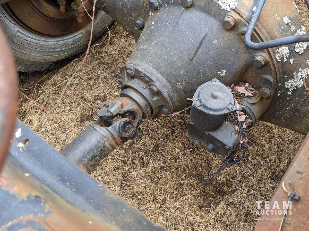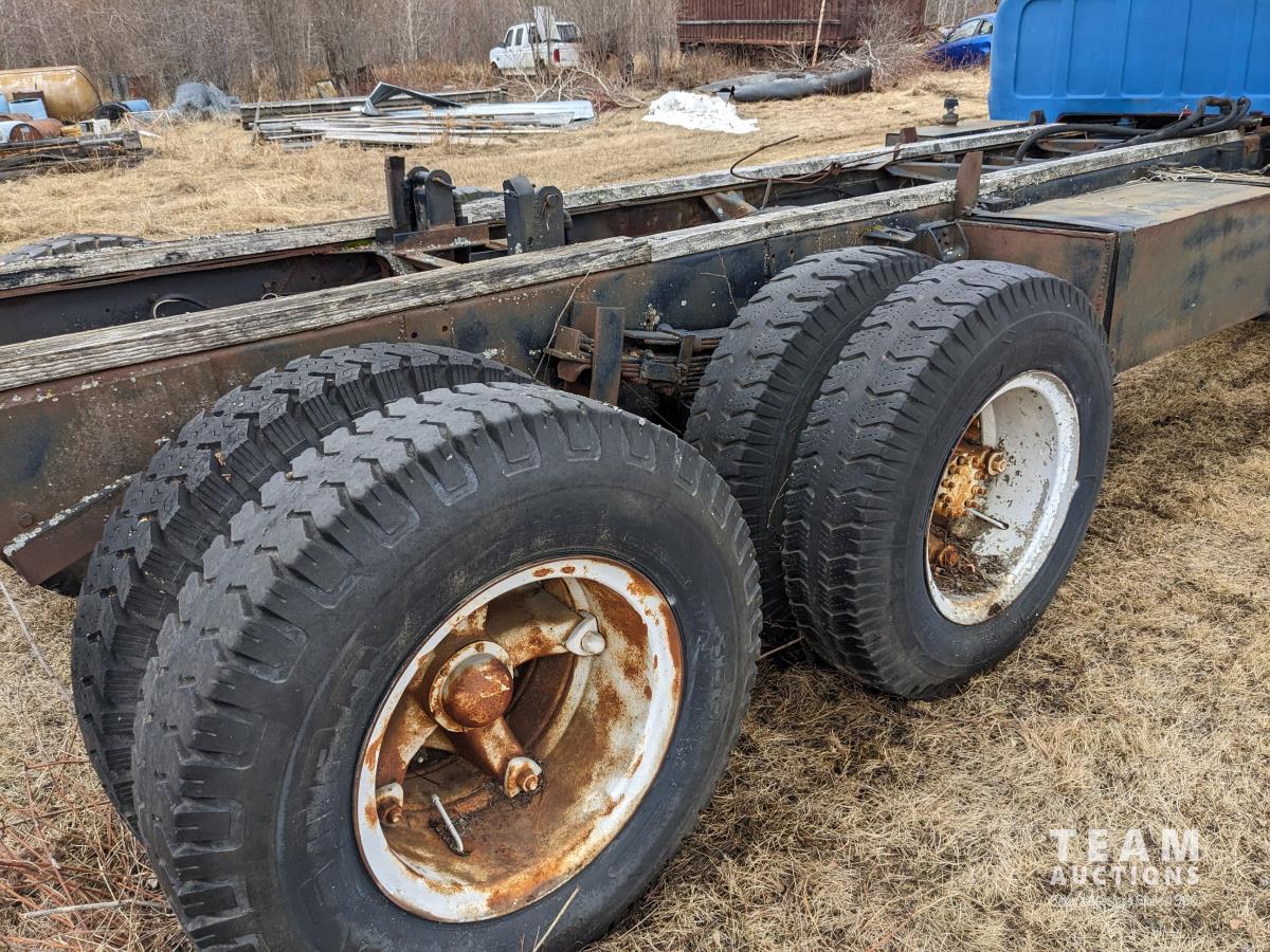 GMC 366 V8 engine, 5 speed transmission, 2 speed axle, tag axle, pto, hydraulic pump, spring suspension, 9,000 lb front axle, 17,000 lb rear axles, 213 inch WB, 9.00R20 tires