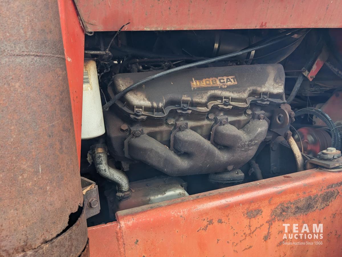Caterpillar 3208 10.4 L V8 210 HP, diesel engine, 193 PTO HP, 12 speed manual transmission, 1000 PTO, 3 rear hydraulic outlets, 18.4-34 tires, duals