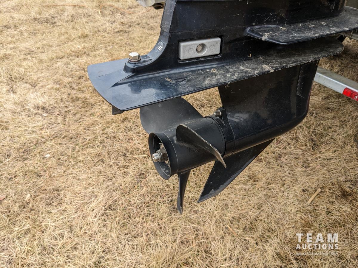 Mercury 90 HP outboard motor, canopy, fish well, hydraulic surge brakes, 175/80R13 tires