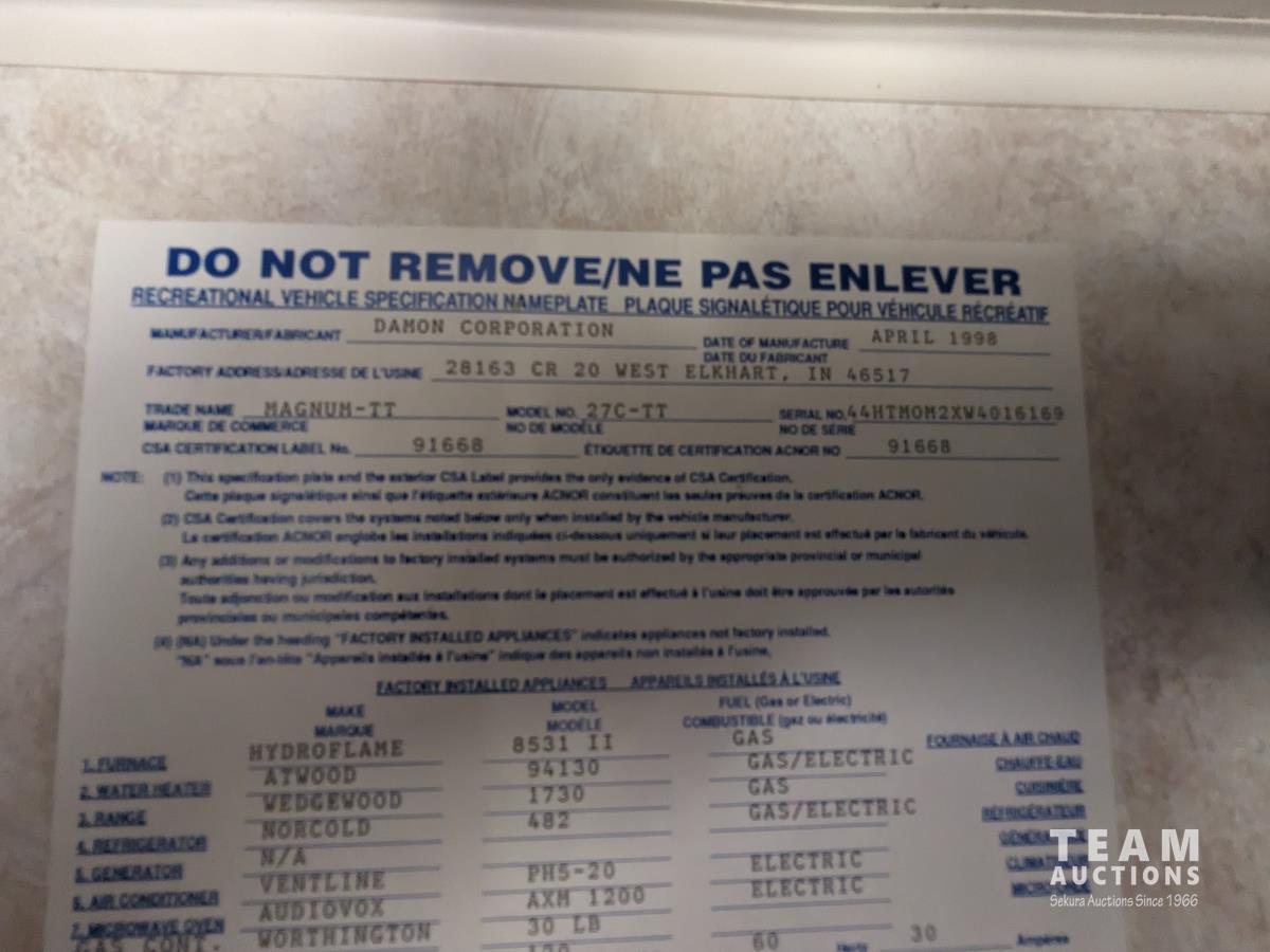 217 1998 Damon Corporation Magnum-TT 24 Ft T/A Travel Trailer