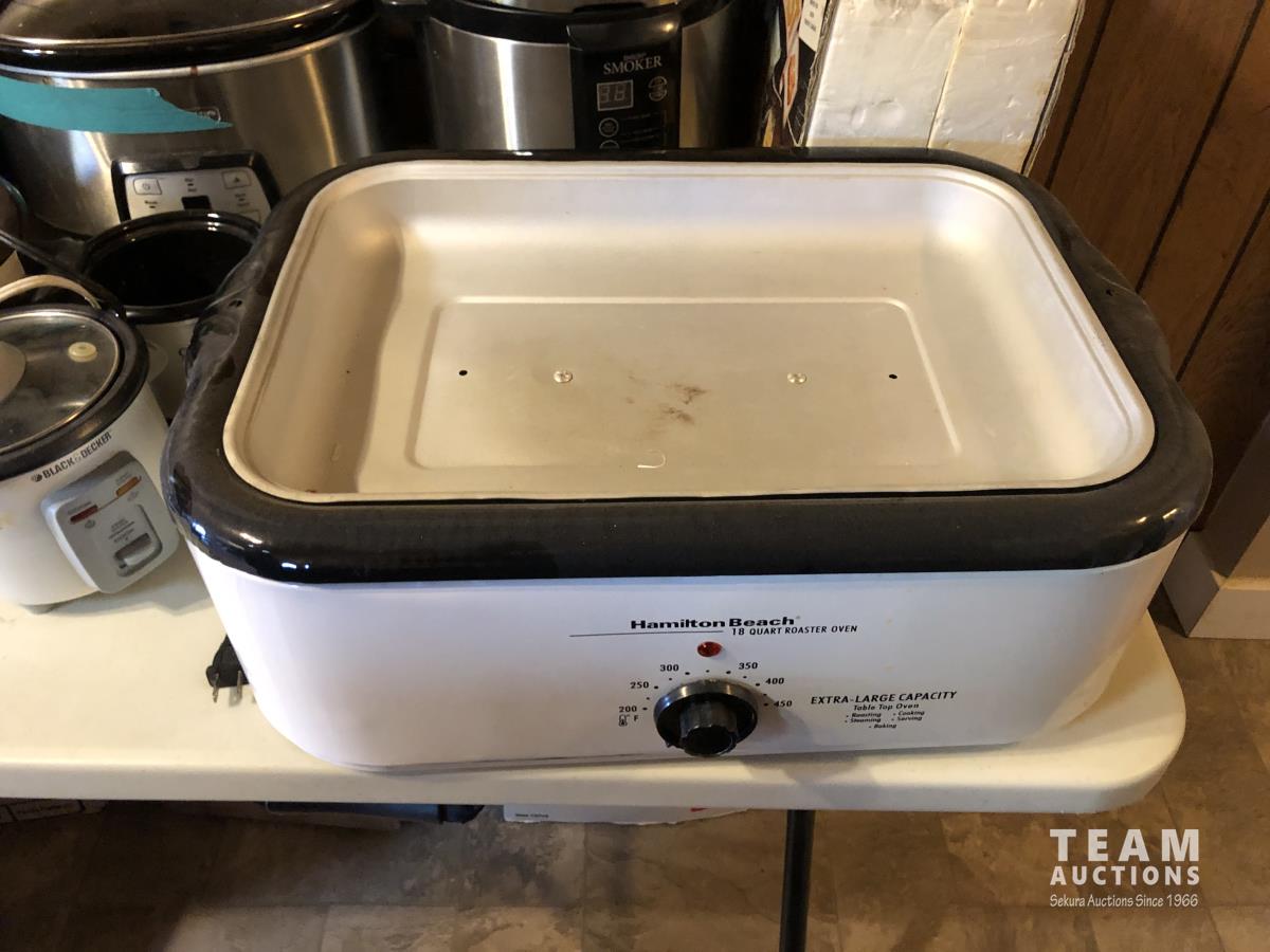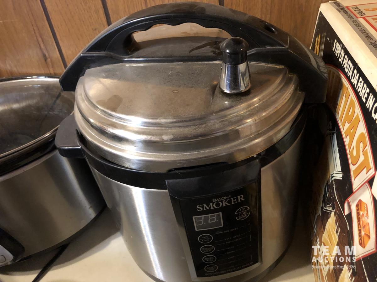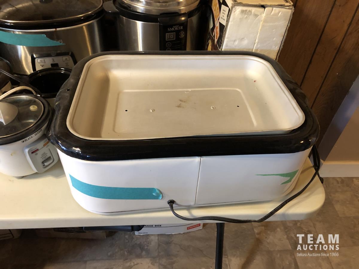 Pasta maker, electric roaster, (3) slow cookers, rice cooker, smoker, electric fryer, insta pot