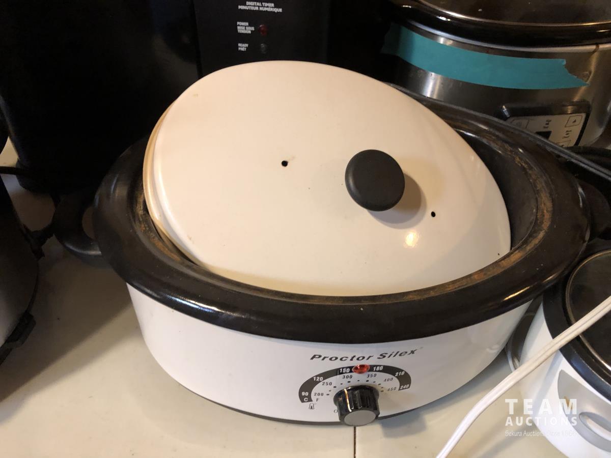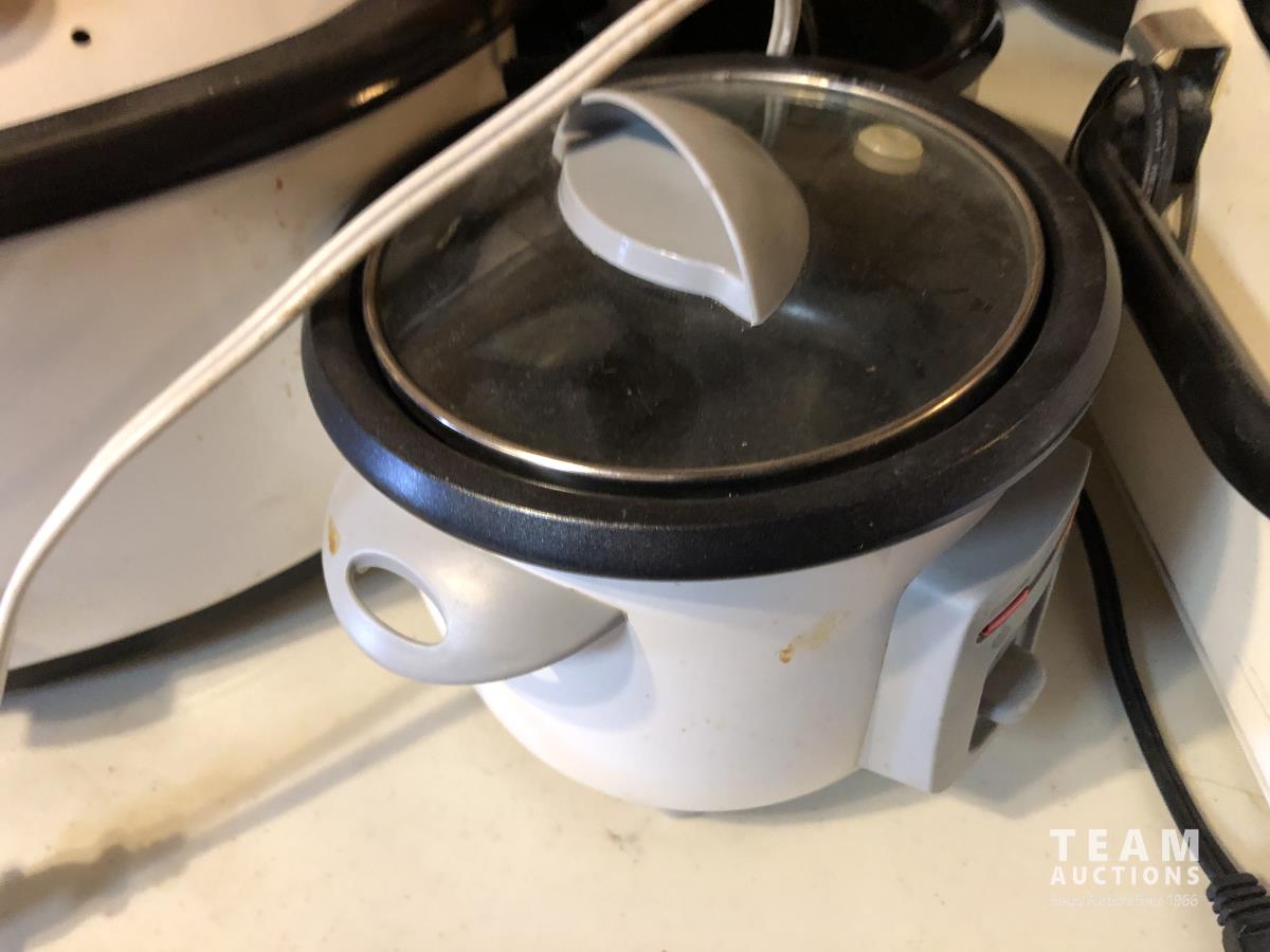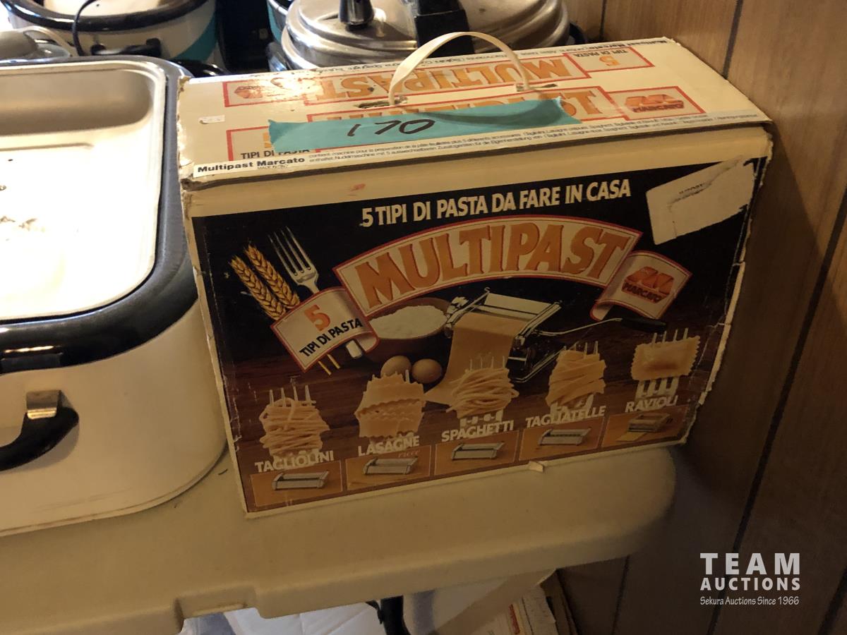 Pasta maker, electric roaster, (3) slow cookers, rice cooker, smoker, electric fryer, insta pot