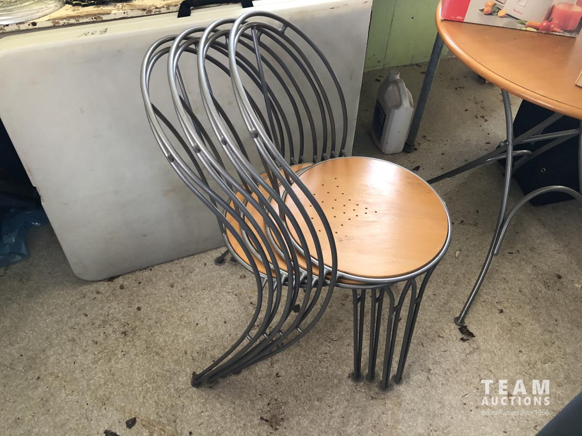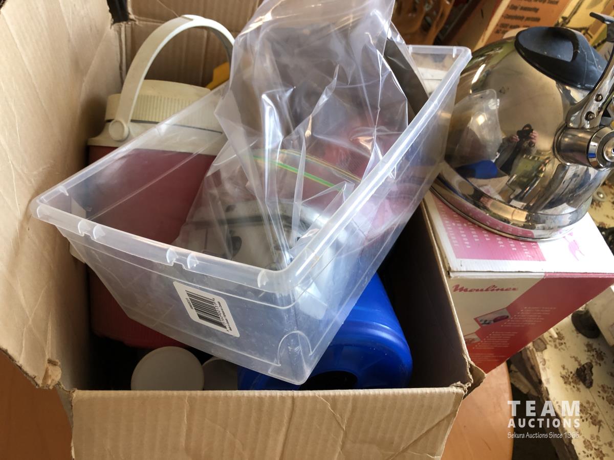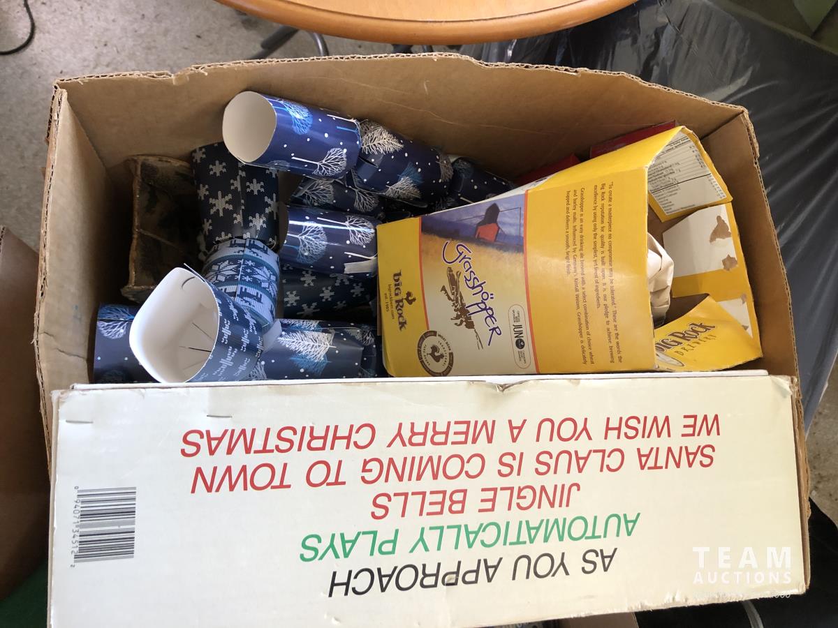 Patch cords, Christmas decorations, table, sleeping bag, juicer, barometer, (4) stacking chairs, miscellaneous household items