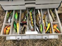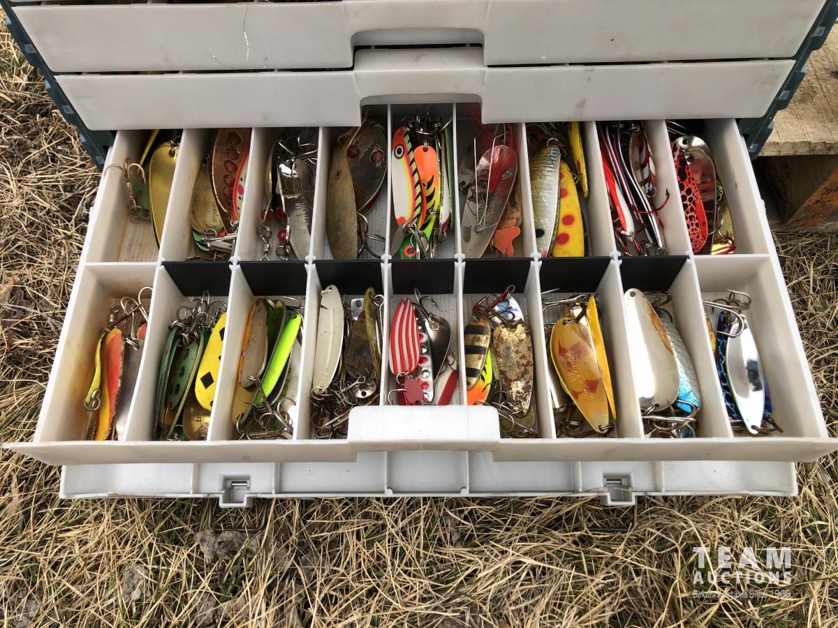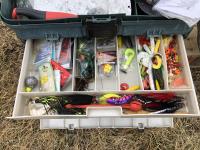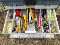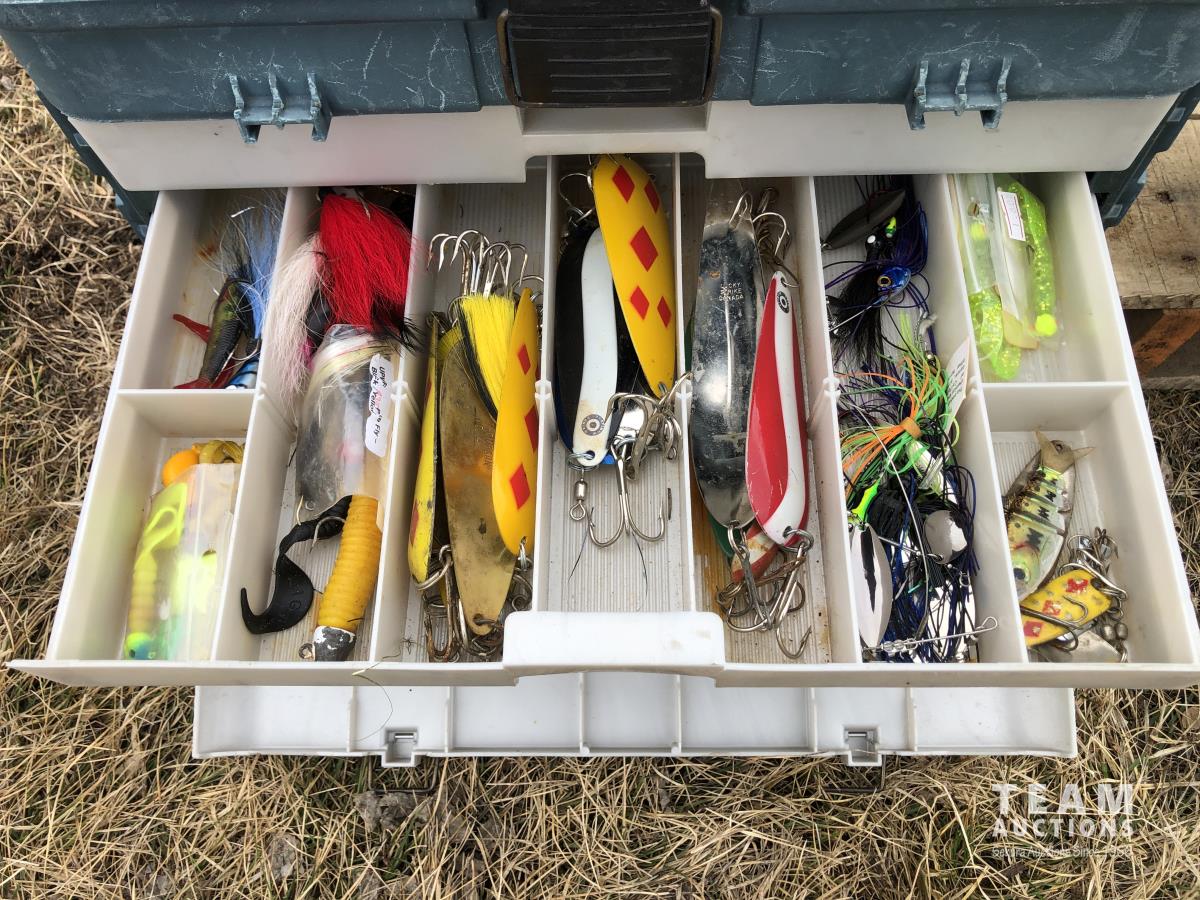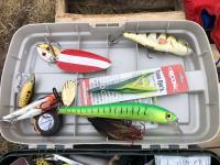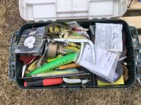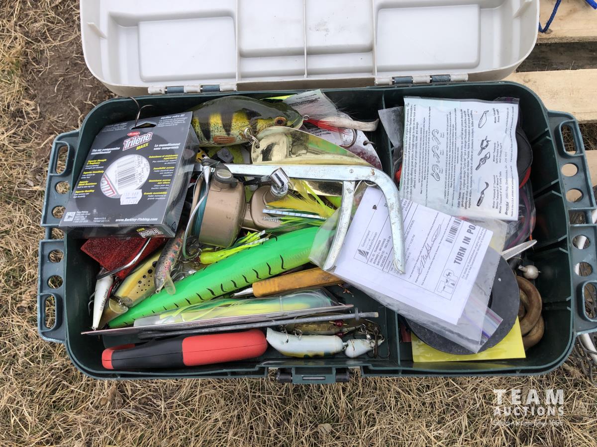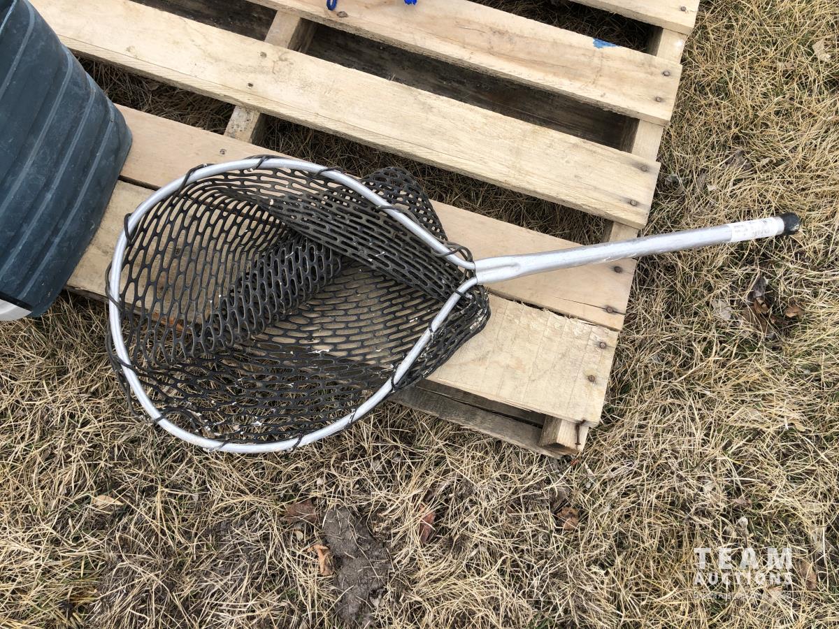 (5) life jackets, fishing net, tackle box with contents