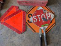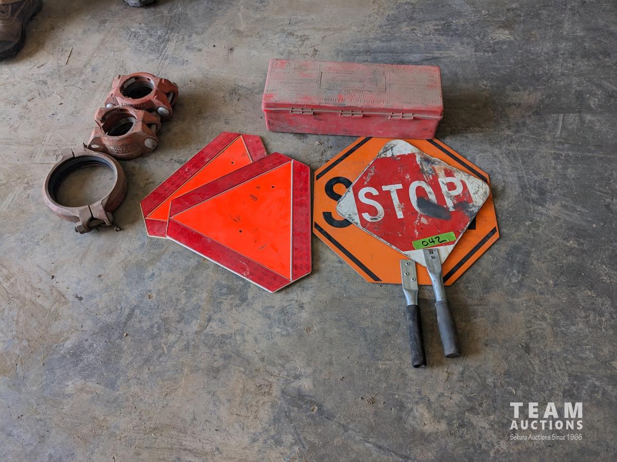 51 (2) Slow Moving Signs, (2) Hand Stop Signs, Truck Flares, Hose Flanges