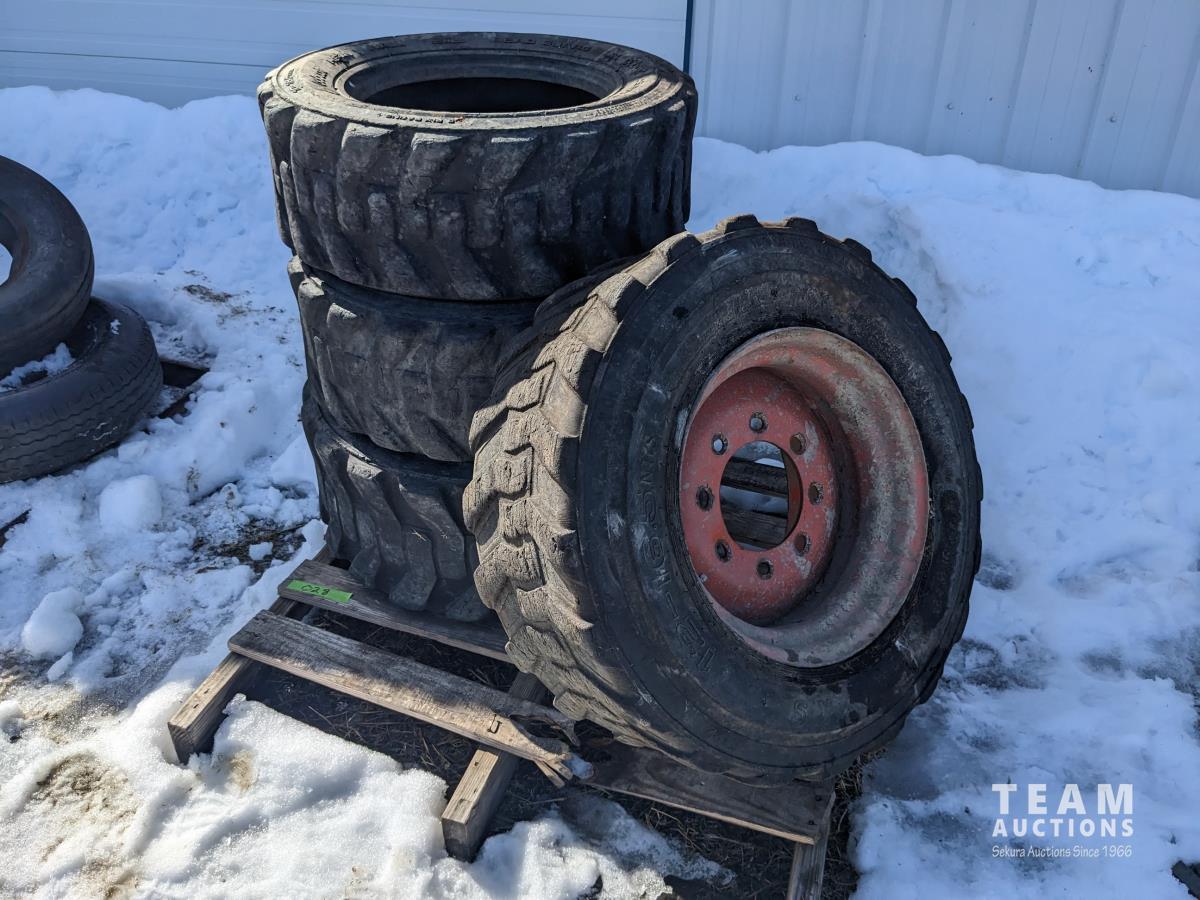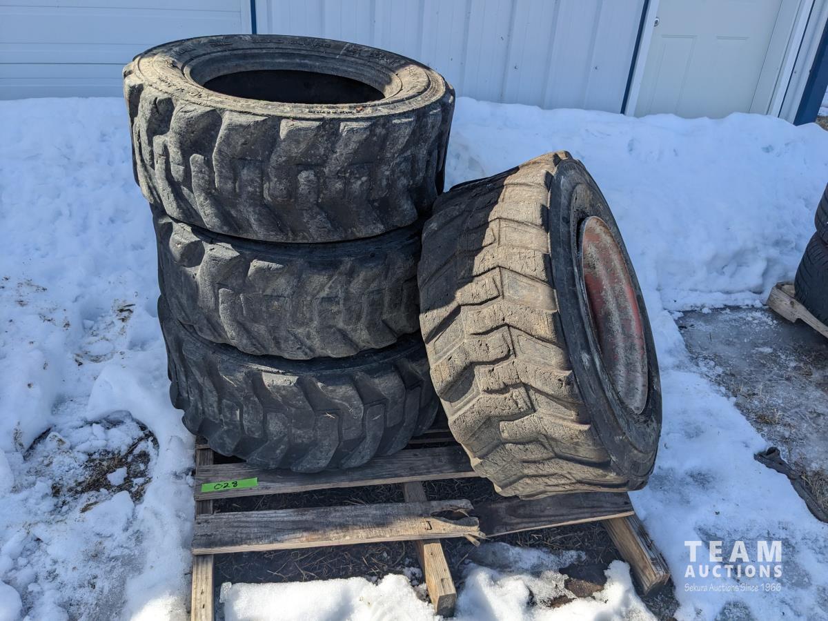 37 (3) 10-16.5 Skid Steer Tires, (1) 12-16.5 Skid Steer Tire with Rim