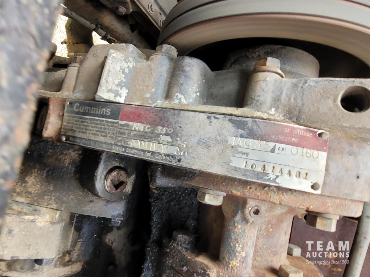 Cummins NTC350 diesel engine, engine brake, 5 and 4 manual transmission, 24 ft box, hoist, SWS Steel box, lift axle, spring suspension, 300 inch WB, Air brakes , 445/65R22.5 front tires, 11R22.5 rear tires