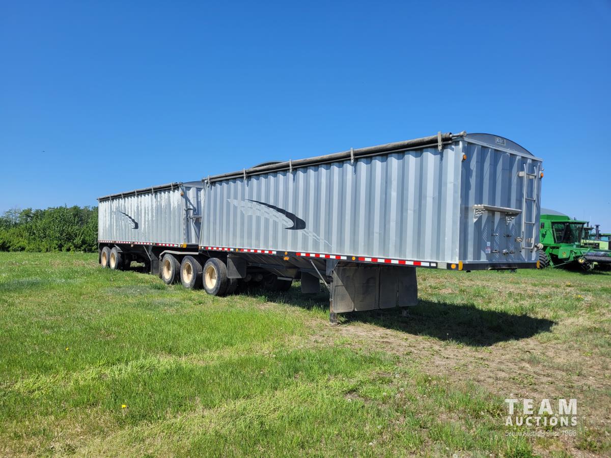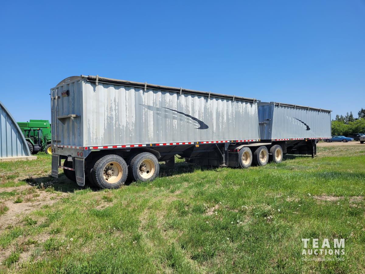 Spring suspension, air brakes, lead is 38 ft TRI/A and pup is 30 ft T/A, plumbed for under hopper auger, Michaels roll tarp, factory rebuilt 10 or 12 years ago, 11R24.5 tires