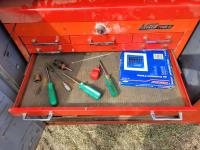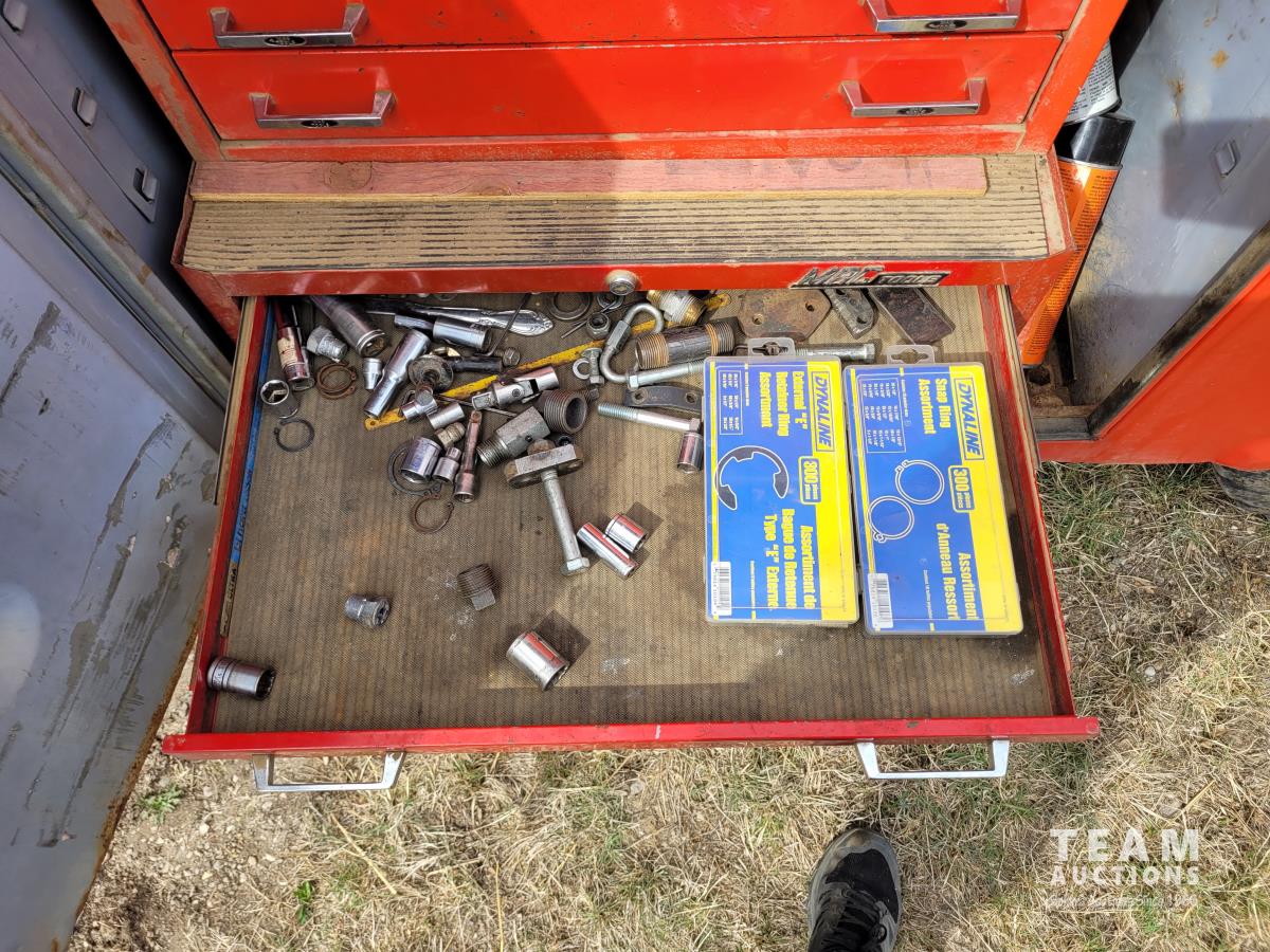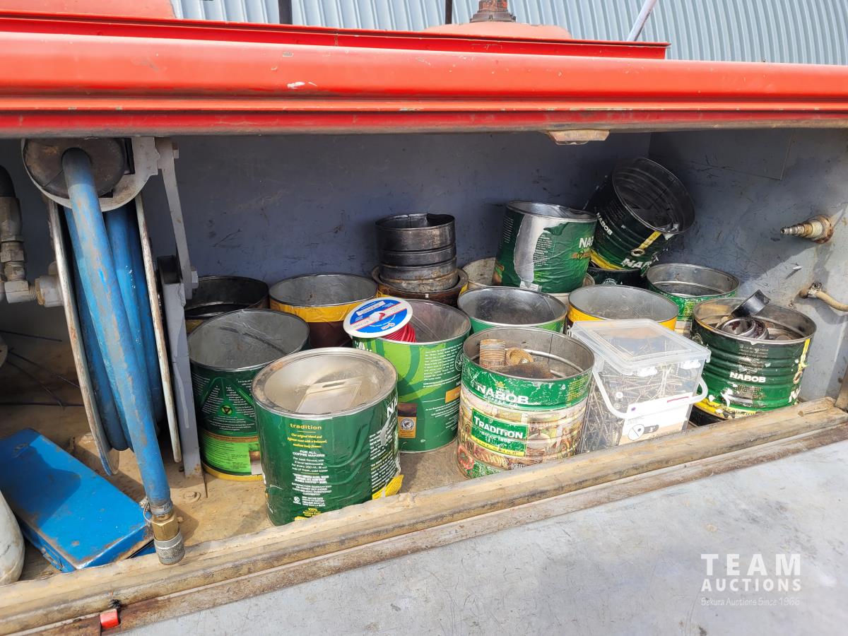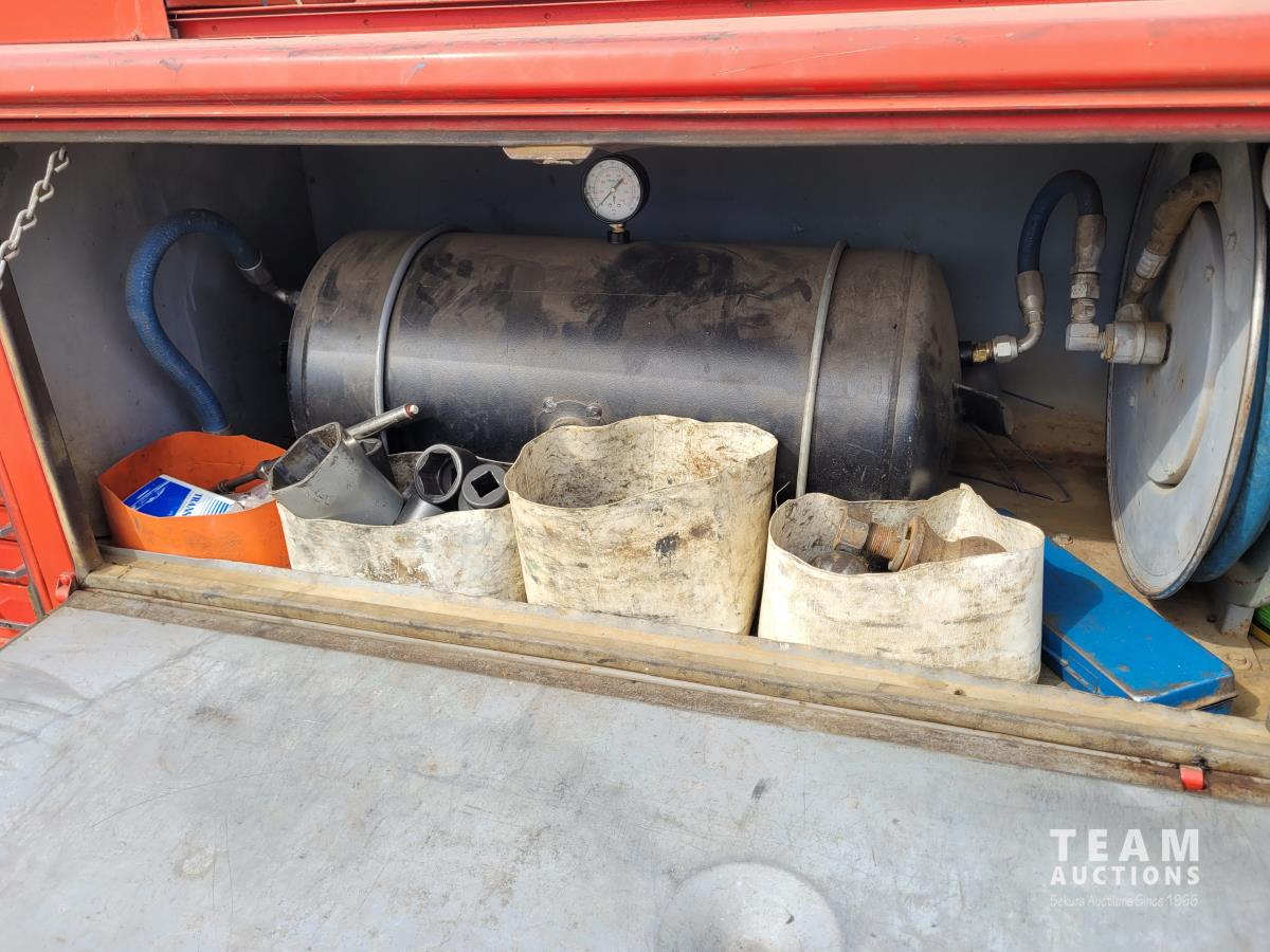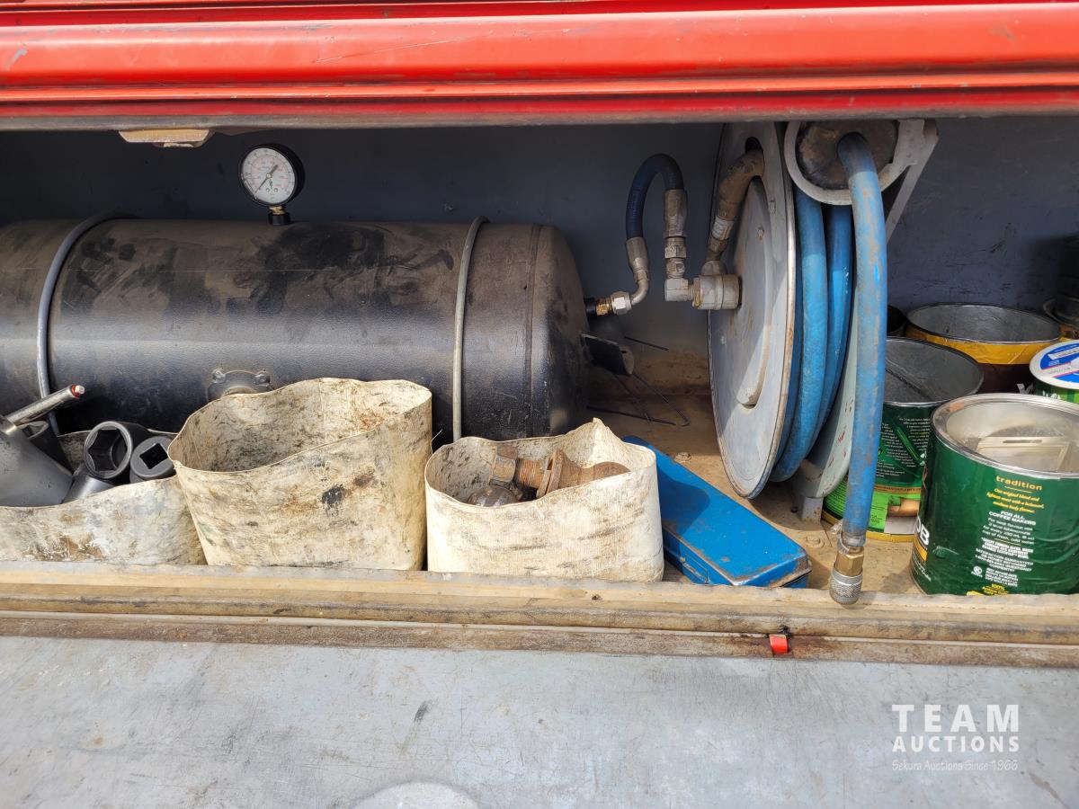 6.6 L gas engine, automatic transmission, tool boxes, Tow hitch, air compressor, hose reel, fuel tank, GPI electric pump, greaser, 11 ft service body, LT235/85R16 tires