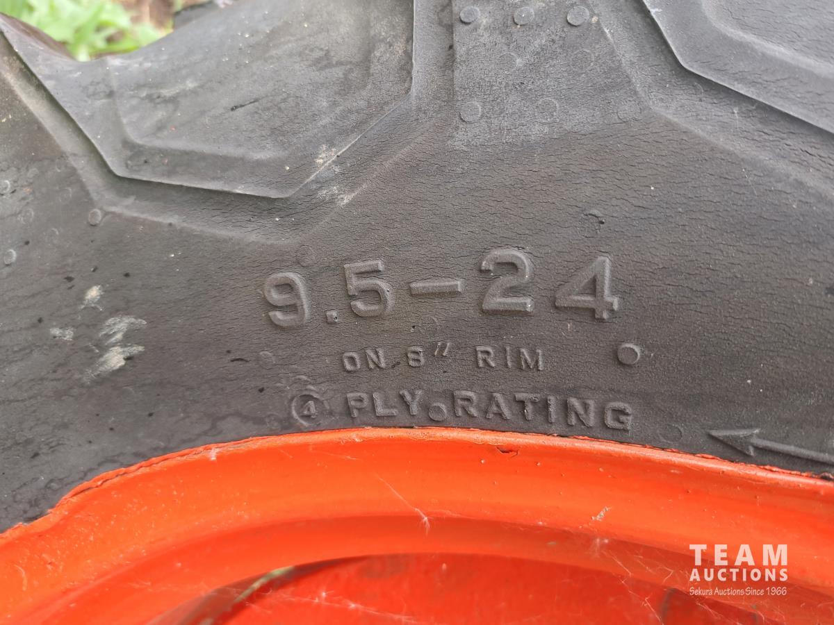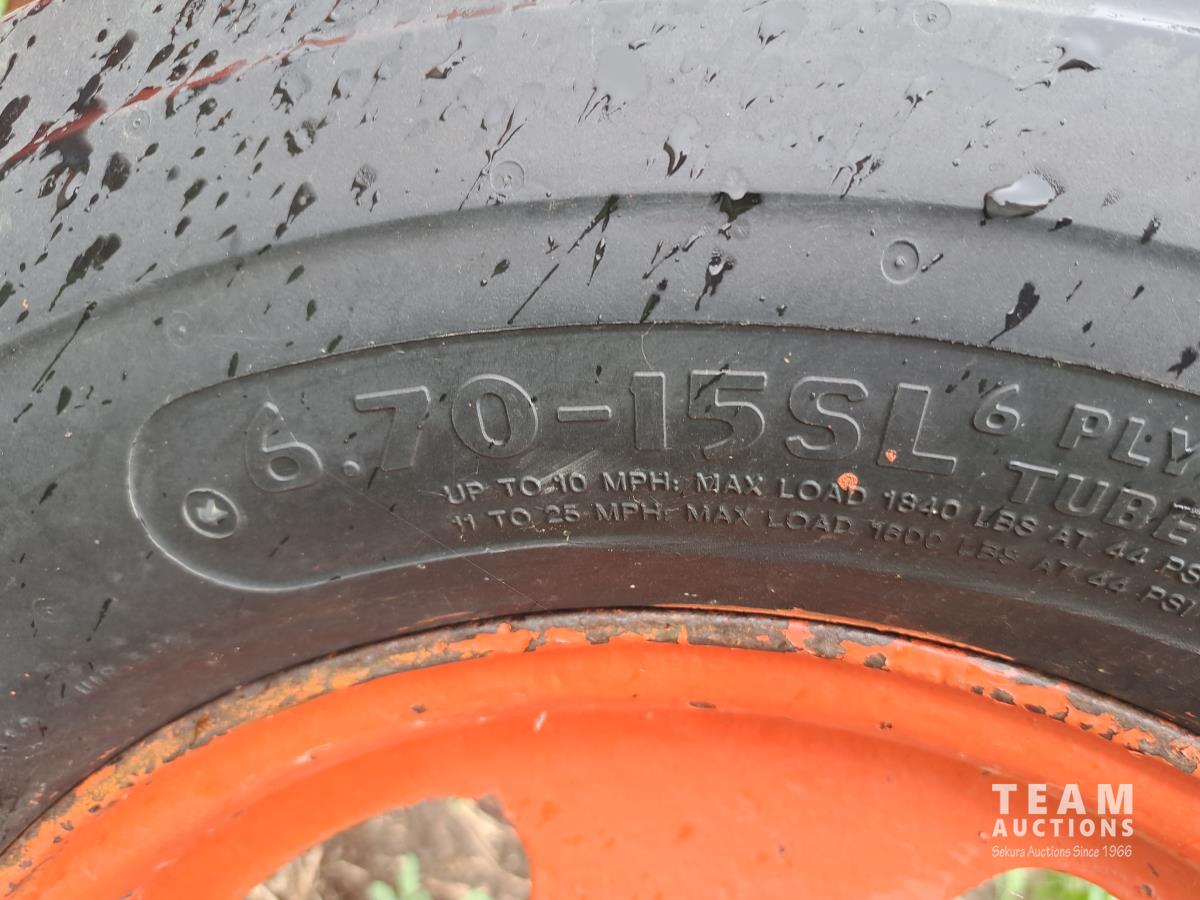 4 cylinder gas engine, 24 PTO HP, no PTO, belt pulley,6.70-15 front, 9.5-24 rear tires