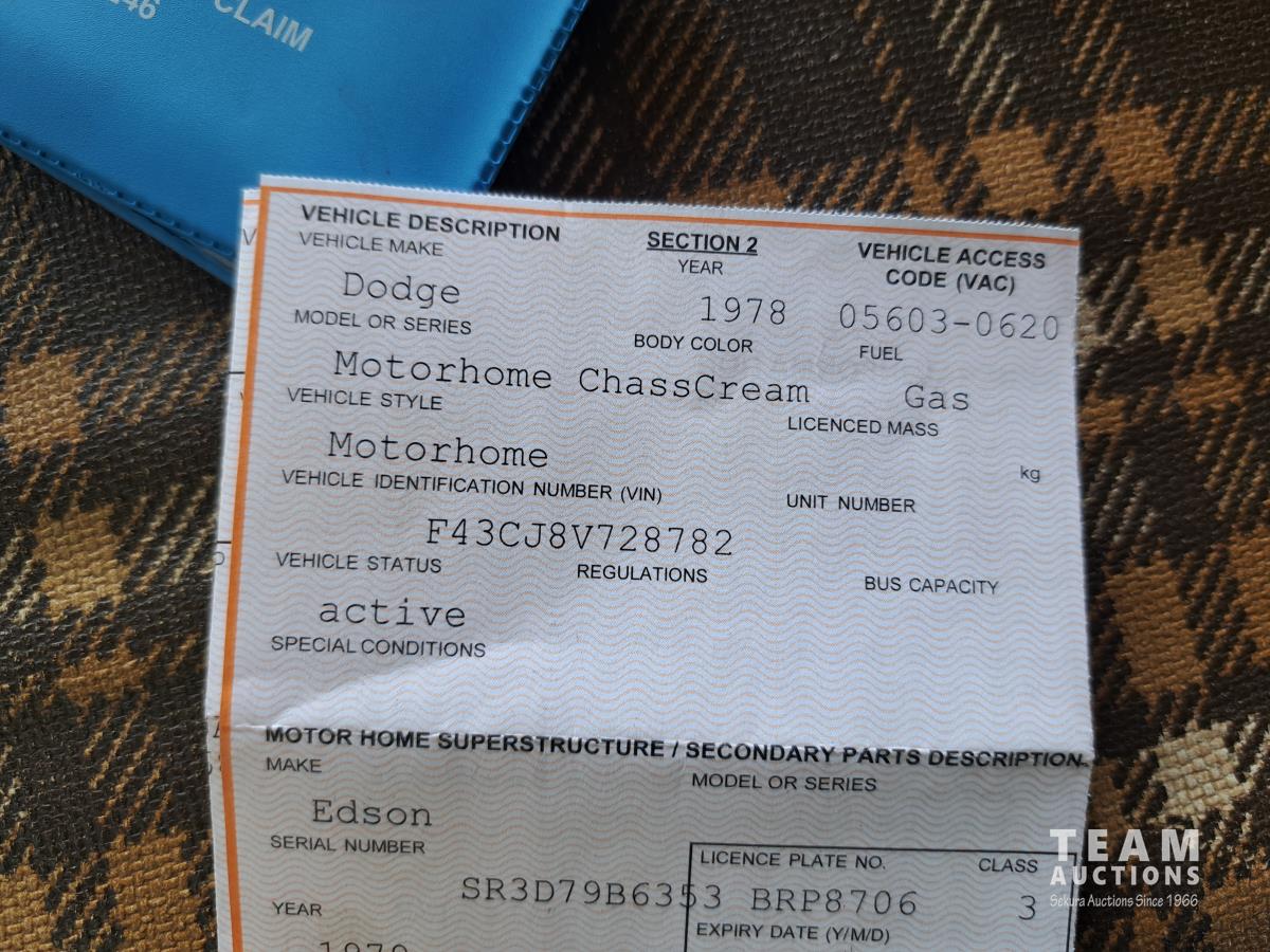 89 1978 Dodge Sportsman F-40 21 Ft Motorhome