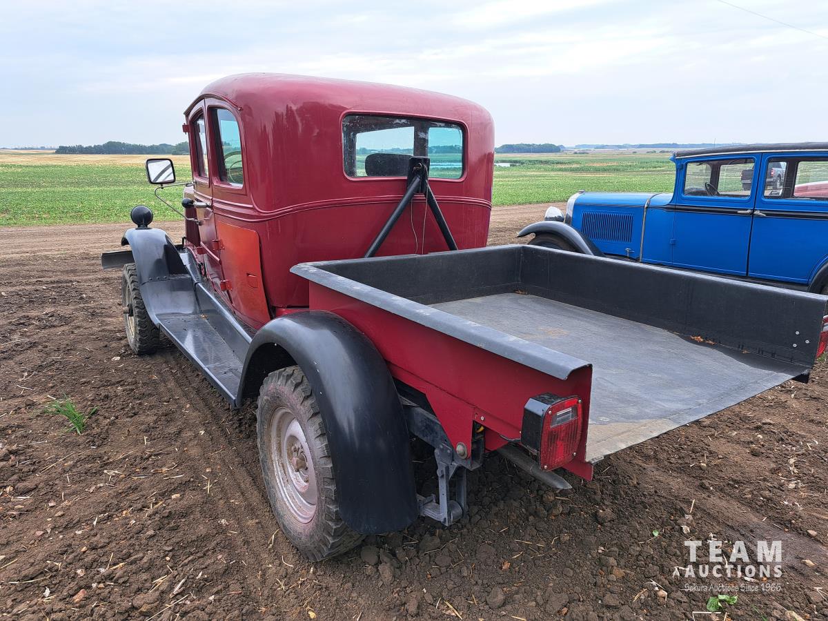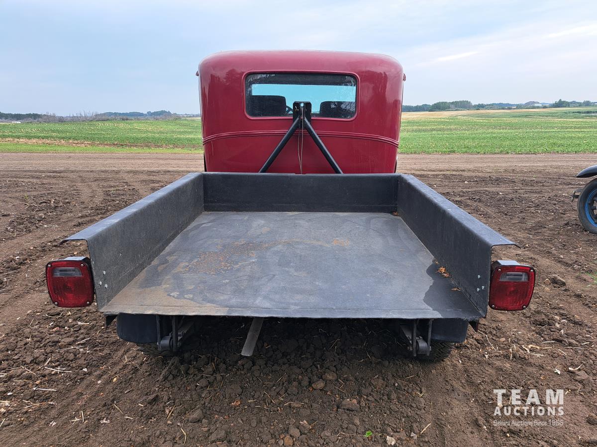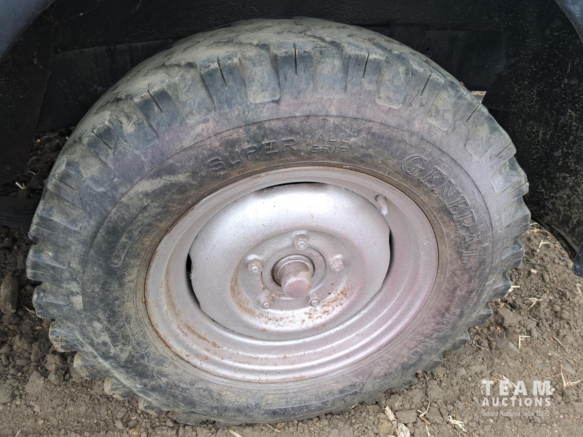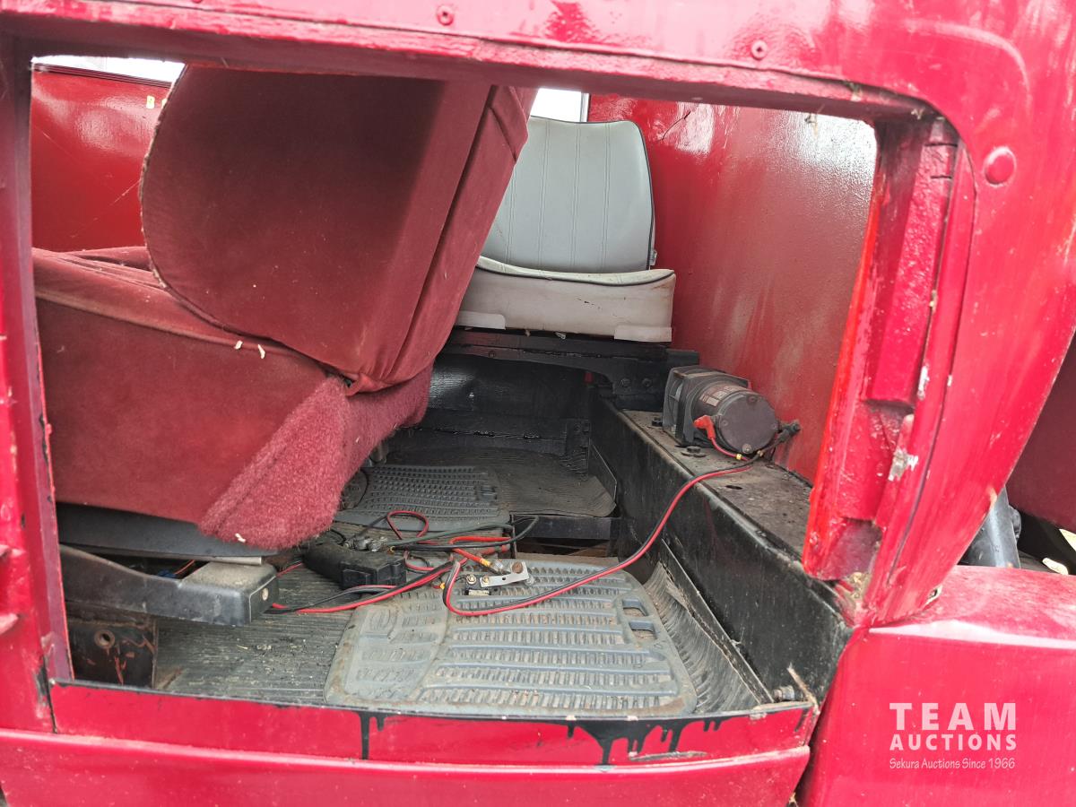 4 cylinder flathead gas engine, 3 speed transmission, high and low range, car body converted into a extended cab, P/L, P/W, power steering, cable winch dump box, 6.00-16ZLT tires
