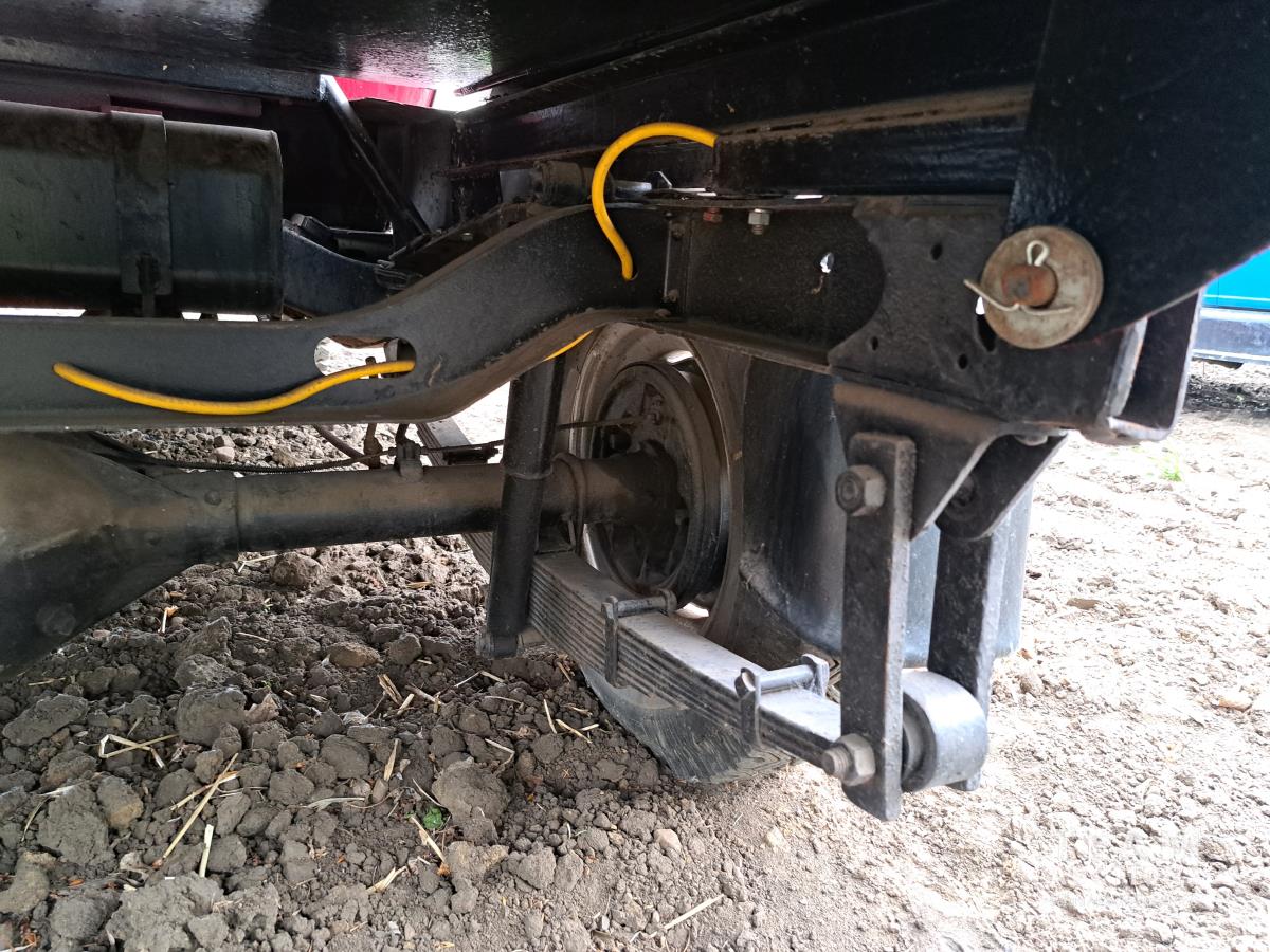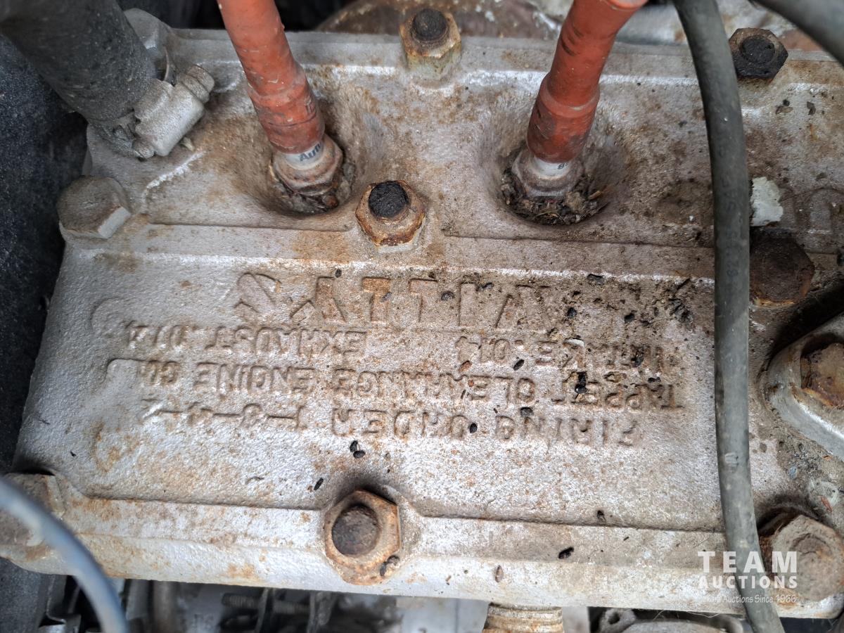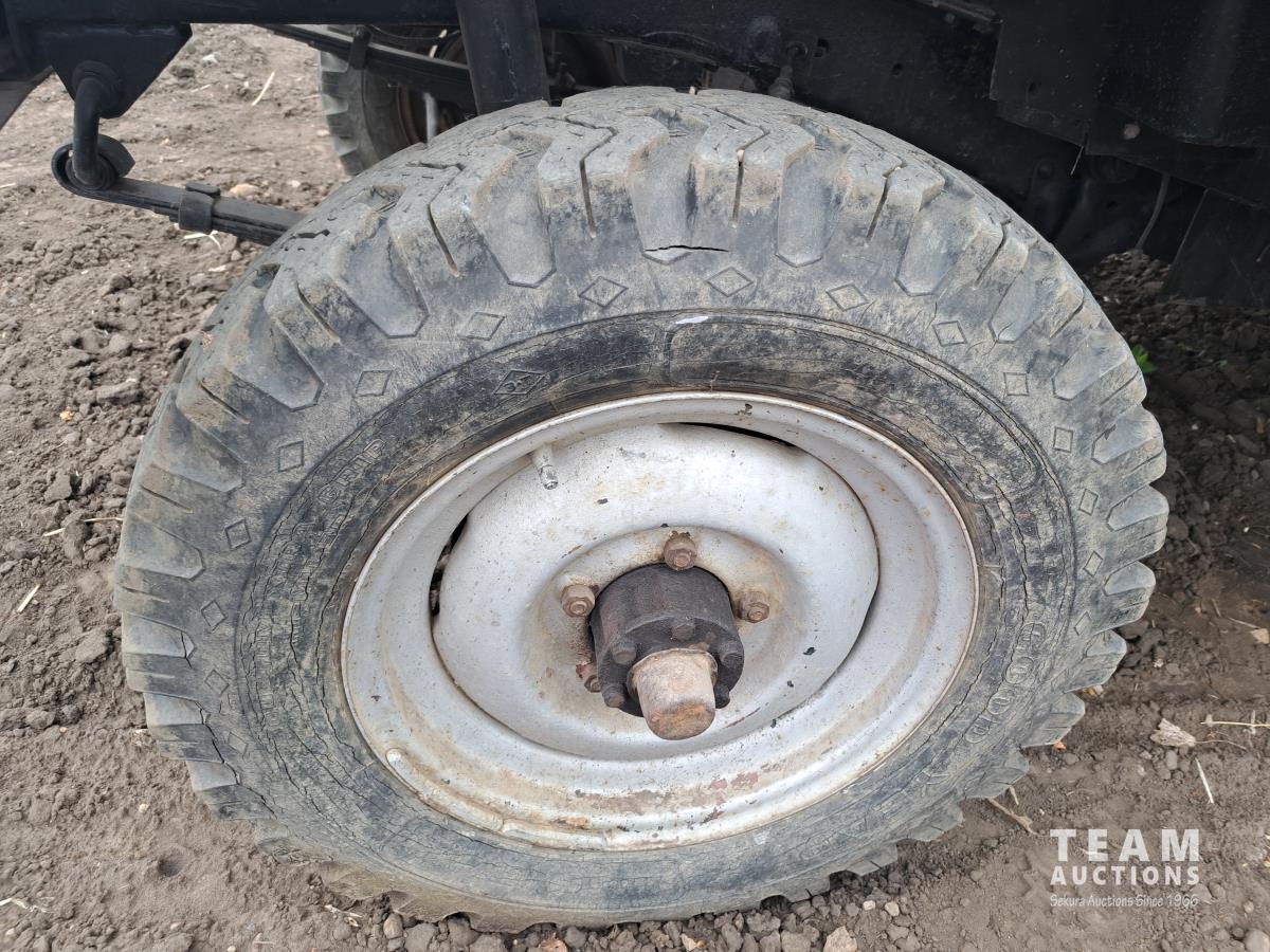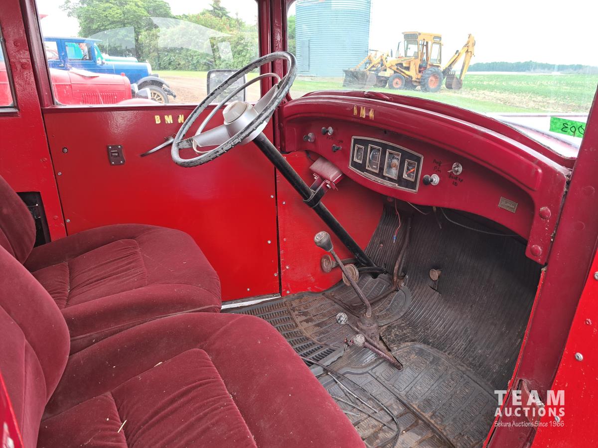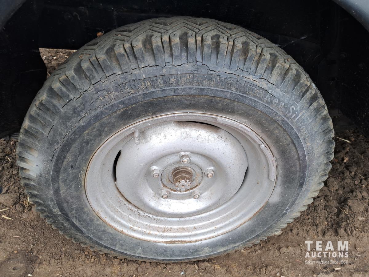 4 cylinder flathead gas engine, 3 speed transmission, high and low range, car body converted into a extended cab, P/L, P/W, power steering, cable winch dump box, 6.00-16ZLT tires