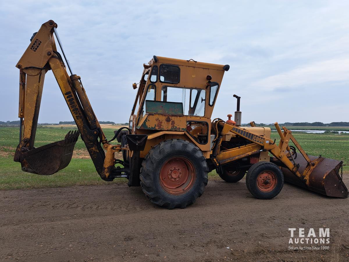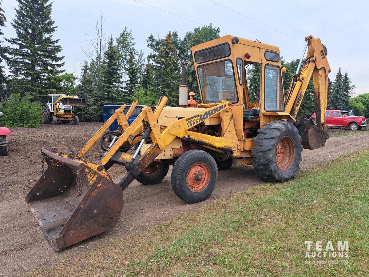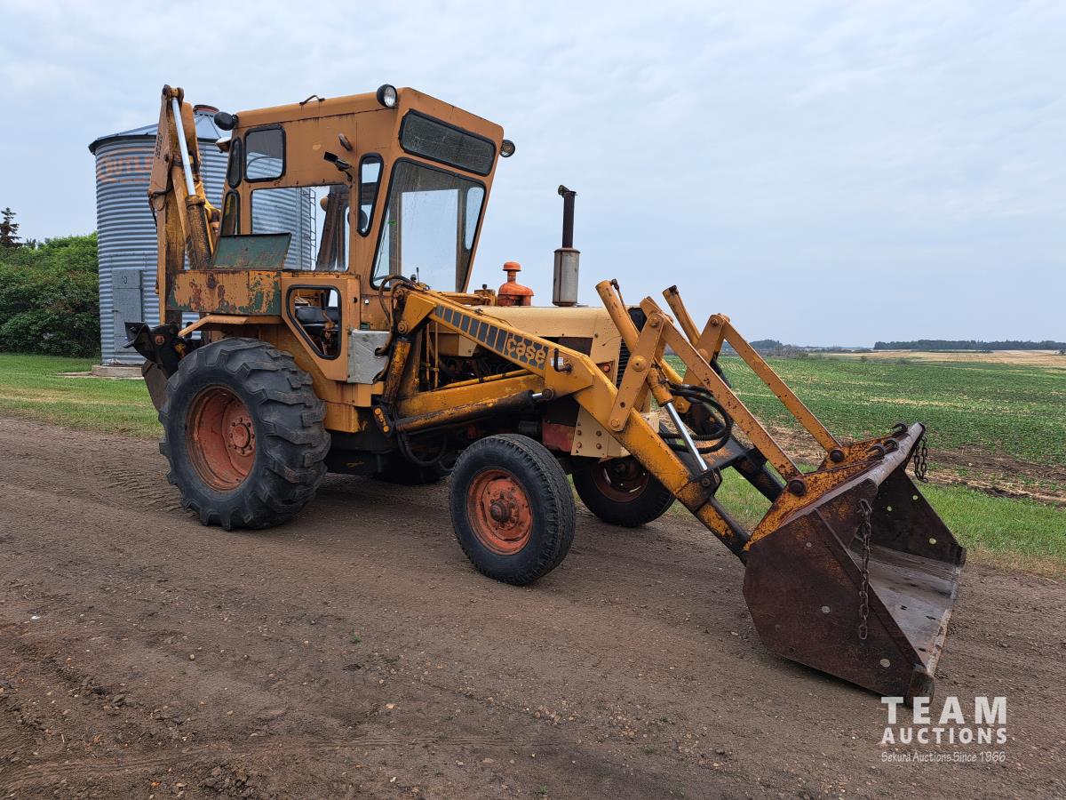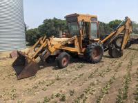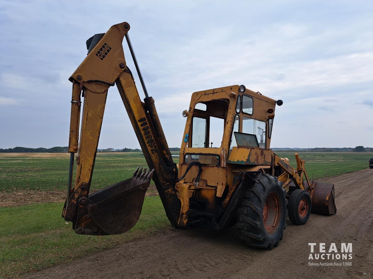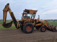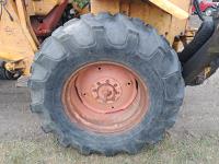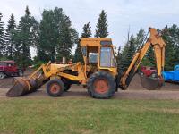 4 cylinder gas engine, 4 speed shuttle shift transmission, 6 ft loader bucket, 2 ft digging backhoe bucket, 7.50-16 front, 17.5-24 rear tires
