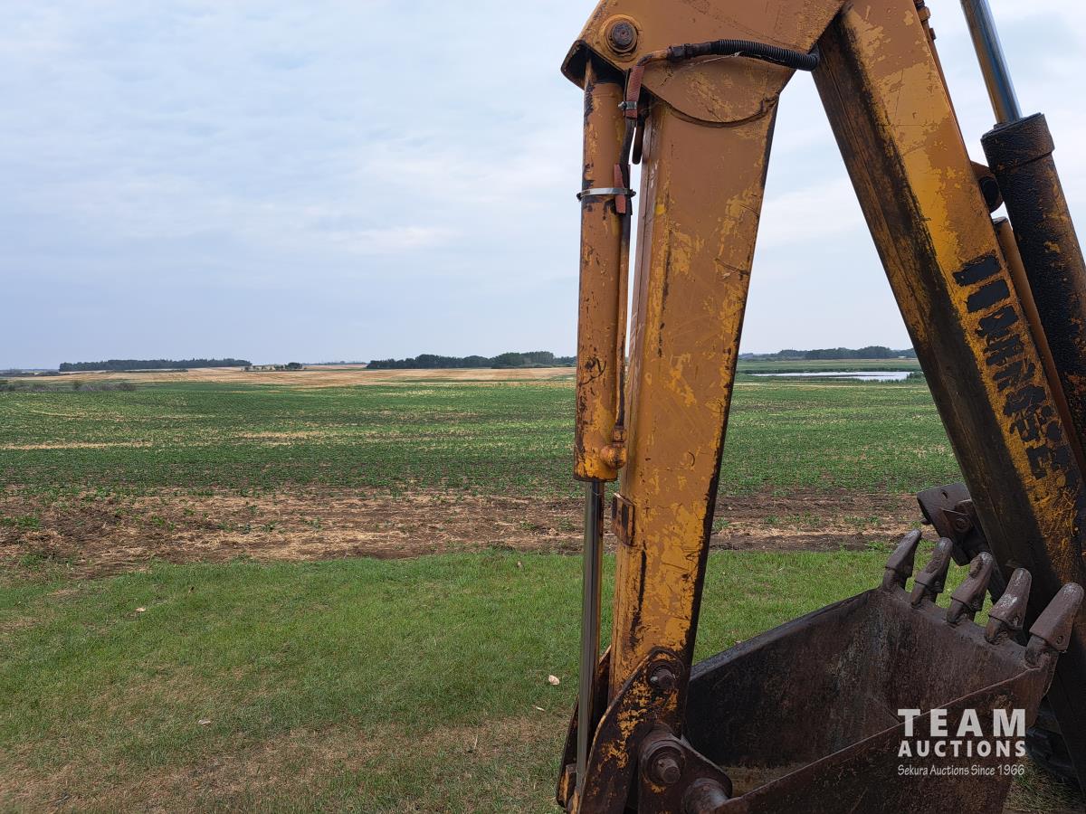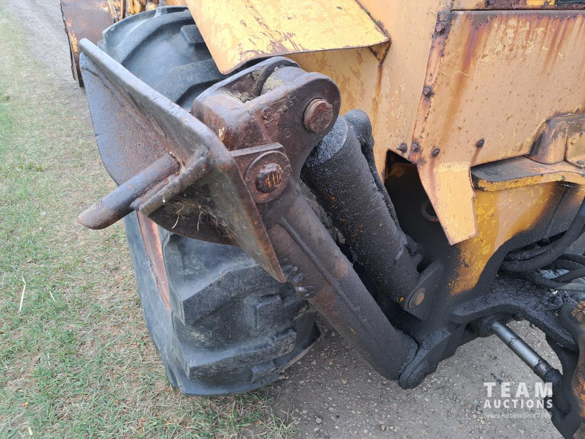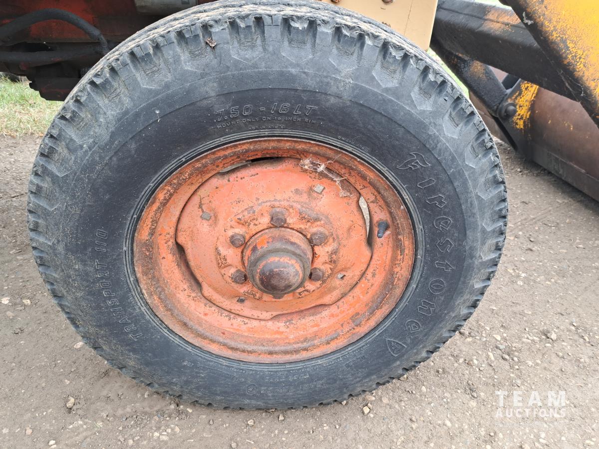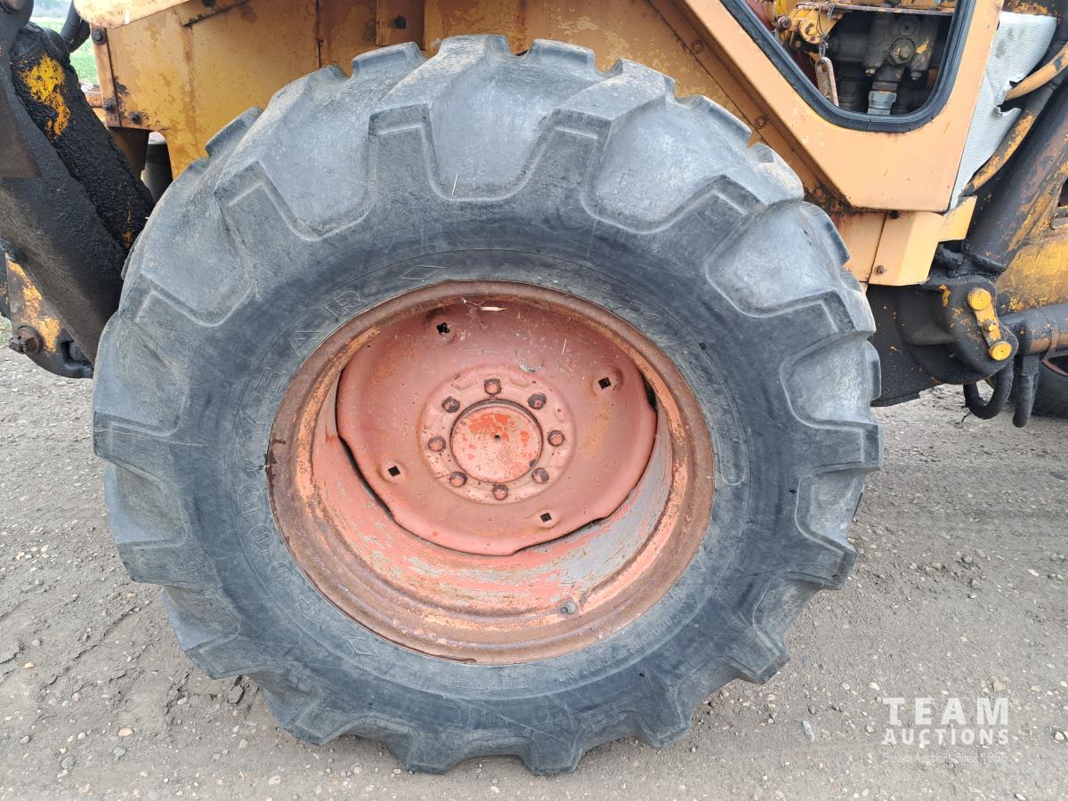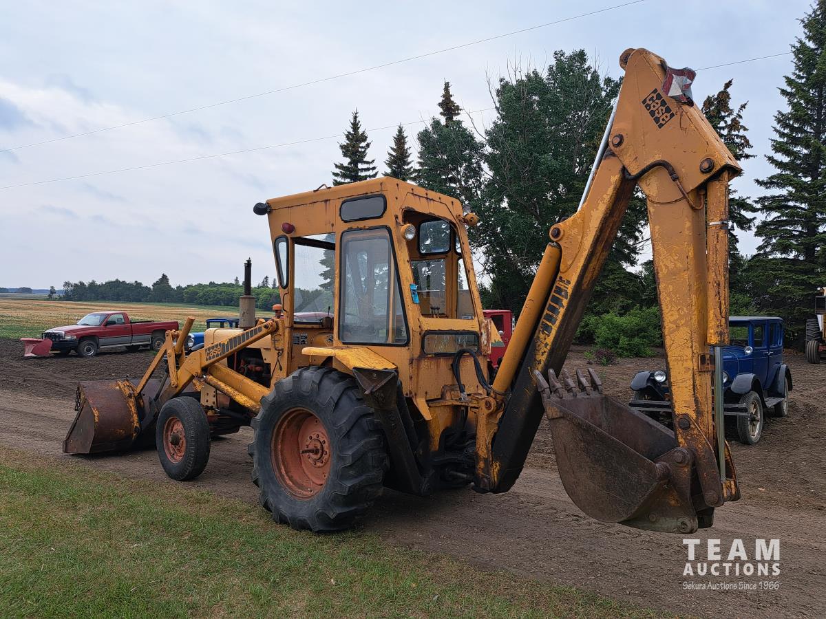 4 cylinder gas engine, 4 speed shuttle shift transmission, 6 ft loader bucket, 2 ft digging backhoe bucket, 7.50-16 front, 17.5-24 rear tires