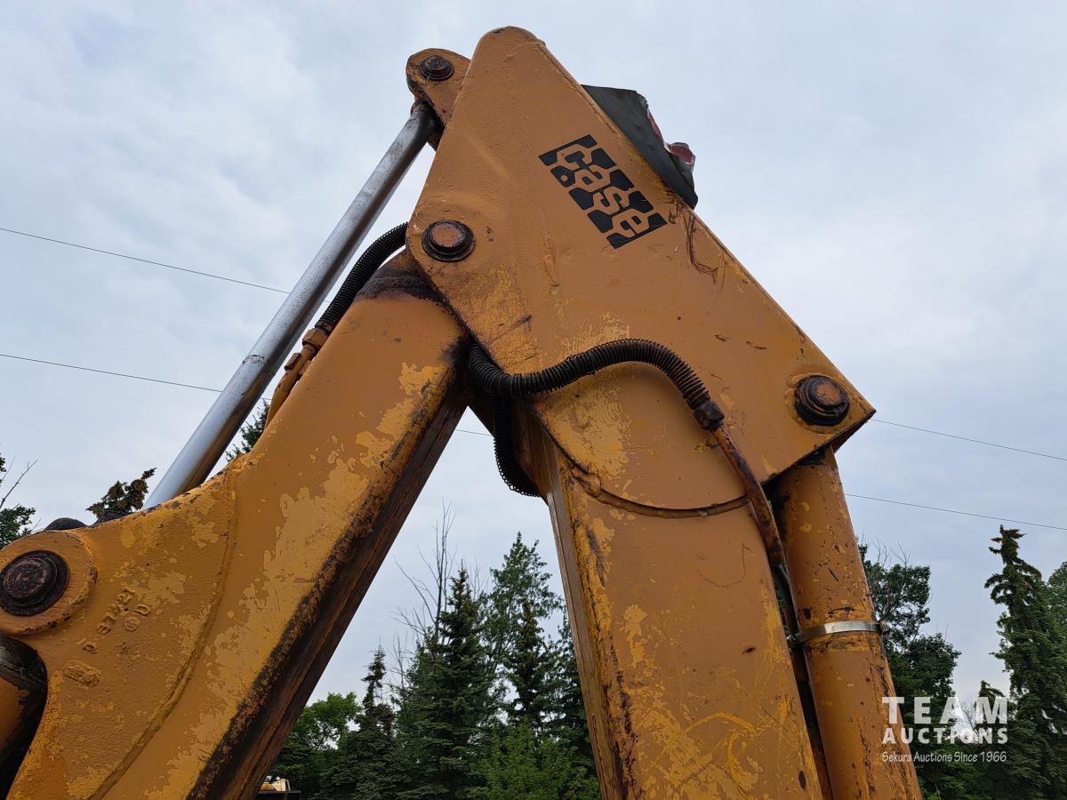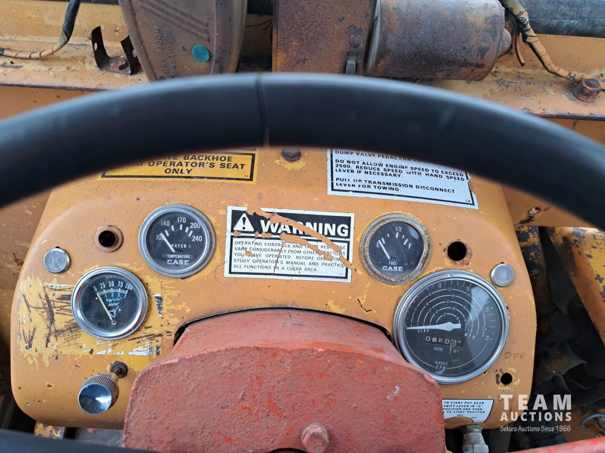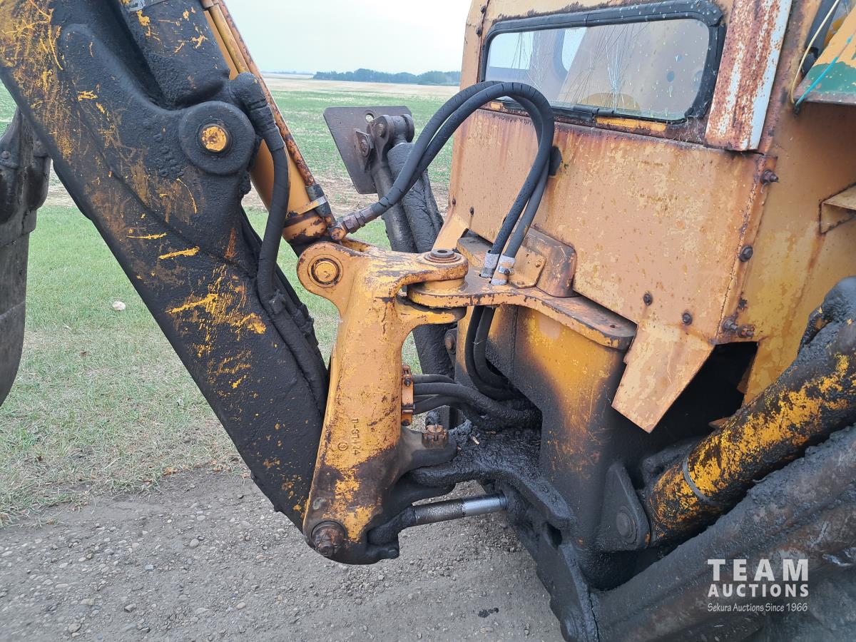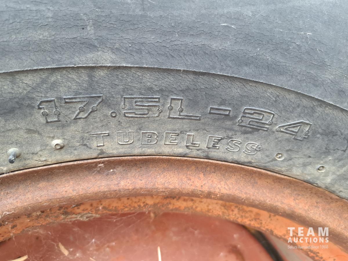 4 cylinder gas engine, 4 speed shuttle shift transmission, 6 ft loader bucket, 2 ft digging backhoe bucket, 7.50-16 front, 17.5-24 rear tires