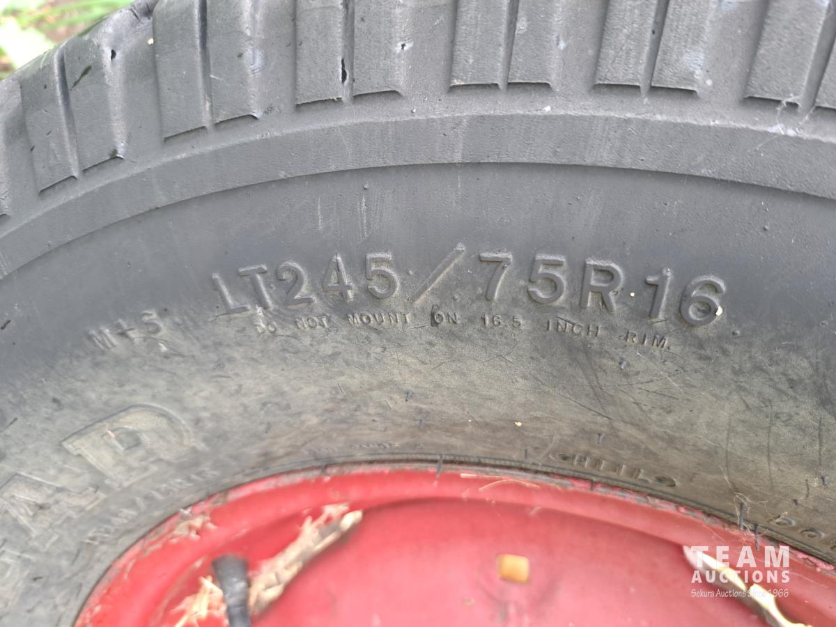 4.6L 4 cylinder gas engine, 46 PTO HP, hand clutch, belt pulley, 5 speed transmission, 9) hydraulic outlet, 245/75R16 front, 14.9-38 rear tires