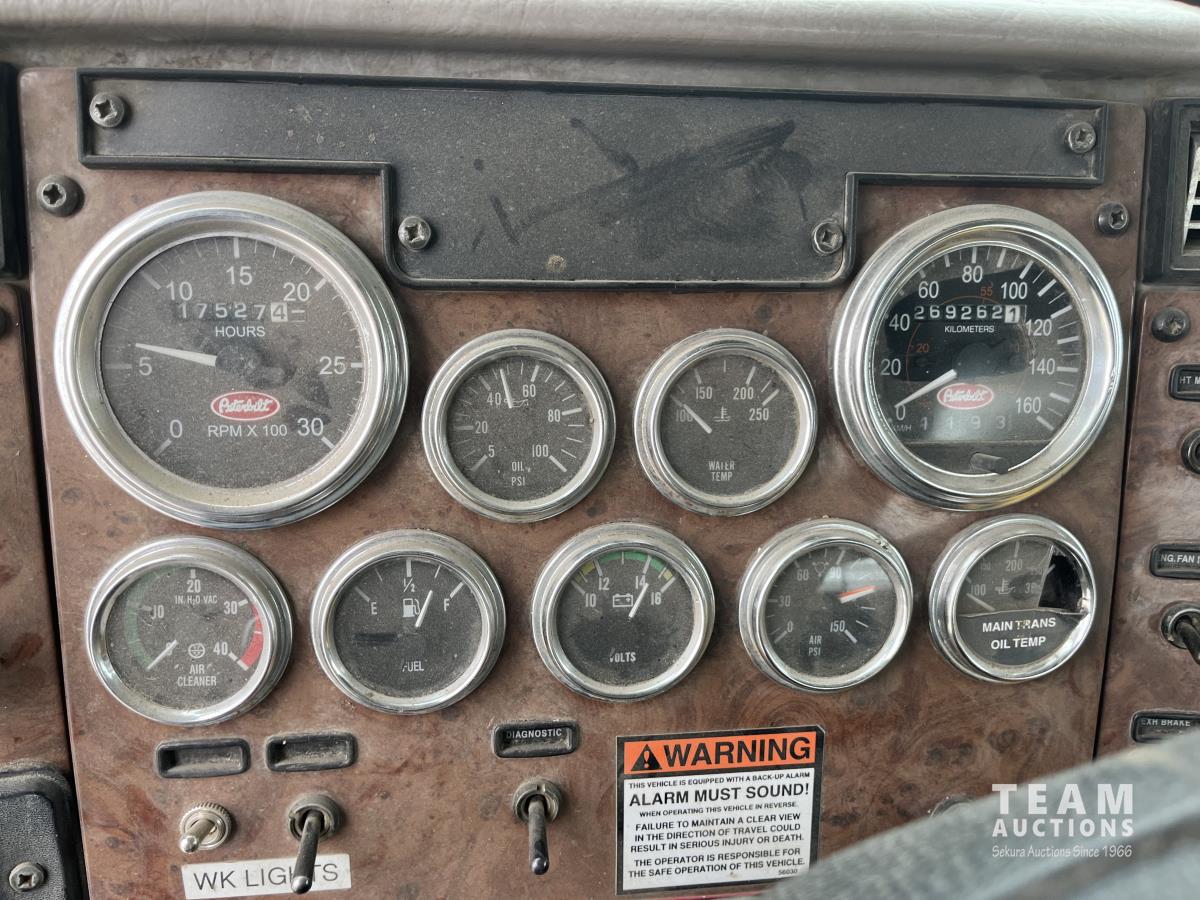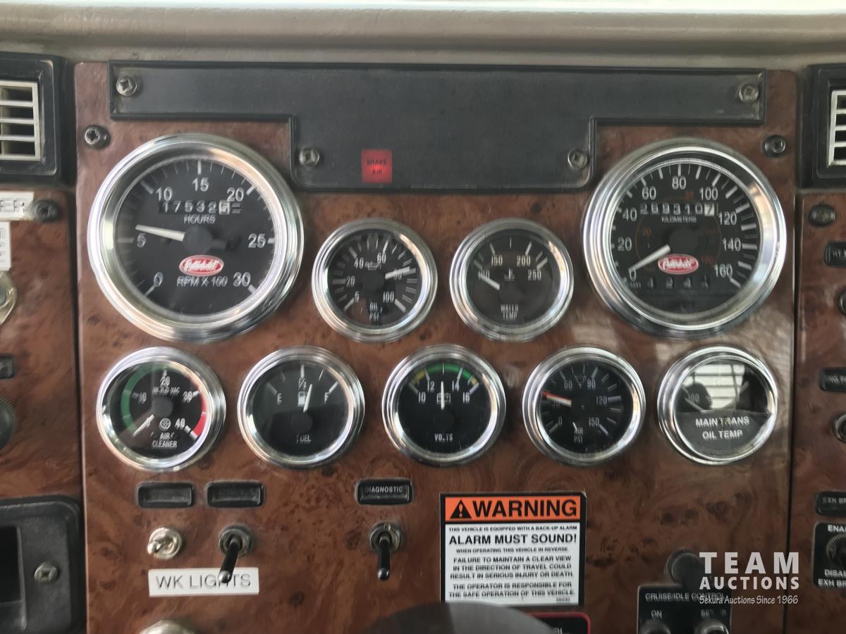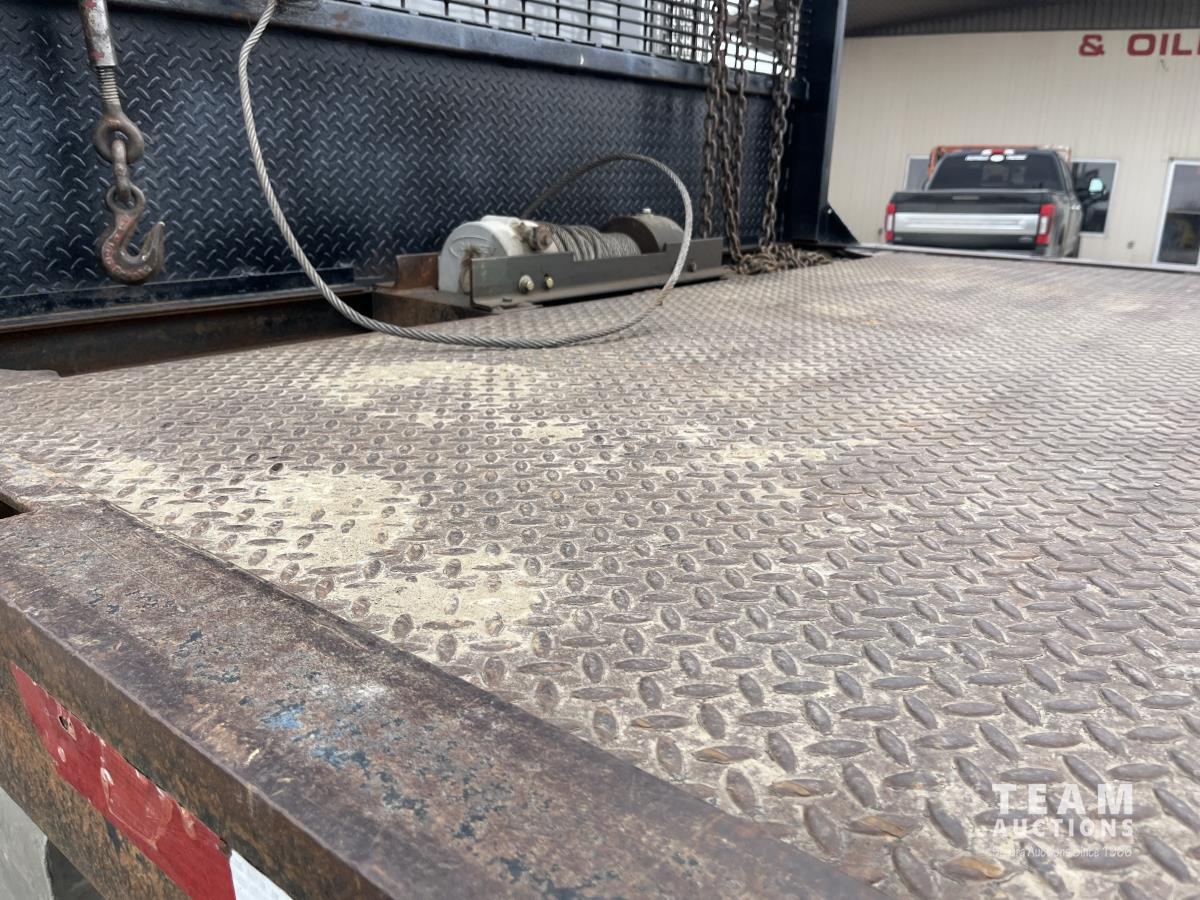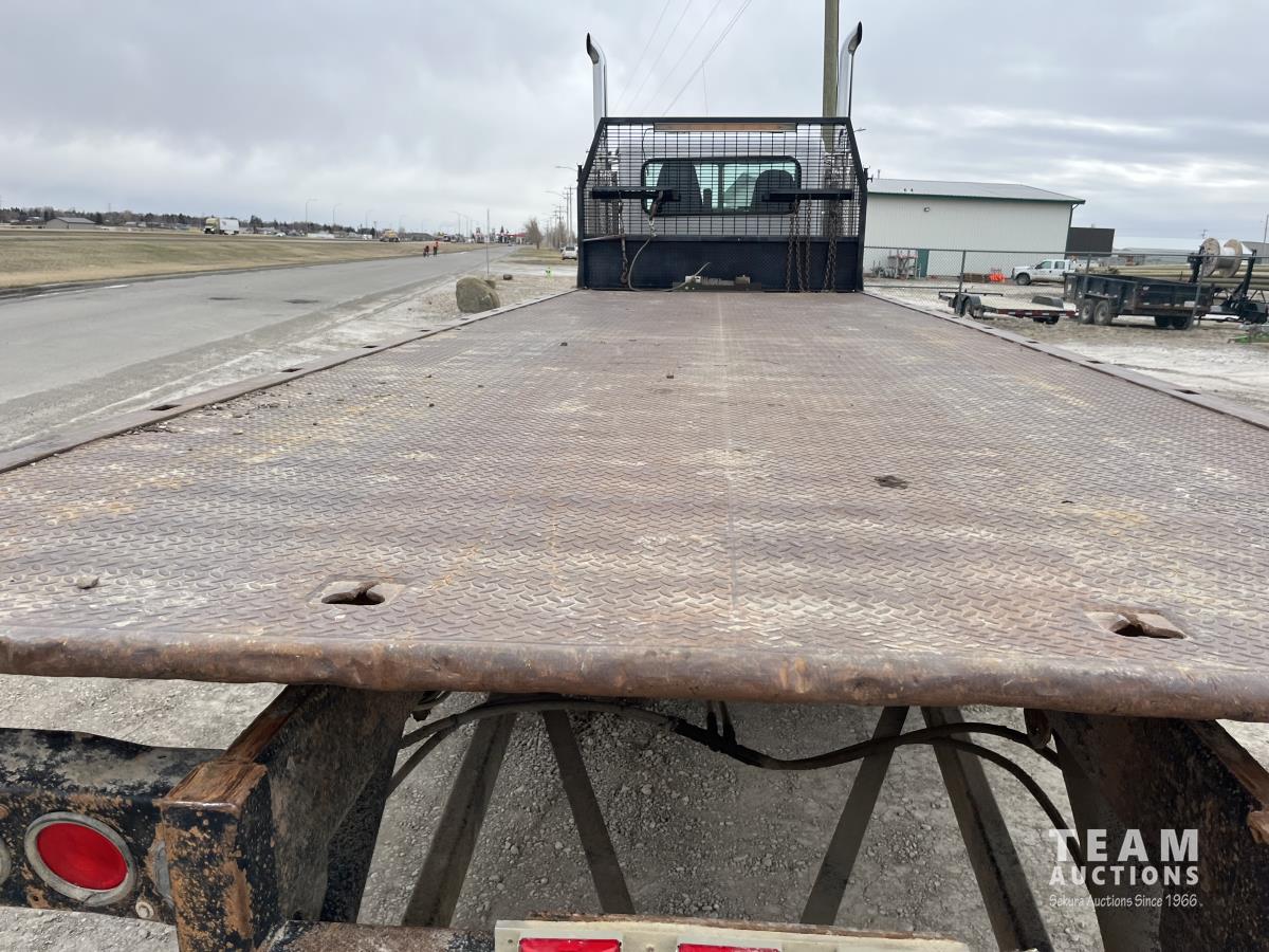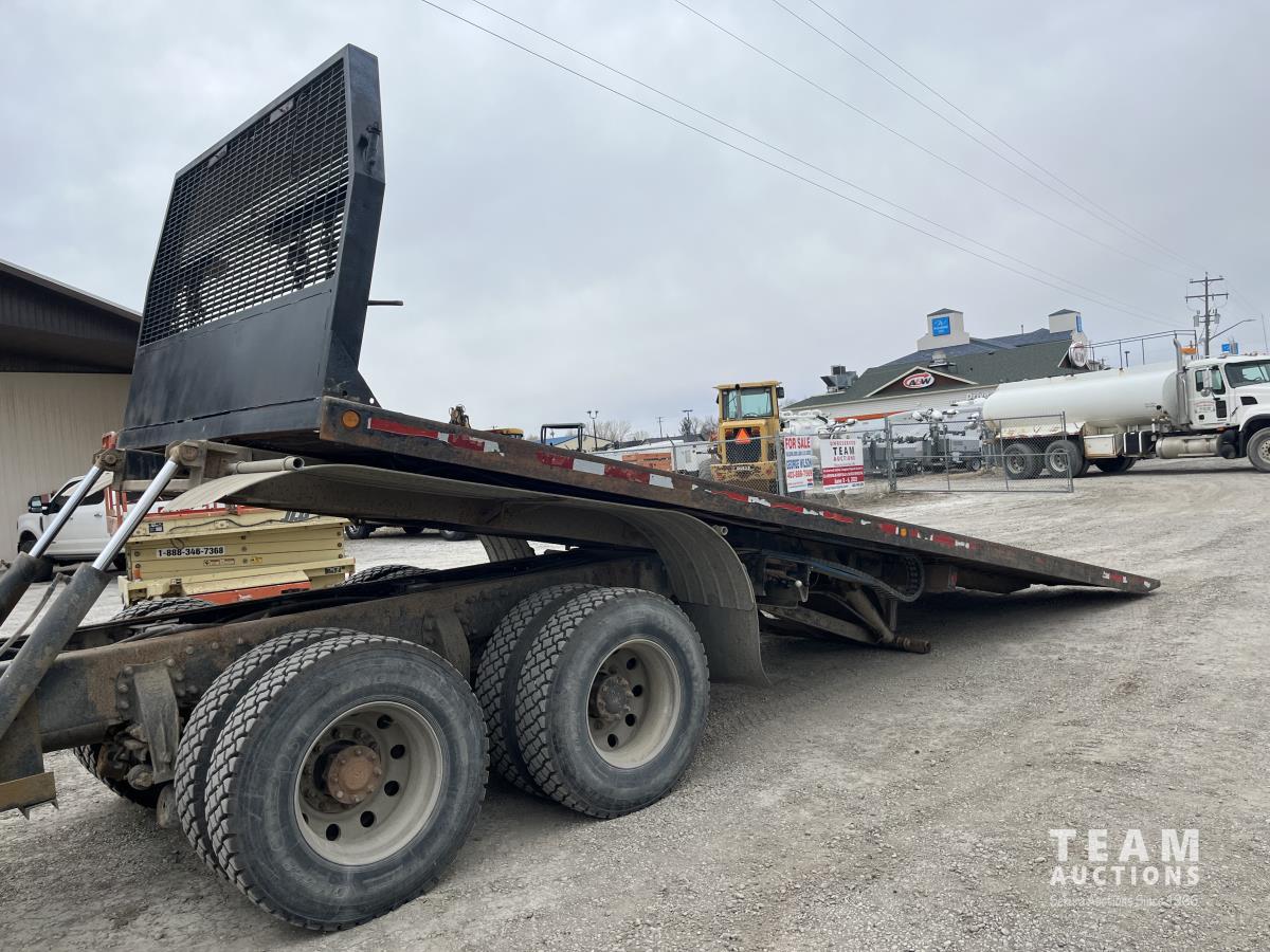 Cummins ASC315 8.3 L L6 315 HP engine, Eaton Fuller 8LL manual transmission, 102 inch x 26 ft deck, hoist, rear controls, winch, air ride suspension, 14,600 lb front axle, 40,000 lb rear axles, diff lock, 4.88 ratio, 241 inch WB, all aluminum wheels, 385/65R22.5 front tires, 11R22.5 rear tires