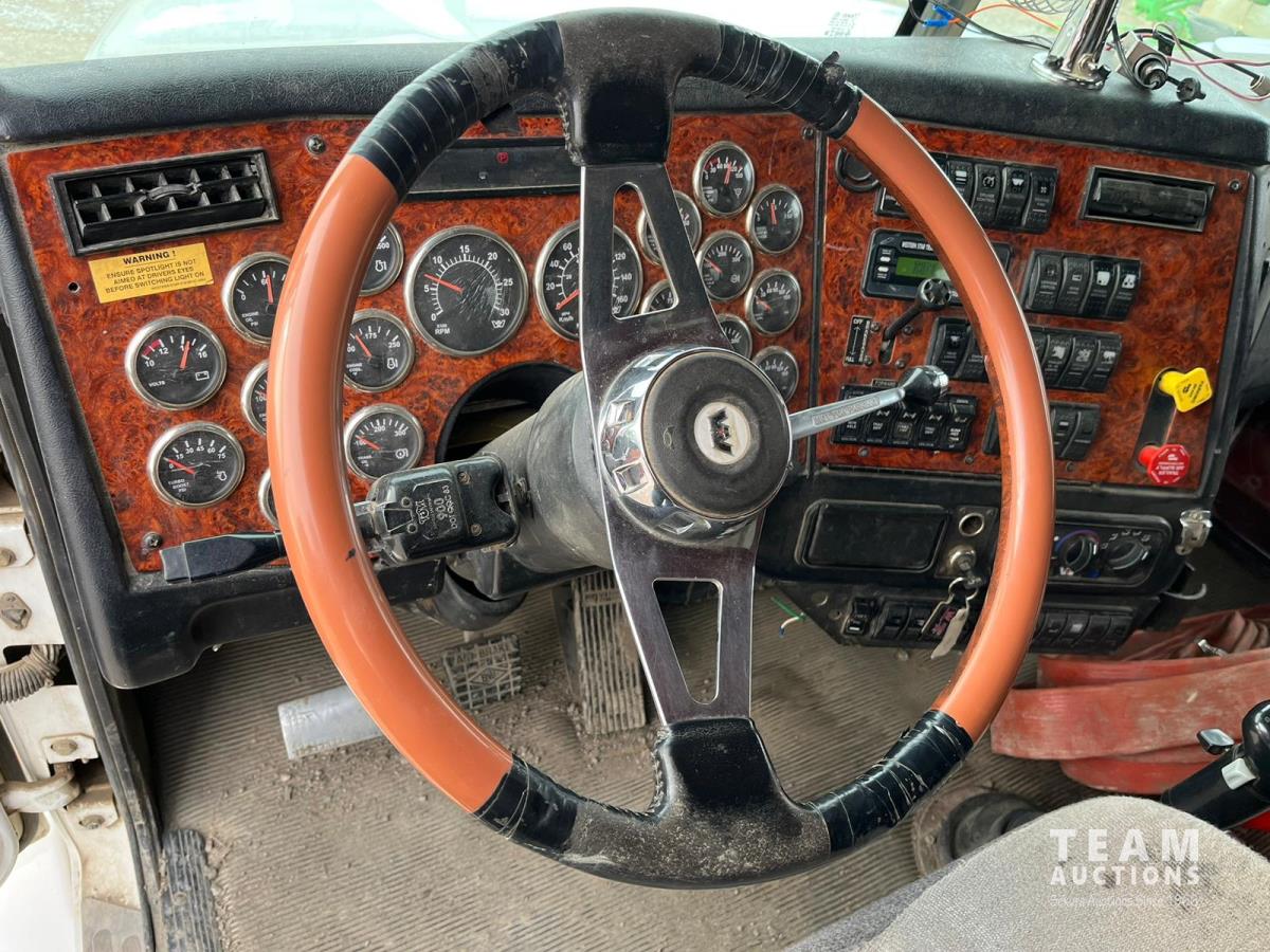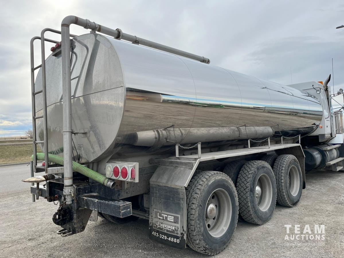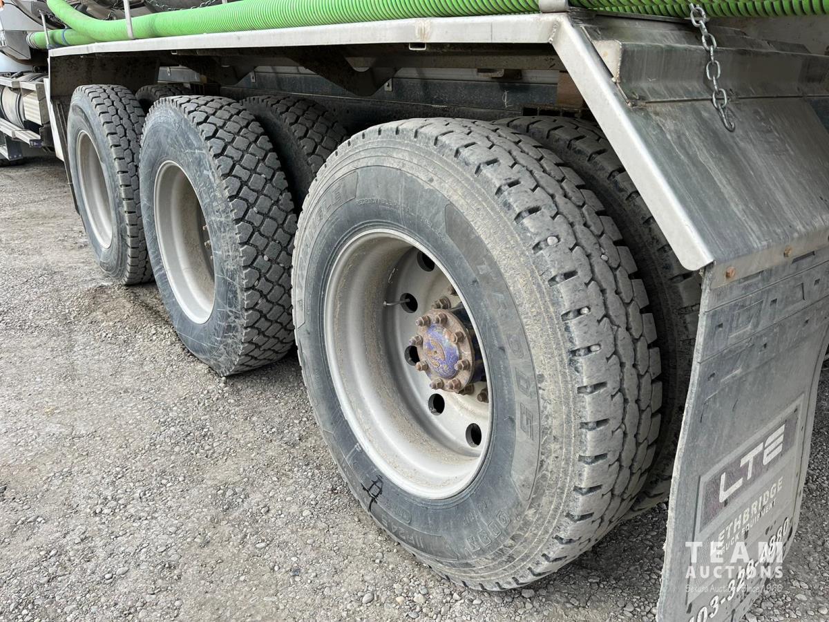 Caterpillar C15 14.6 L L6 550 HP diesel engine, Eaton Fuller 18 speed manual transmission, Mid-State 19078 liter stainless steel tank, air ride suspension, 20,000 lb front axle, diff lock, 4.56 ratio, 277 inch WB, Meritor RZ-166 rears, all aluminum wheels, 445/65R22.5 front tires, 11R24.5 rear tires