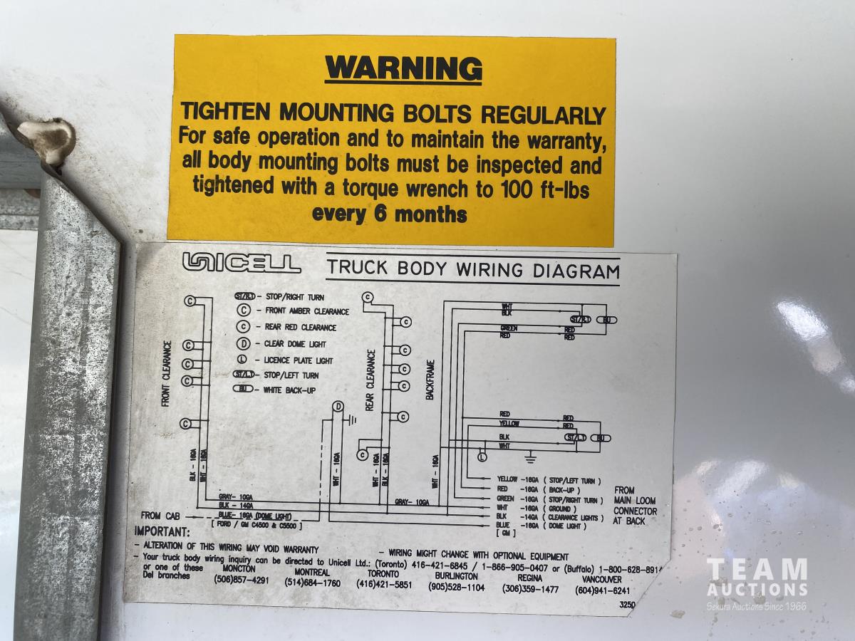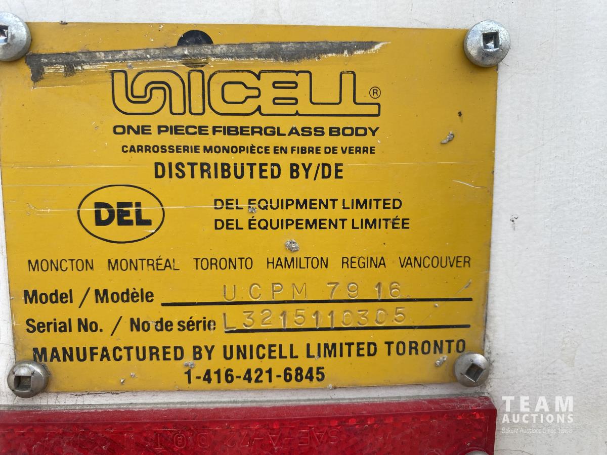 Ford 5.4L gas engine, engine block heater, automatic transmission, A/C, radio, 16.6 ft van, spring suspension, 176 inch WB, rear step bumper, Unicell Model UCPM7916 van body, S/N L3215110305, Aluminum 32 inch slide in rear ramp, LT225/75R16 tires