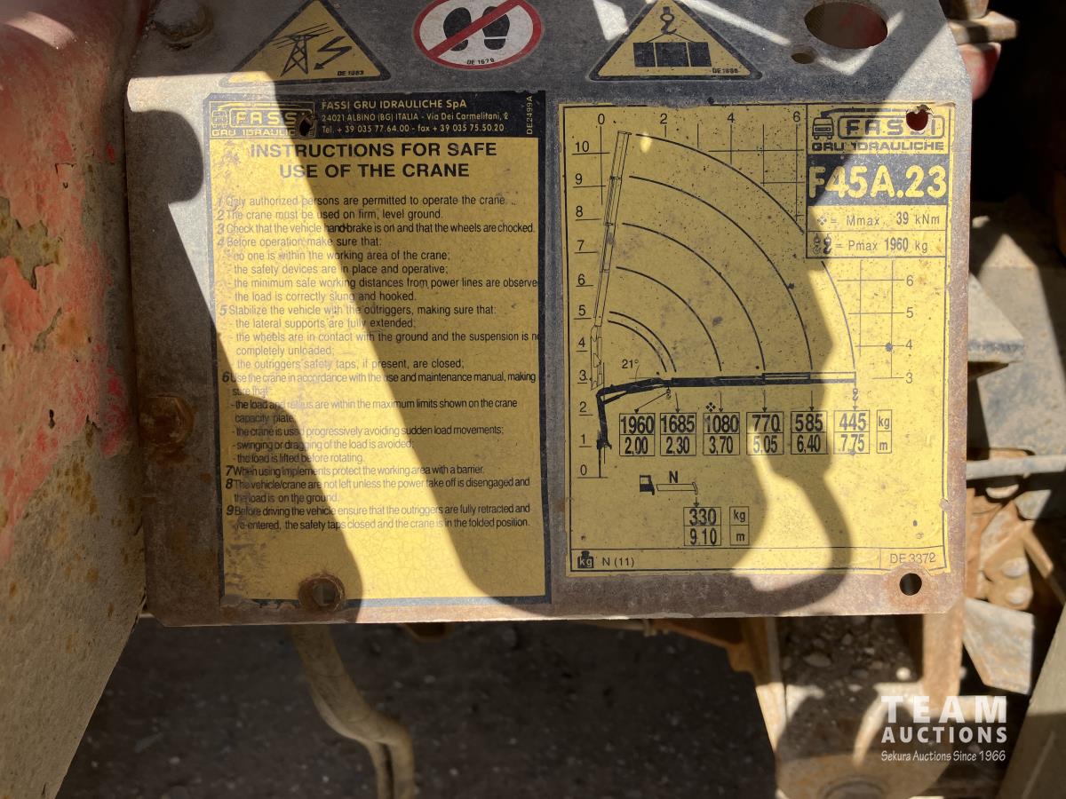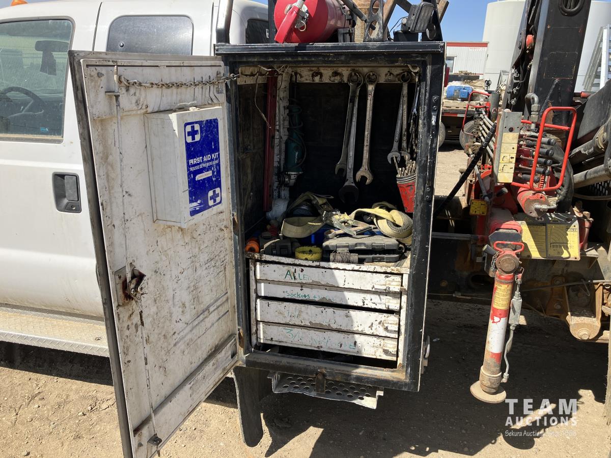 Power Stroke 6.7 L V8 diesel engine, electric engine block heater, positive air shutoff, 6 speed automatic transmission, A/C, cruise control, stereo, steel tool boxes, 94 inch x 134 inch deck, Fassi F45A.23 3 section knuckle crane, outriggers, 4,320 lb capacity, dual control, 25 ft 9 inch reach, spring suspension, 186 inch WB, 245/75R19.5 tires