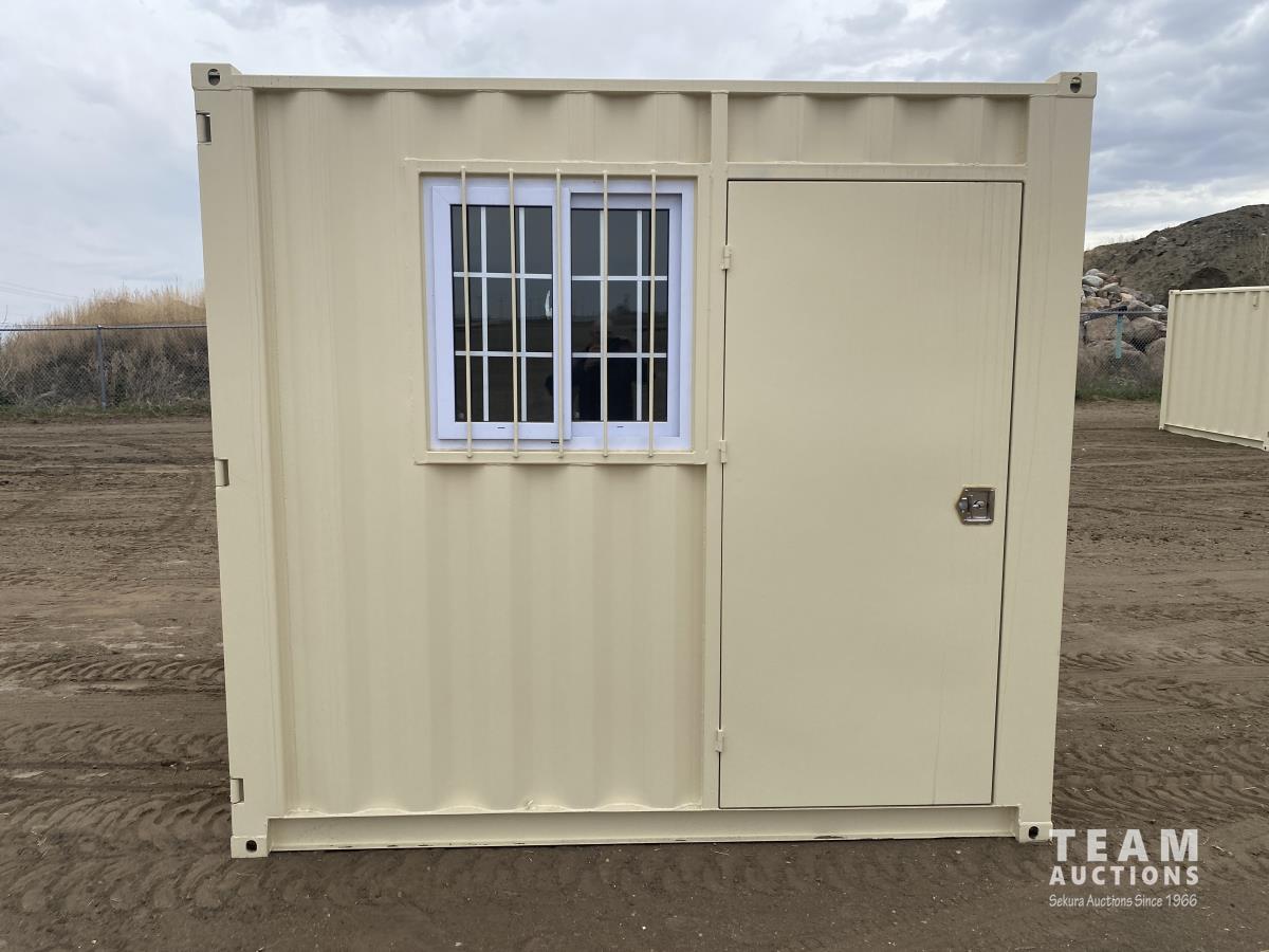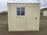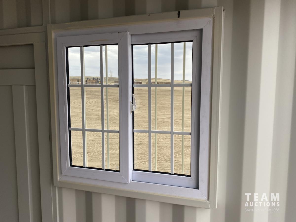 Walk in door, sliding window, one end door, lock box, forklift pockets, side vent.