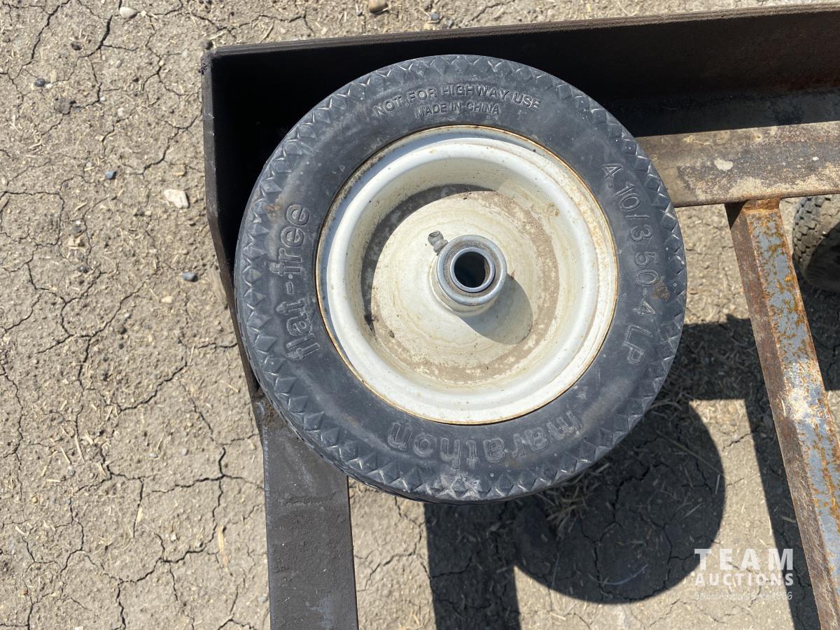 Flat free tires, 4.10/3.50-4 tires, 1 spare tire.