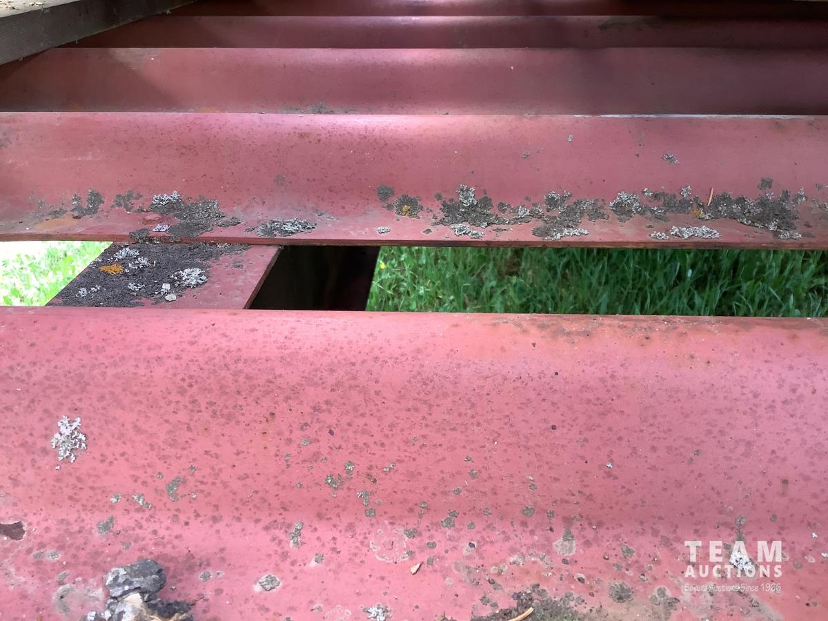 The floor is a steel open plate and has side extensions for hauling round bales. Trailer cannot be picked up until after July 1st, 2023.