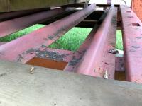 96 inch wide deck, wood deck, spring suspension, rub rails, stake pockets, 2 5/16 ball hitch hook-up, bale rack, , 7-14.5 tires