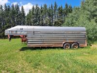 20 ft main deck, 5 ft top deck, 4,700 lb axles, side door, rear loading door, (2) self-locking divider gates, (2) spare tires, 8.5Rx16 tires