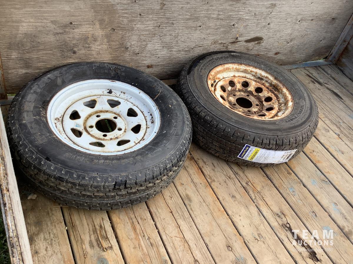 83 inch wide deck, ball hitch, removable sides, rear loading ramps, (2) spare tires and rims, 3500 lb axles, 205/75R15 tires