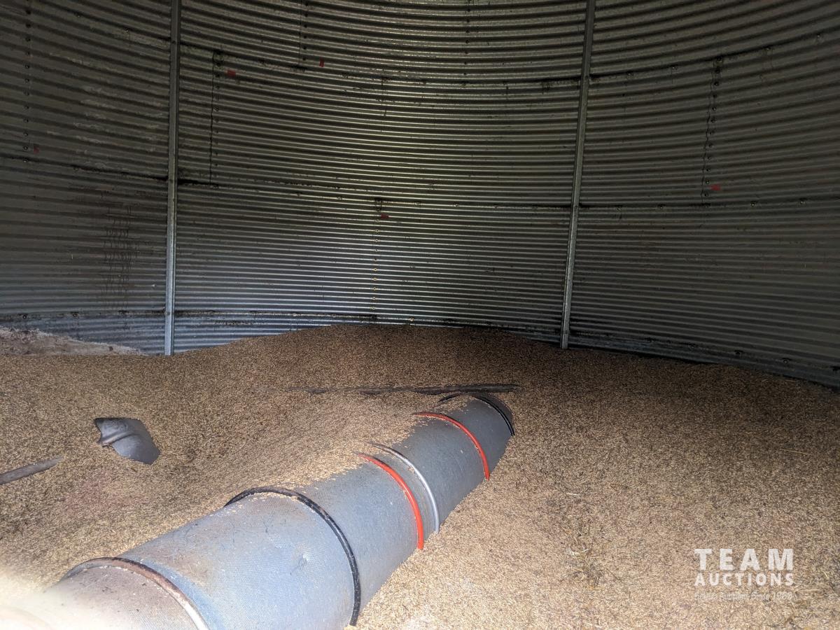 Aeration fan sells separately. Poor floor with a little grain remaining, grain can be left at farm if not wanted.