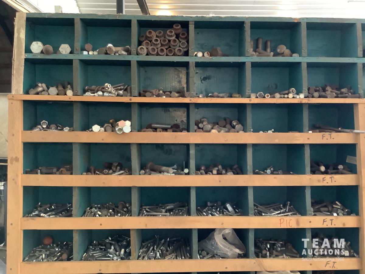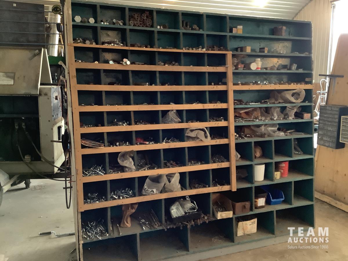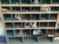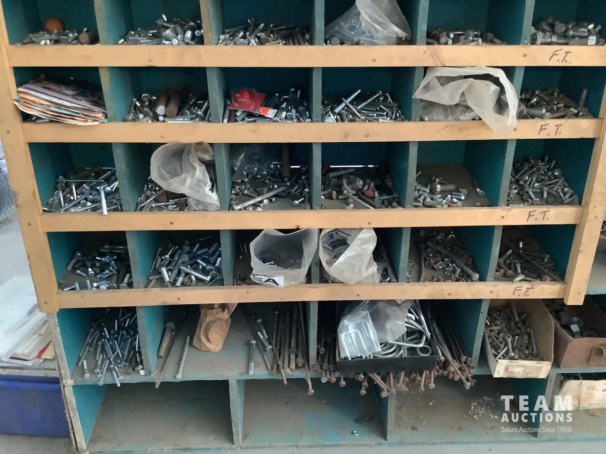 47 Wooden Parts Bin Loaded with Bolts, Nuts, Washers and Wire
