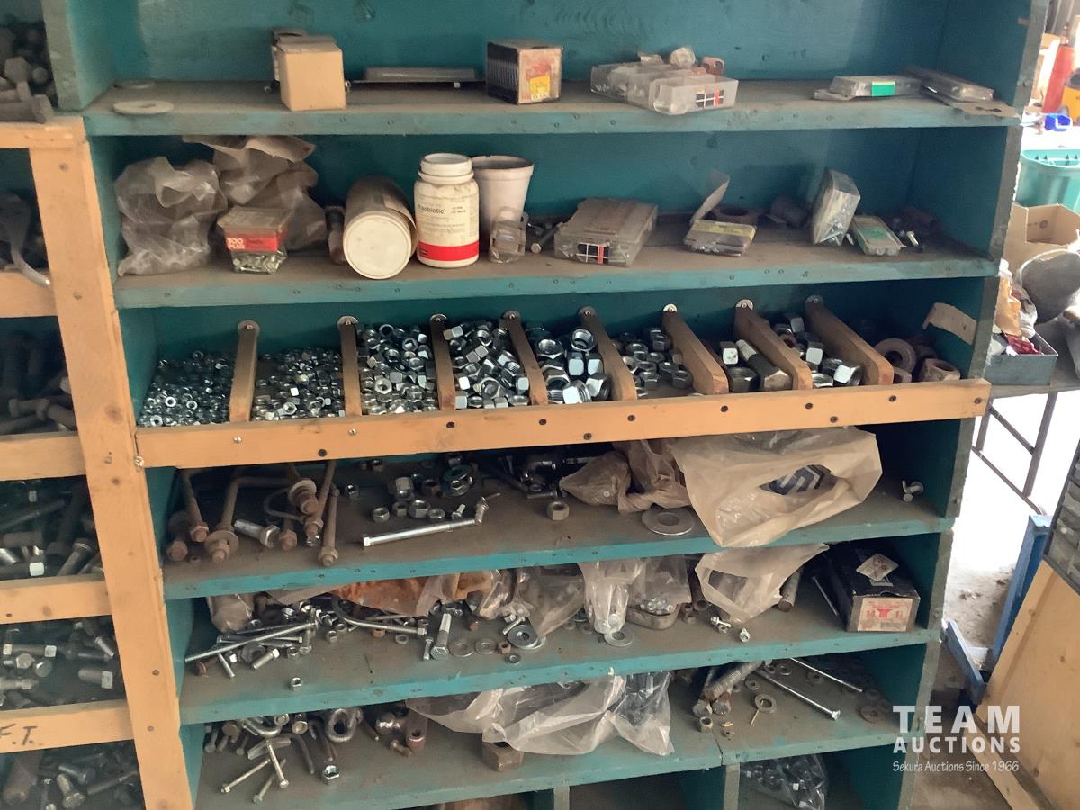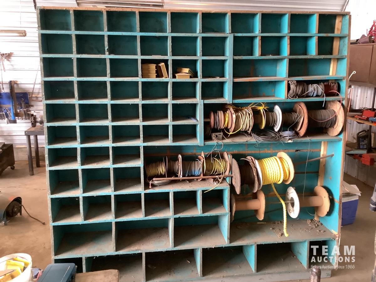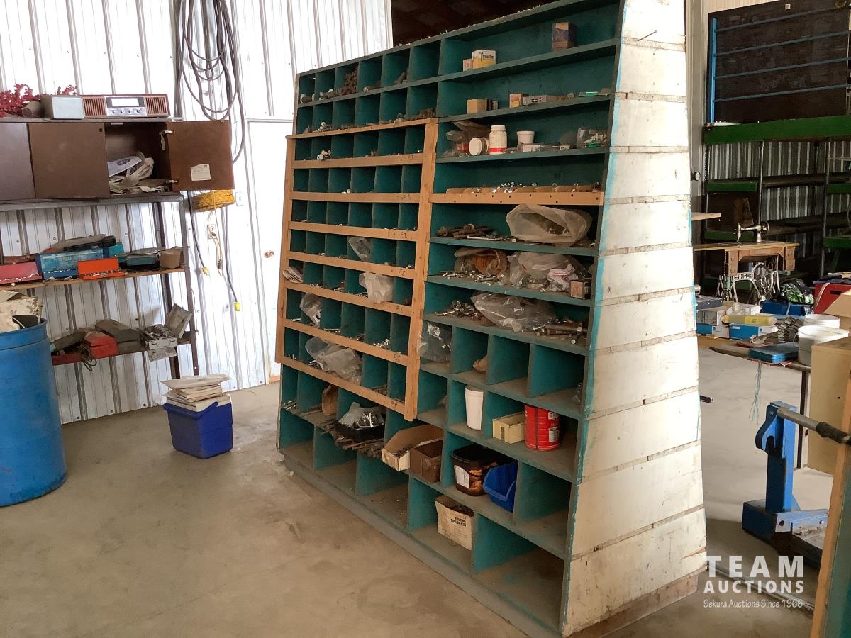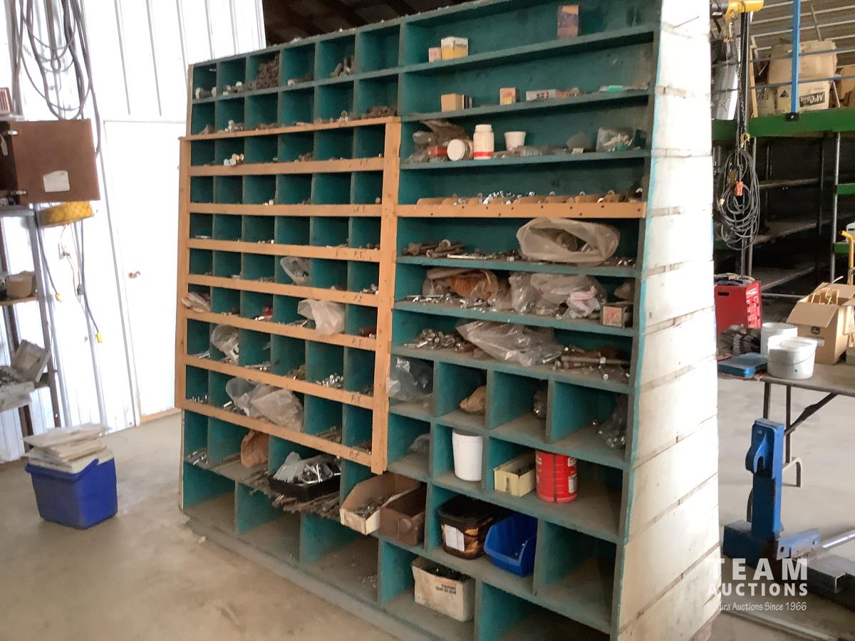 47 Wooden Parts Bin Loaded with Bolts, Nuts, Washers and Wire
