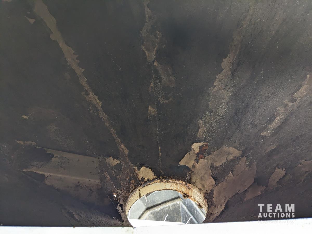 This is a complete estate dispersal of grain bins. Some surface rust inside. There is a couple of dents on one side.