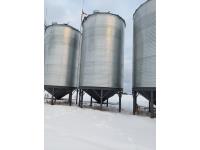 4000± bu capacity, 7 leg hopper, double steel ring foundation, horizontal aeration tube, ladder bin opener, roof vent, full bin sight glass