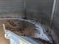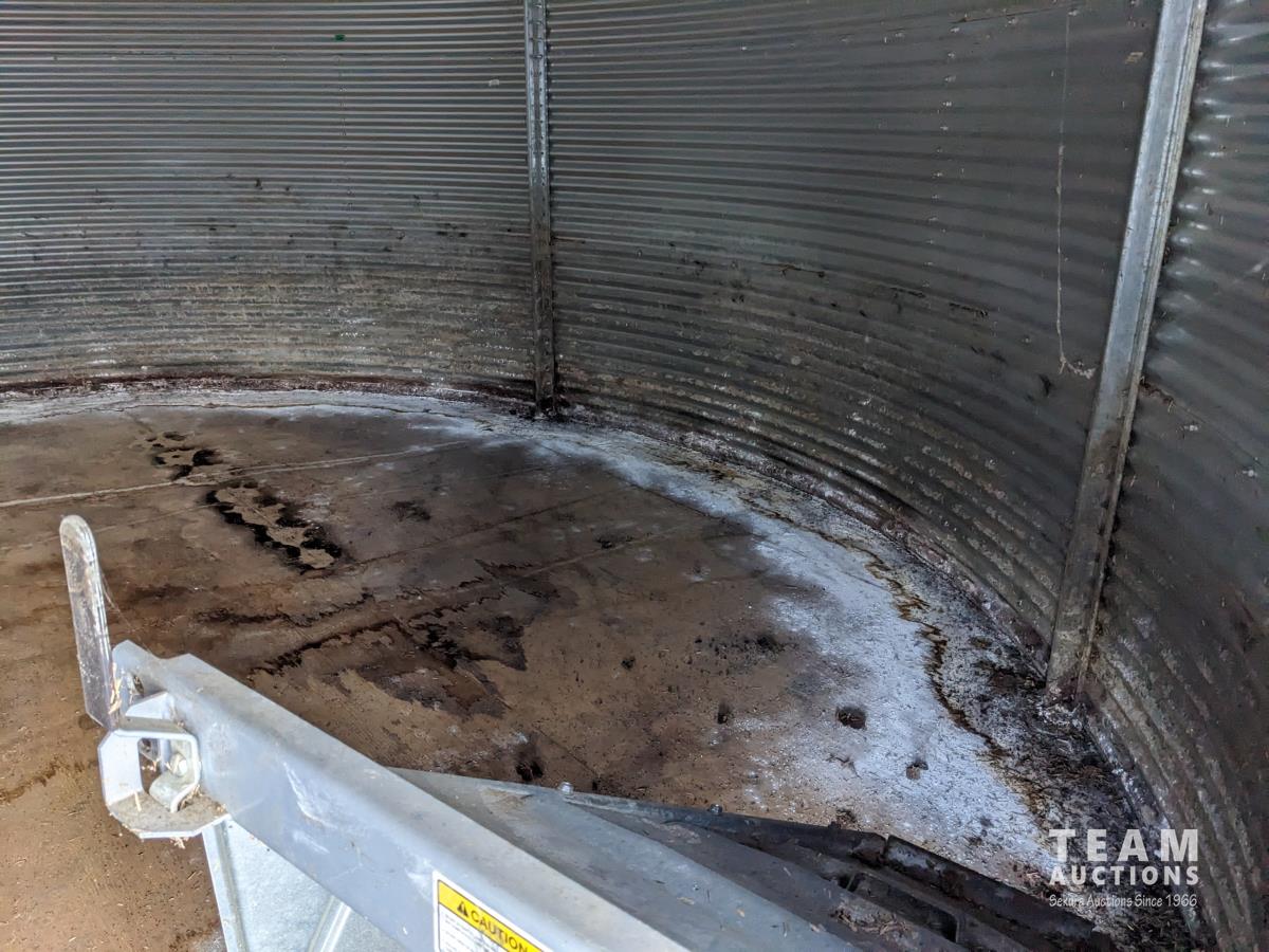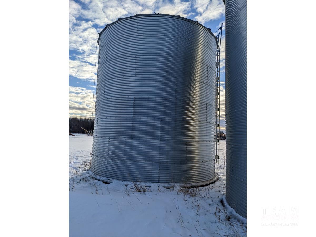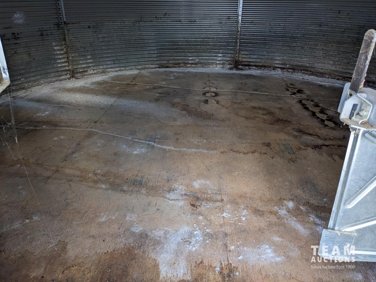 This is a complete estate dispersal of grain bins. Floor has some fertilizer staining and some rust on lower ring but floor looks solid.