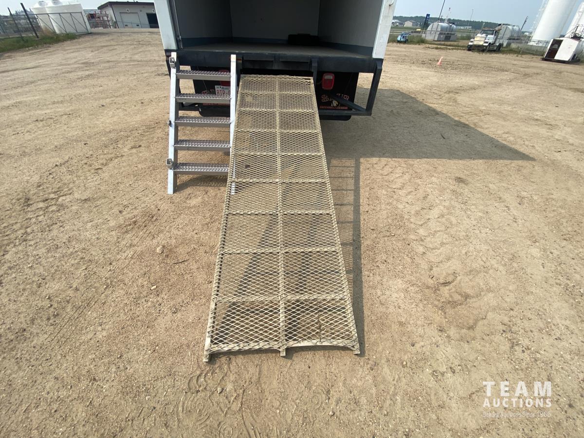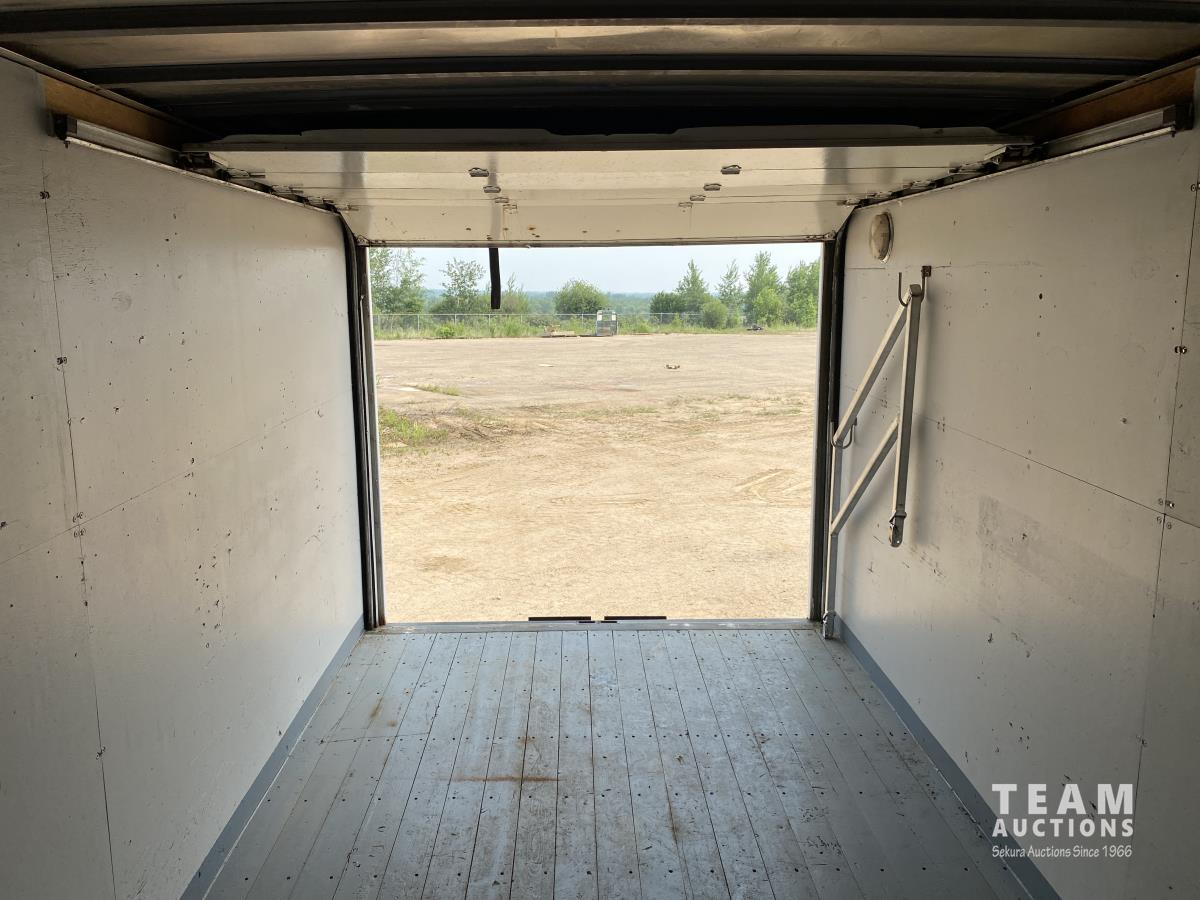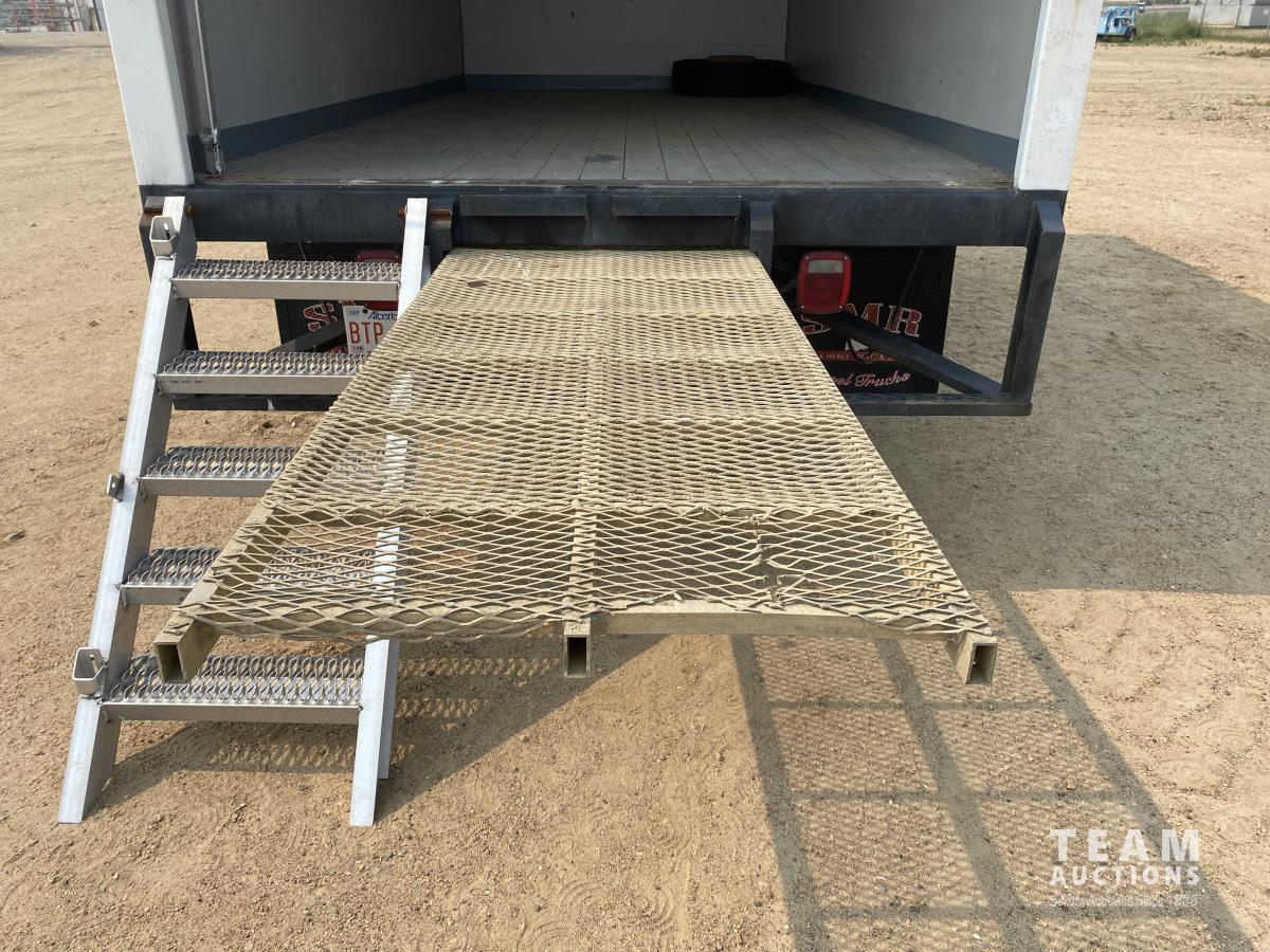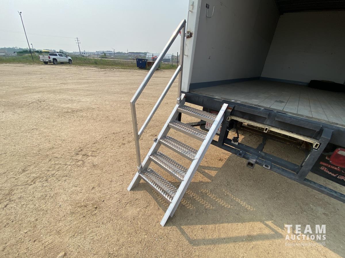 Ford V8 diesel engine, automatic transmission, 16 ft van, 90 inch high, spring suspension, staircase with railing. slide out ramp, 2 inch receiver hitch, roll up rear door,, 225/70R19.5 front tires