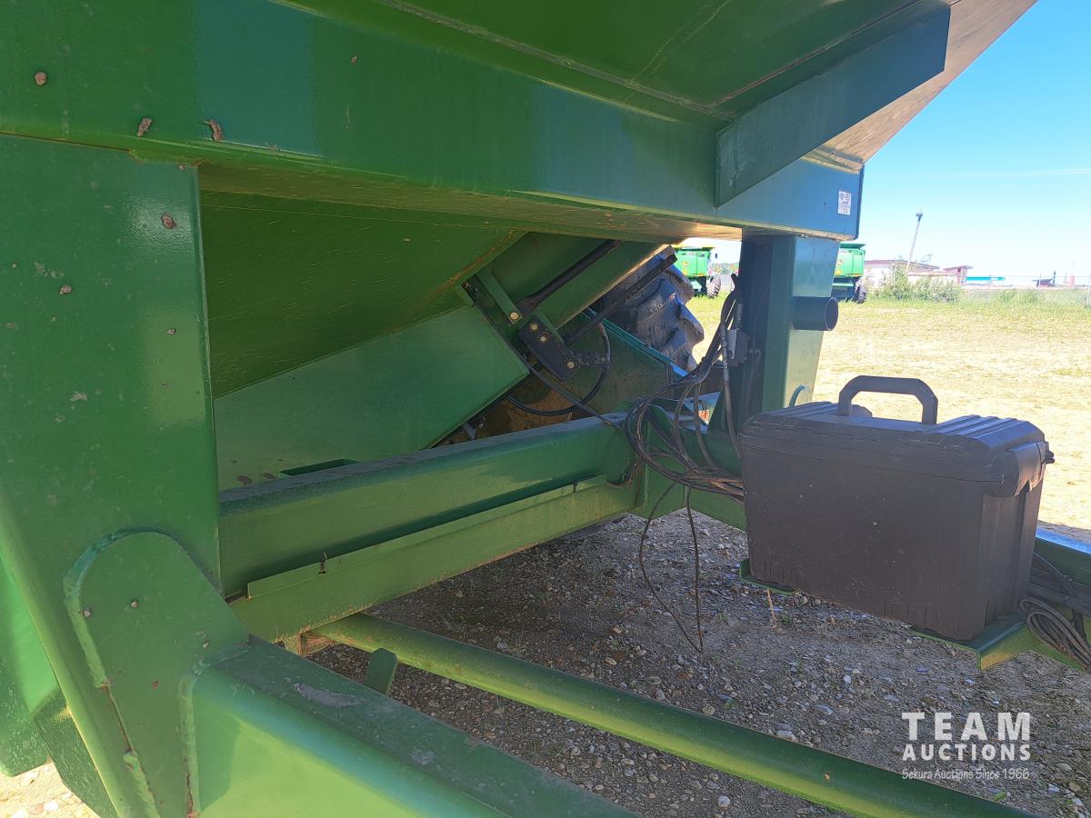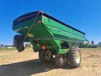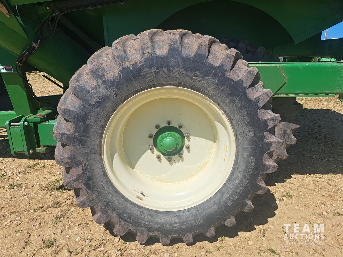 Big 1000 PTO, 20 inch discharge auger, road lights, roll tarp, walking axles, 520/85D38 tires