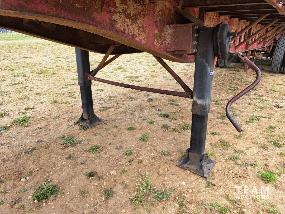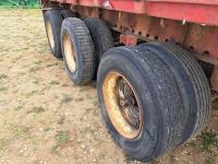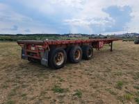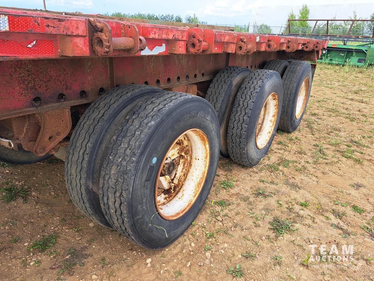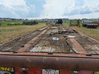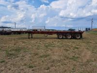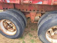 96 inch wide deck, wood deck, rear live roll, cargo winches. stake pockets and rub rail on righthand side, spring suspension, 11R24.5 tires