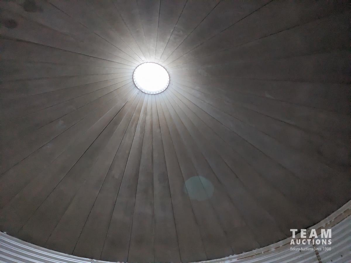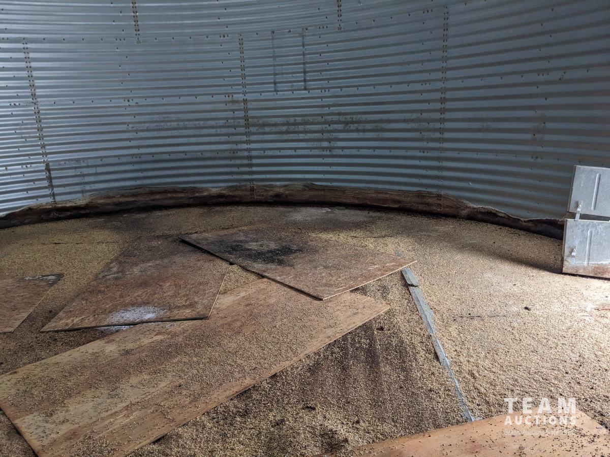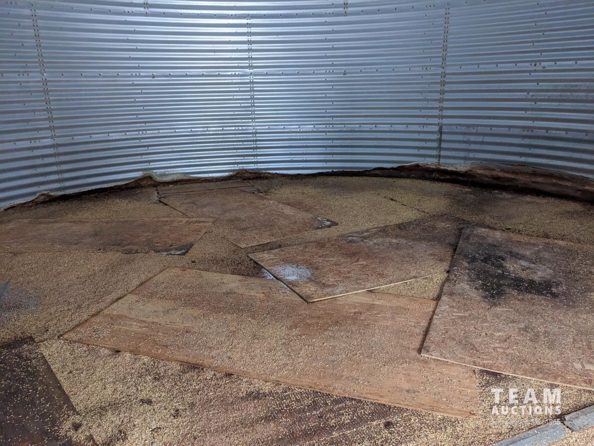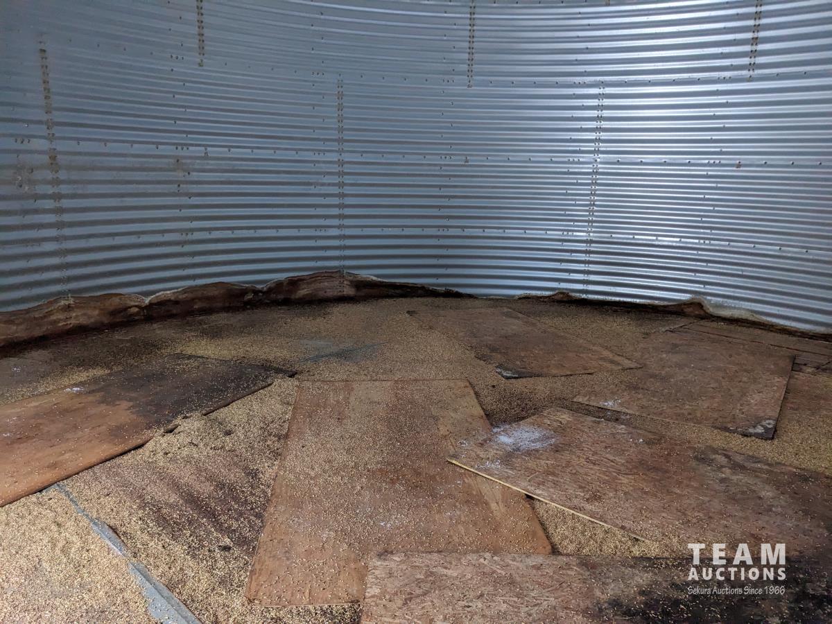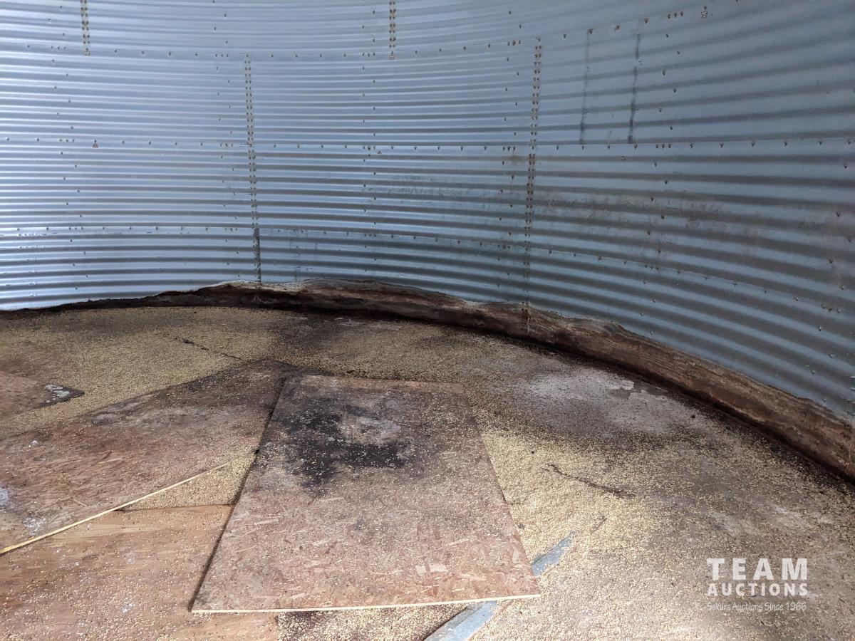 This is a complete estate dispersal of grain bins. Some rust damage to bottom ring. Buyer is responsible for disassembly of bin for removal.