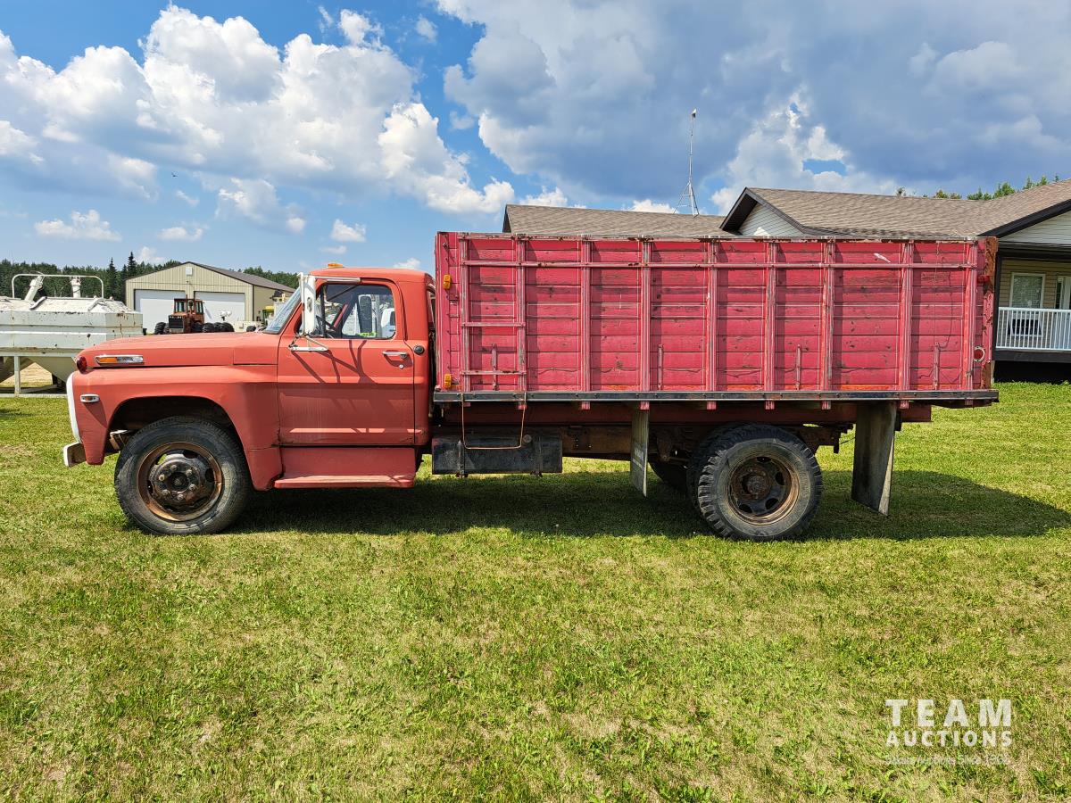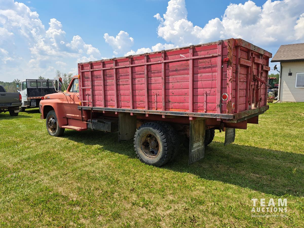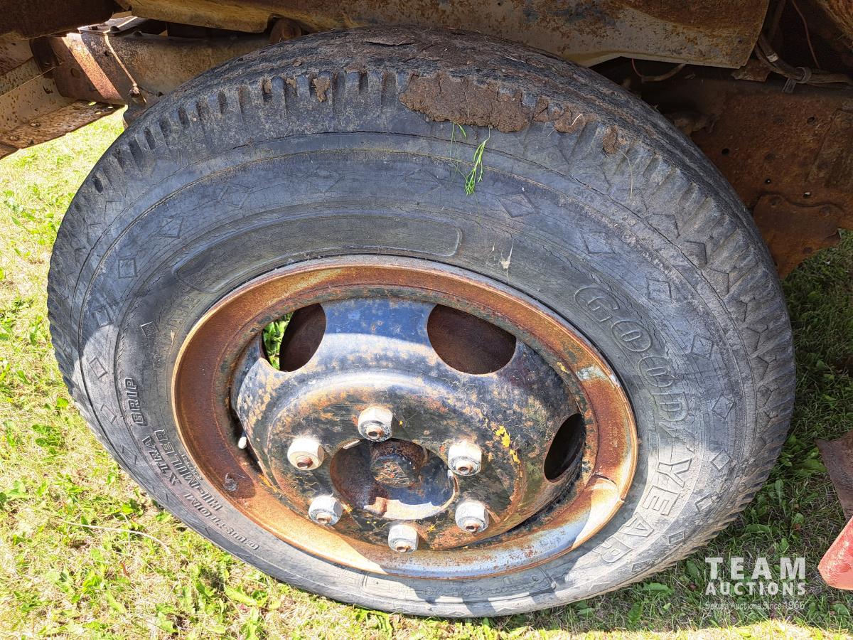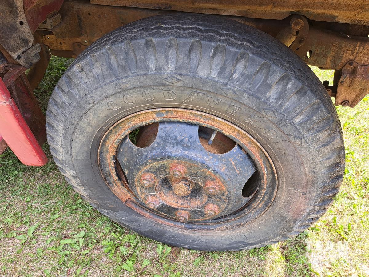 Ford V8 gas engine, 4 speed manual transmission, 14 ft box, hoist, wood box, spring suspension, 178 inch WB, 8.25-20 tires