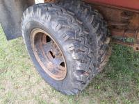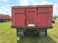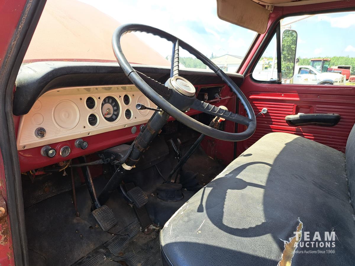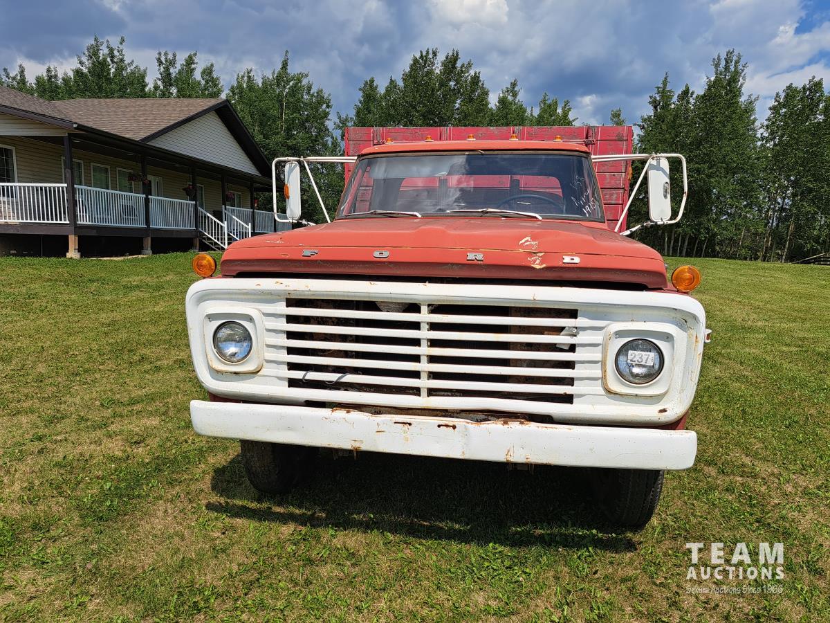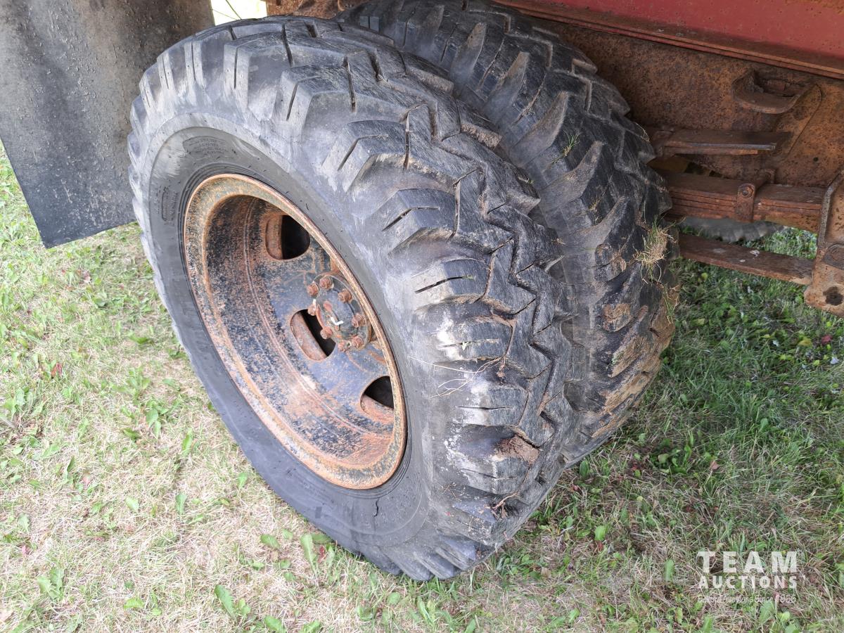 Ford V8 gas engine, 4 speed manual transmission, 14 ft box, hoist, wood box, spring suspension, 178 inch WB, 8.25-20 tires
