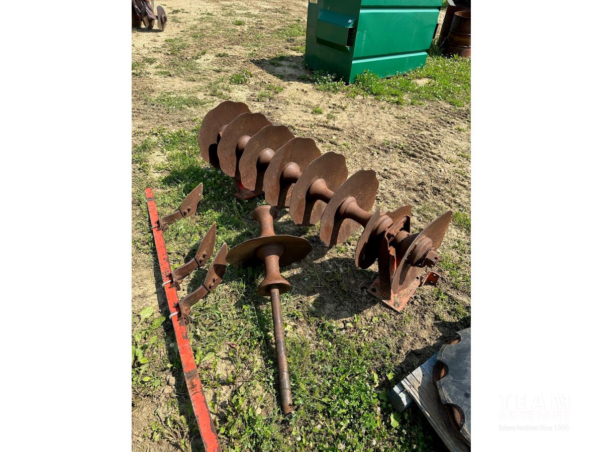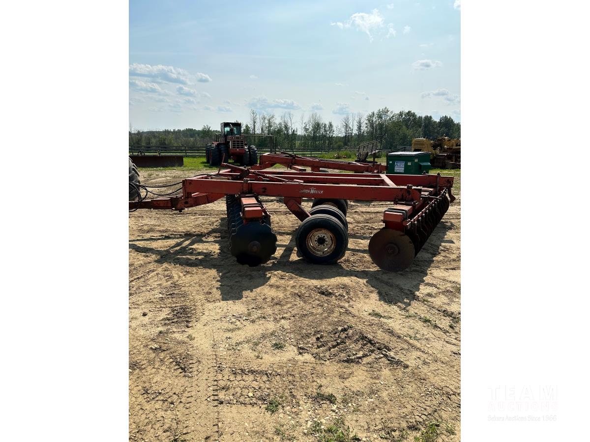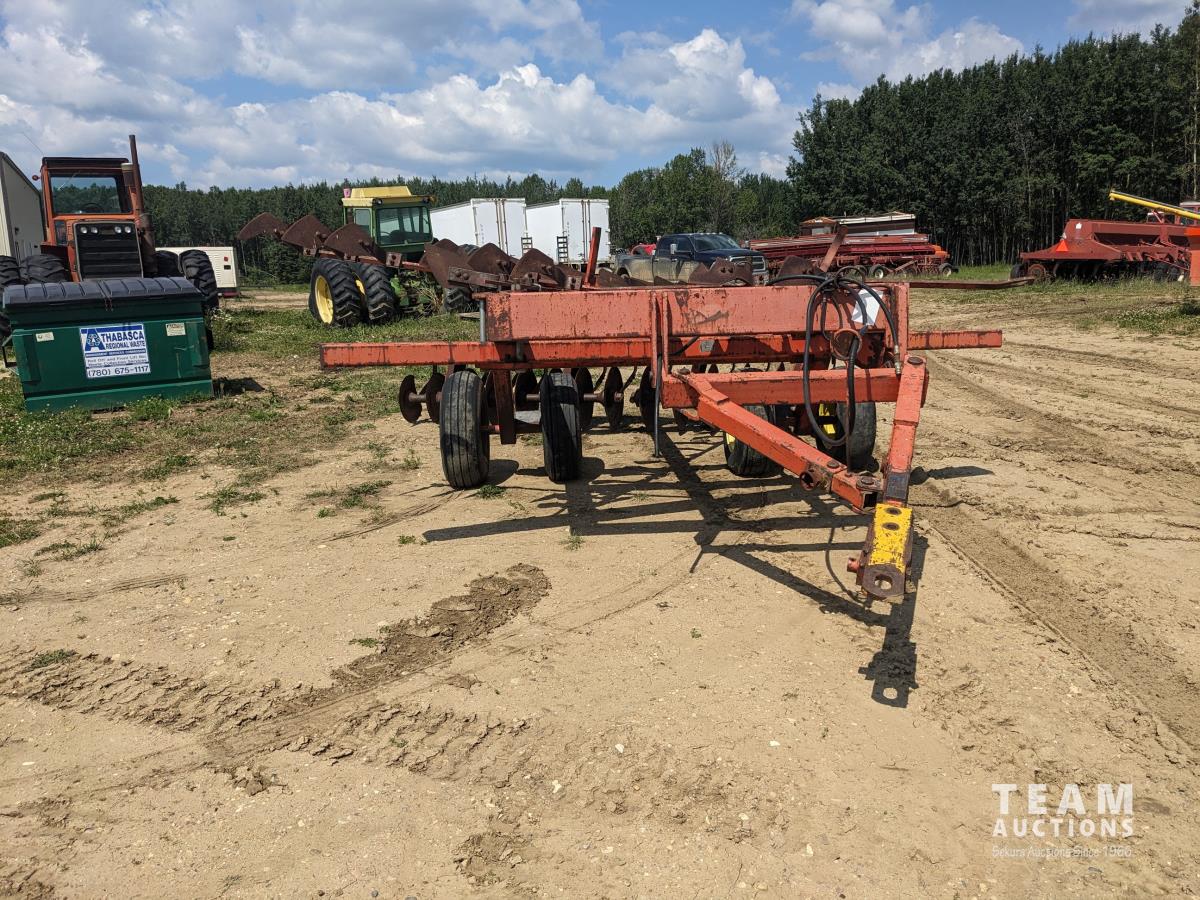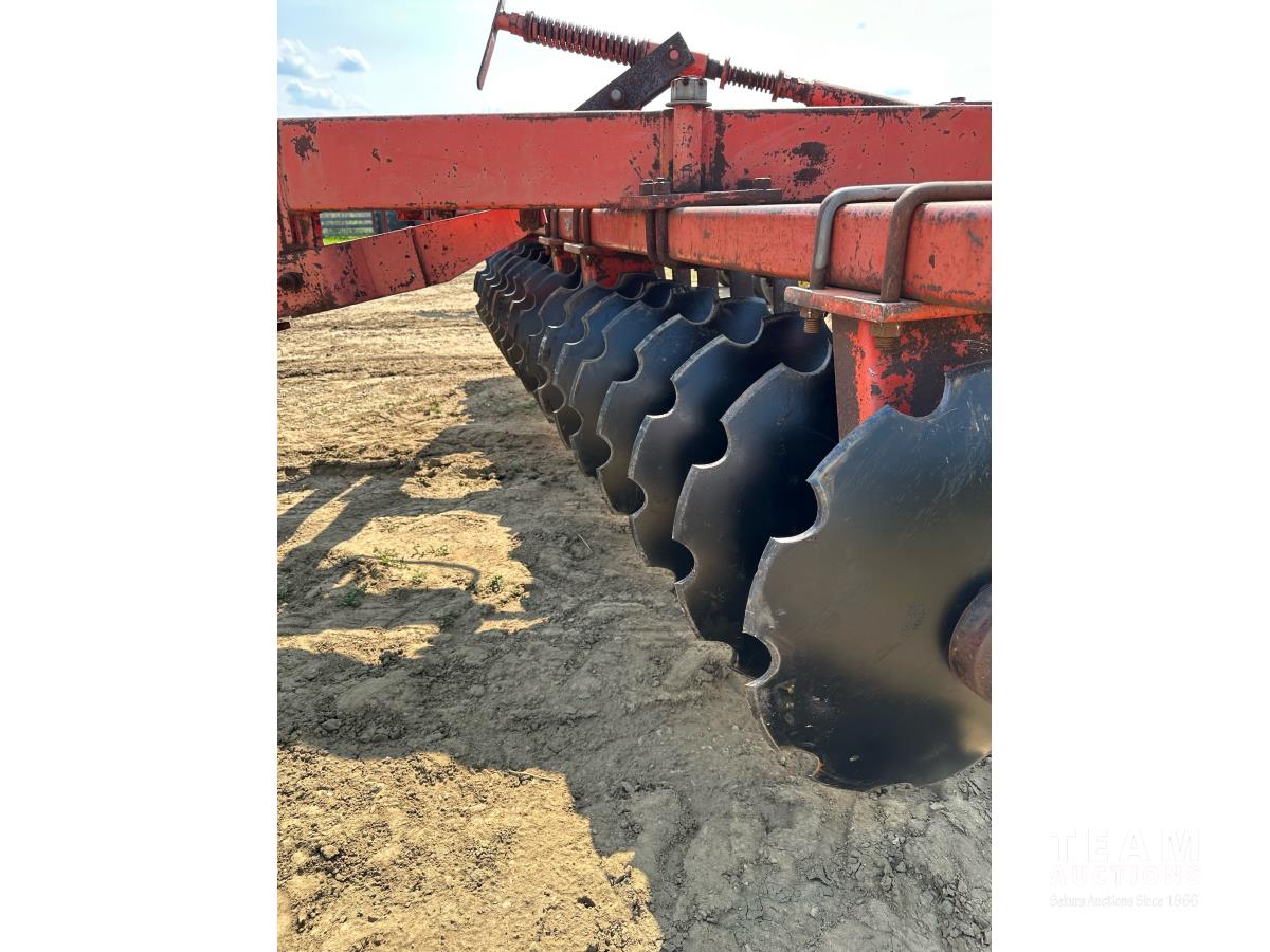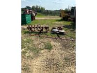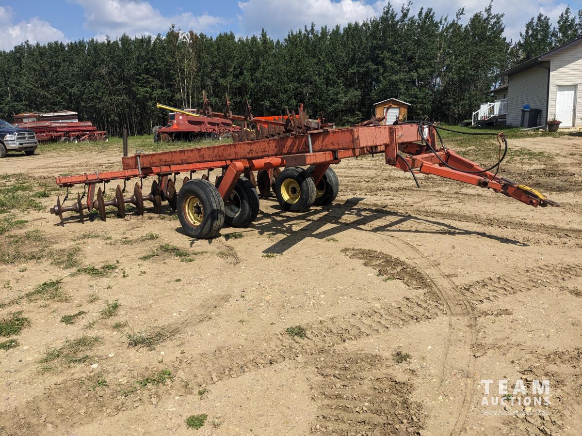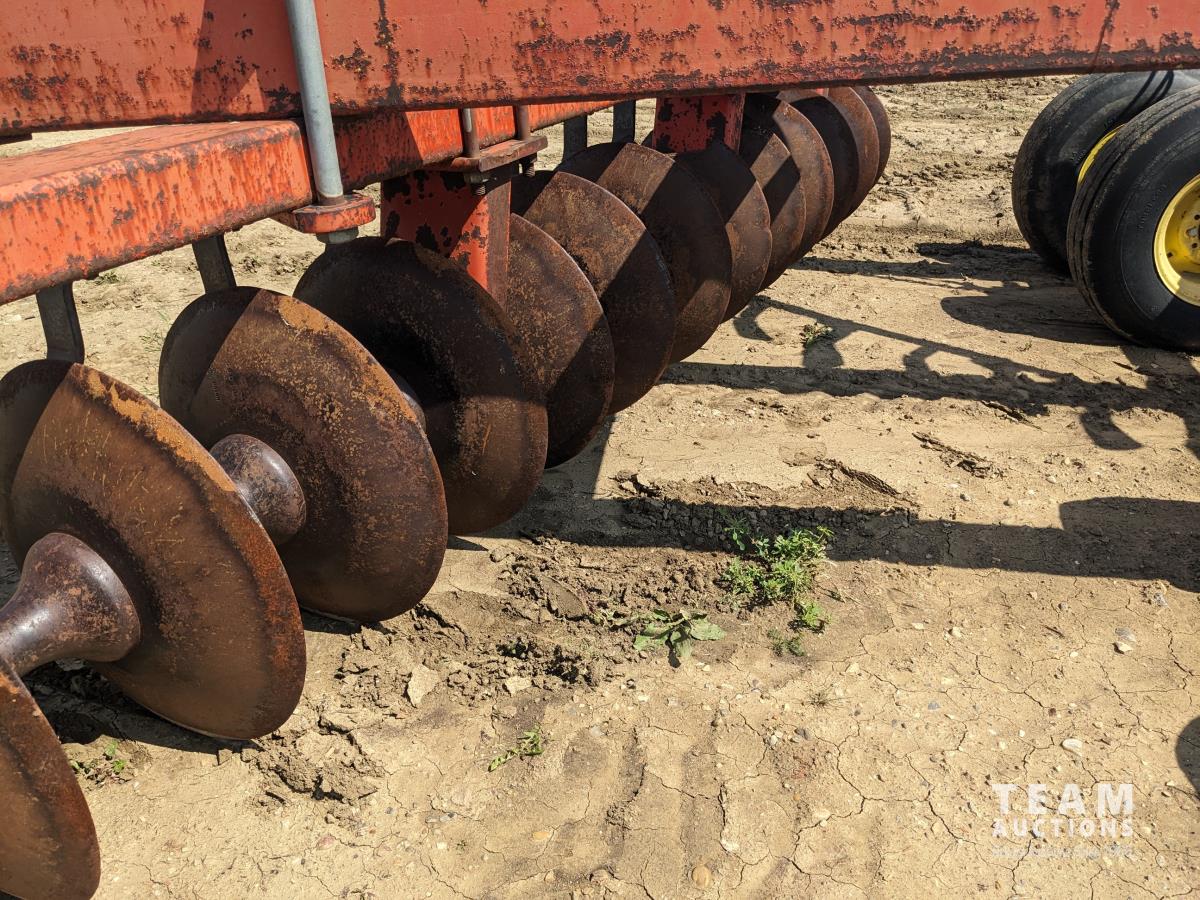 9 inch front spacing, 22 inch new front discs, 11 inch rear spacing, 23 inch discs, 11L-15 duals, plus (1) Hutch Master 12 ft offset disc for parts